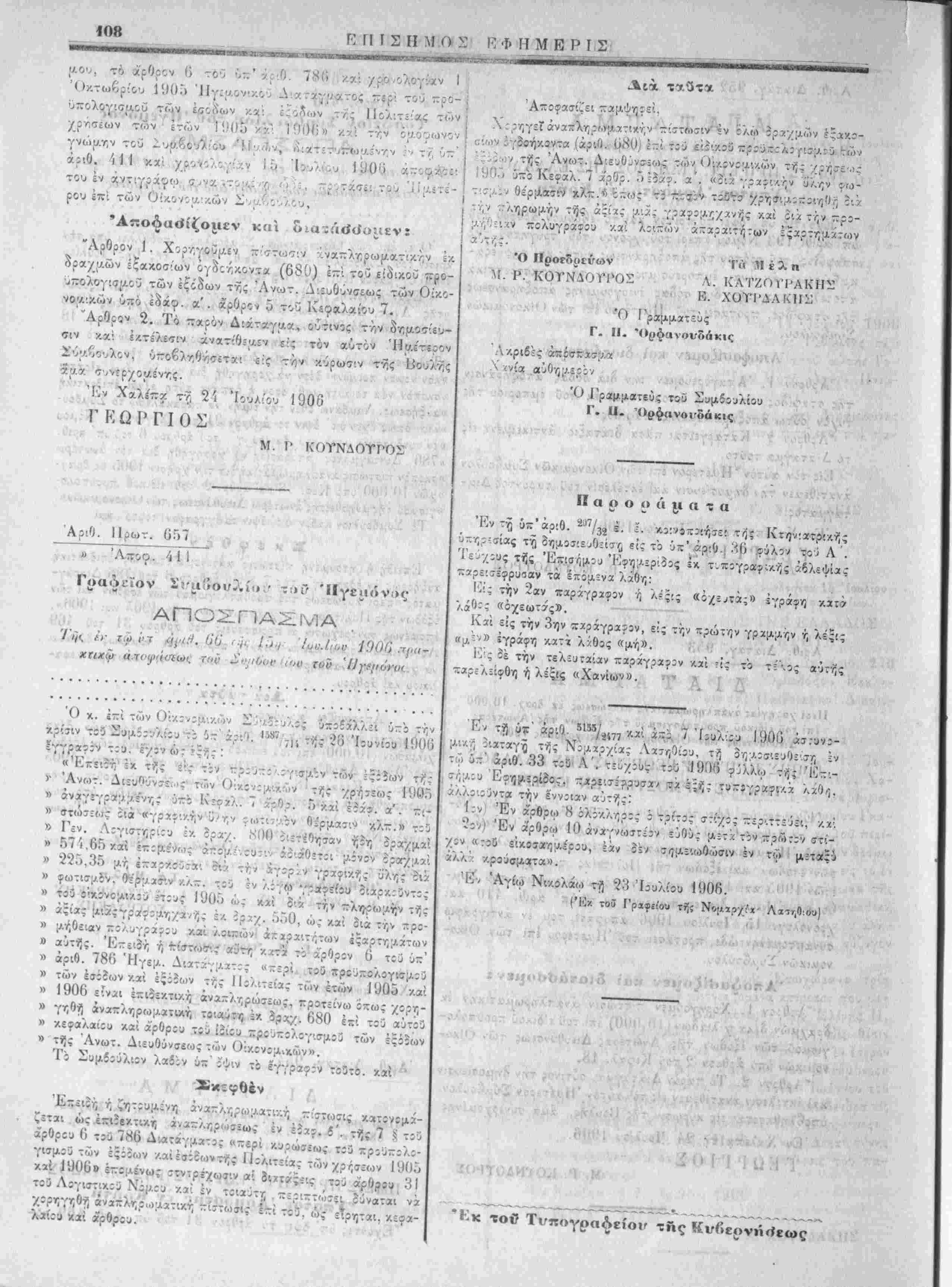 ί ί< Αριθ. τ. 057 λ 'Λπγοο. Ί Μ Γοαοεϊον Ι'ϊ'^ιίίοι/.'.ίί»/ χ*ΰ ΊΙγειιόνος ΑΠΟΣΠΑΣΜΑ, · ' Ί'ψ, ίΚ ΐϋί·7 Ηγΐ^. 1)0 , ./< /.>/ Ιυν.Ιιον ίΟΟΟ .-ΐρ