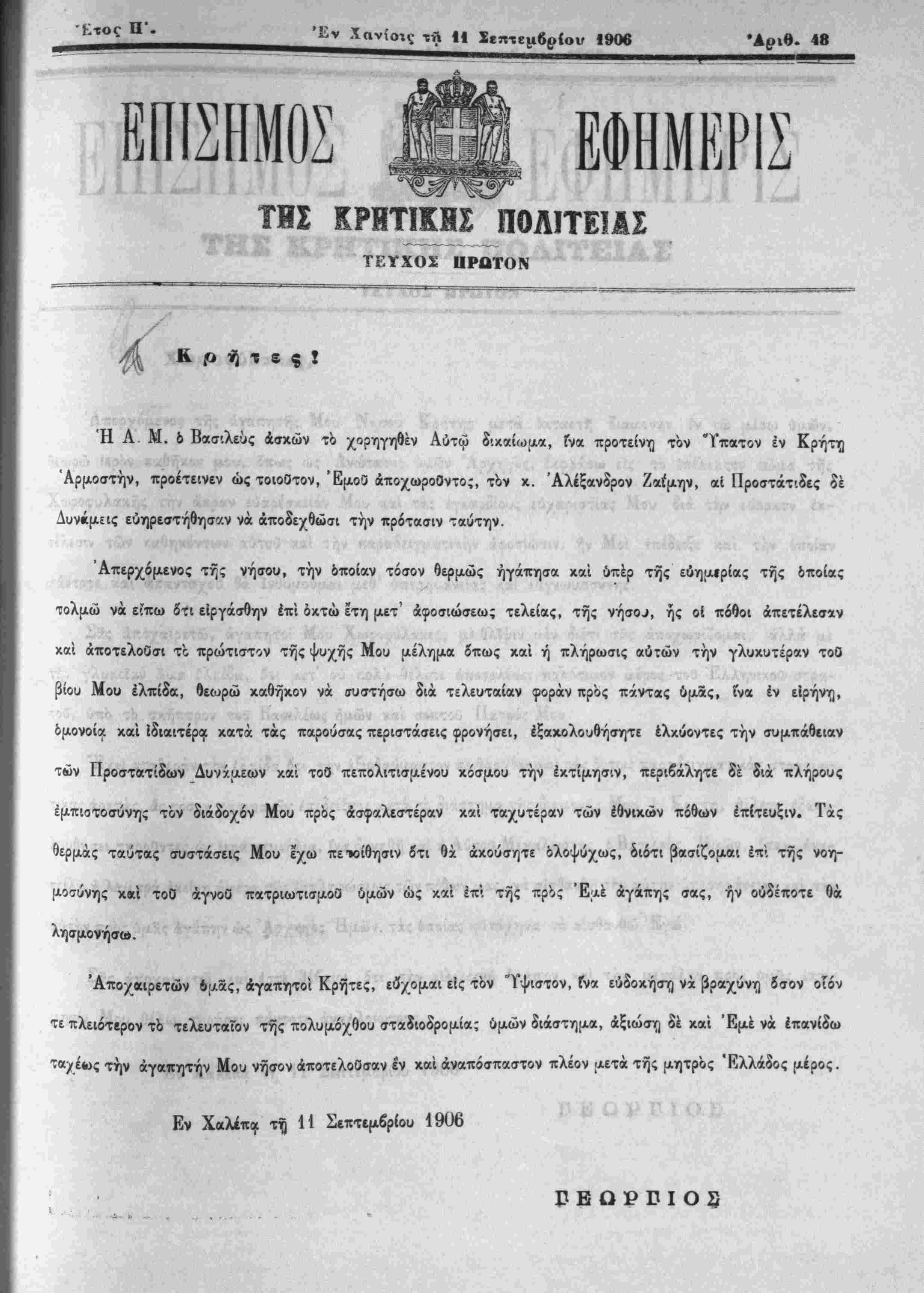 Έν Χανίοις νΛ 11 Σεπτέμβριον 1906