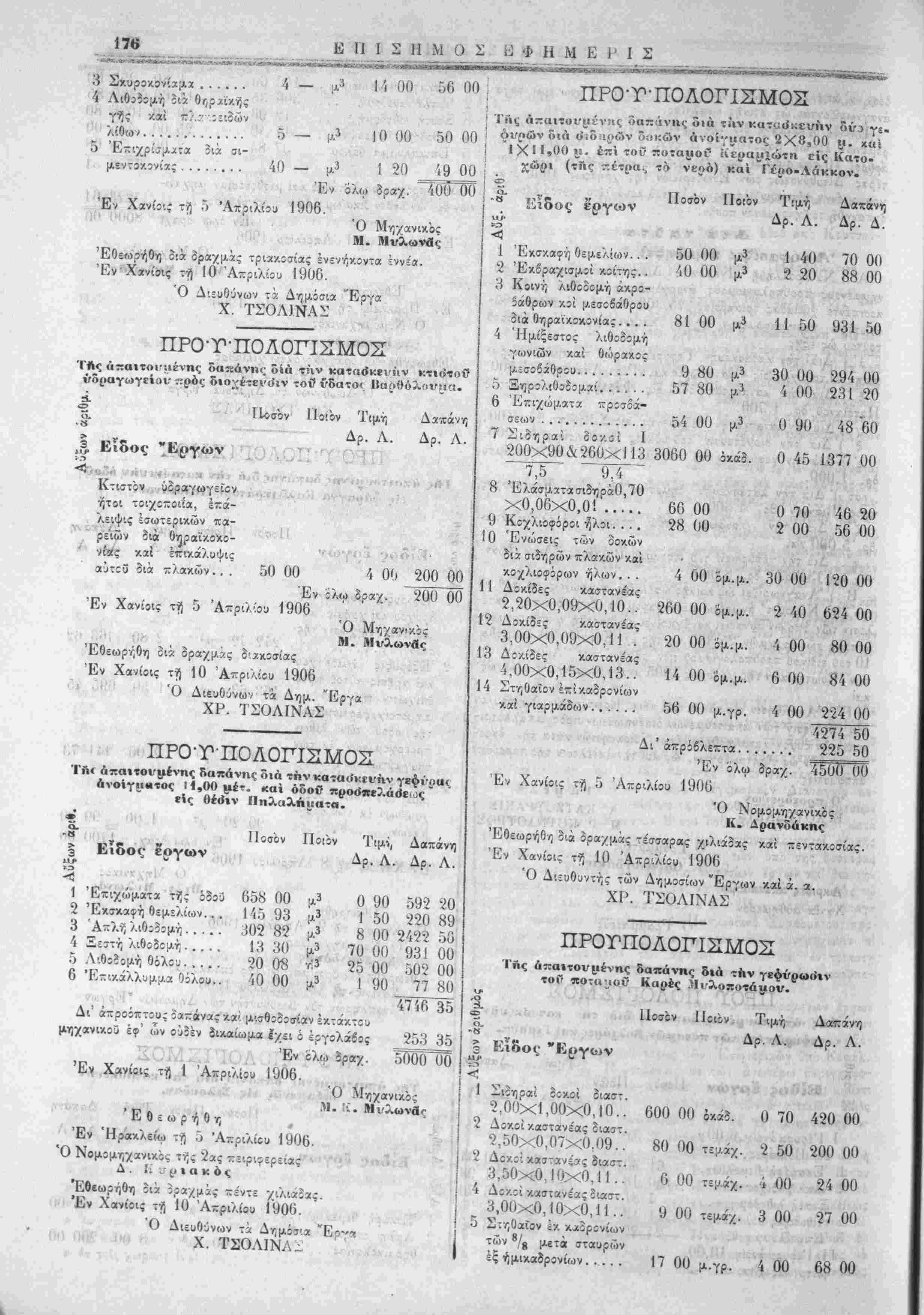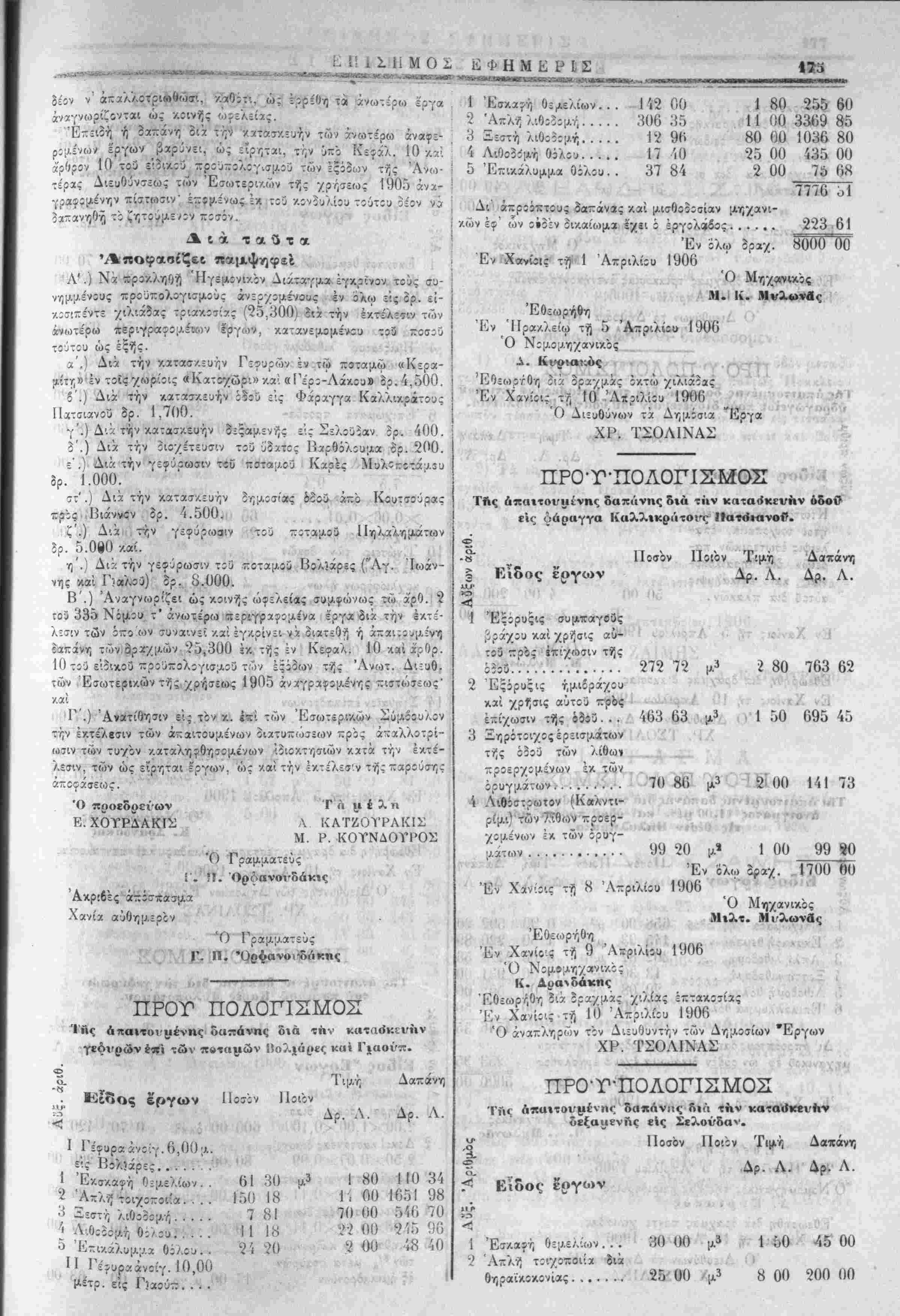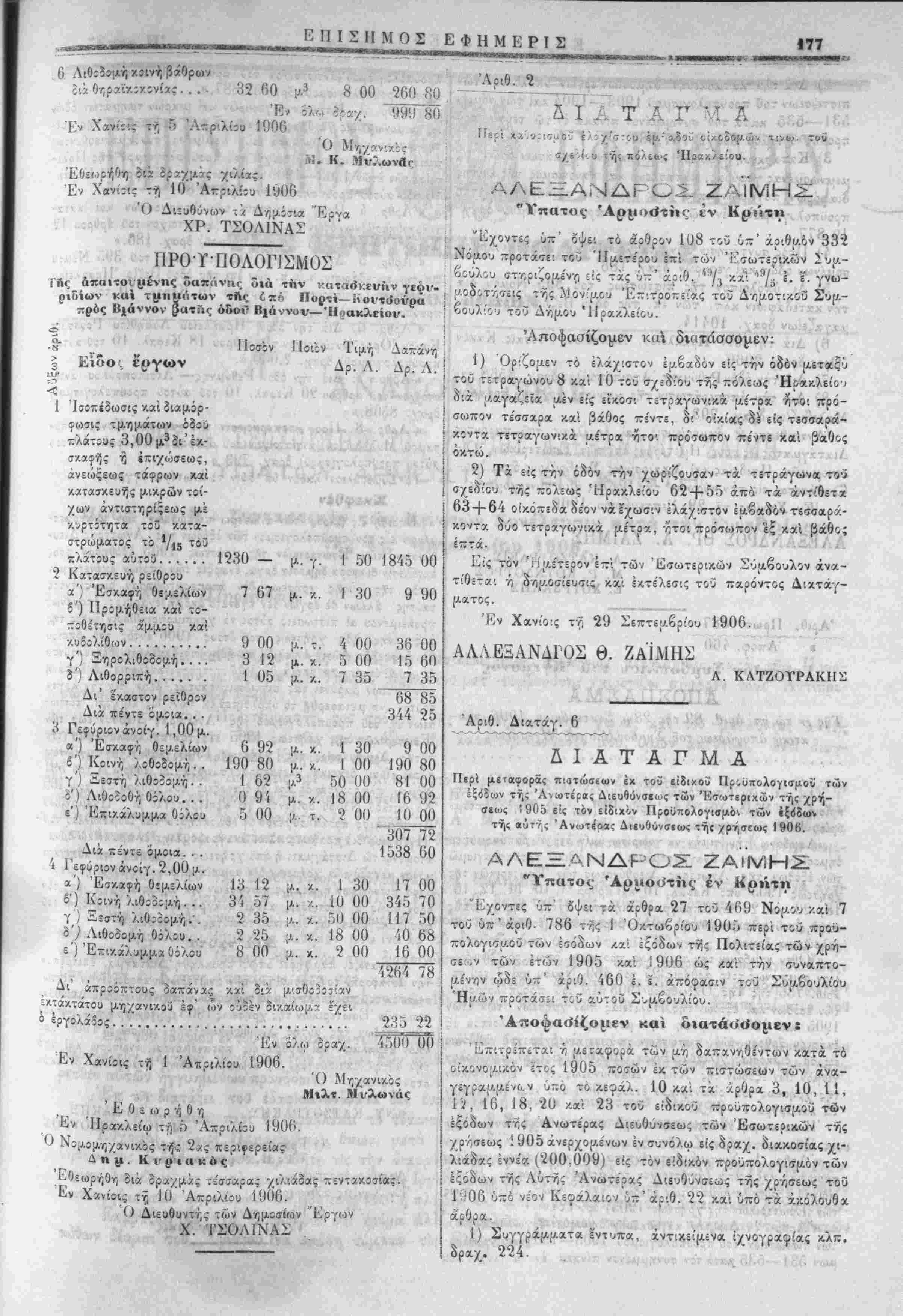 Εθίορήθη δι; ίρ?γ[>.7ς χιλίας. ι ί ι ■< -/· Εν Χανί;ι; τί) 10 Απριλίου 1906 ι5^- ν .„;, ,-!'_ ι ',ν *τμ*Ο Διευθύνων τα Δήμΐηα Έονα ":> ι *