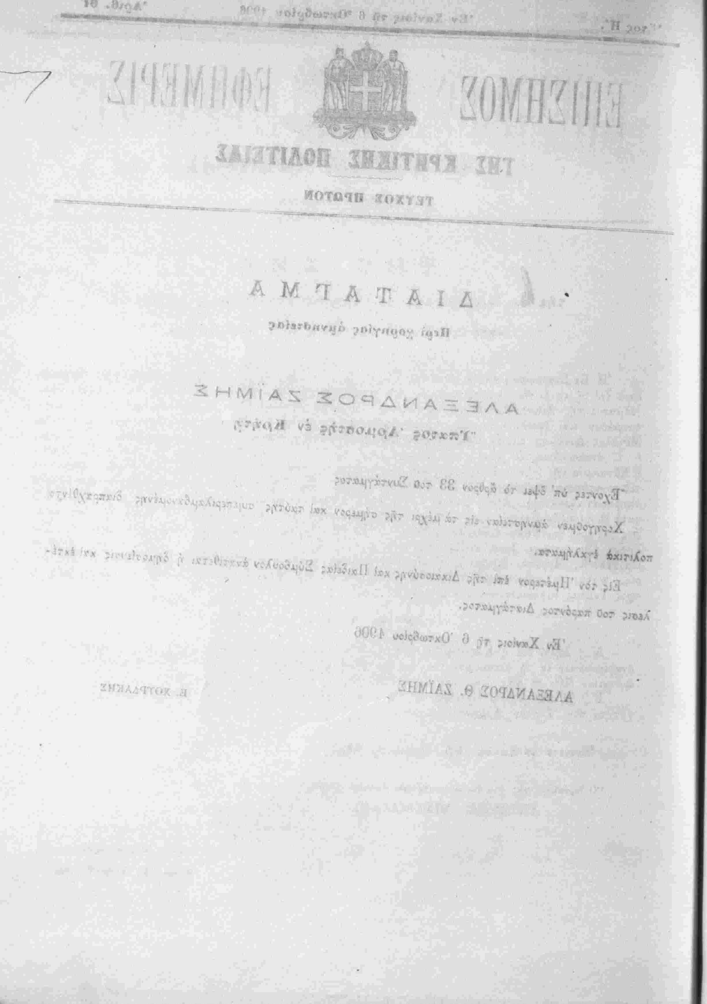 Έν Χανίοις ττί) 6 Όκτωβρίου 1906