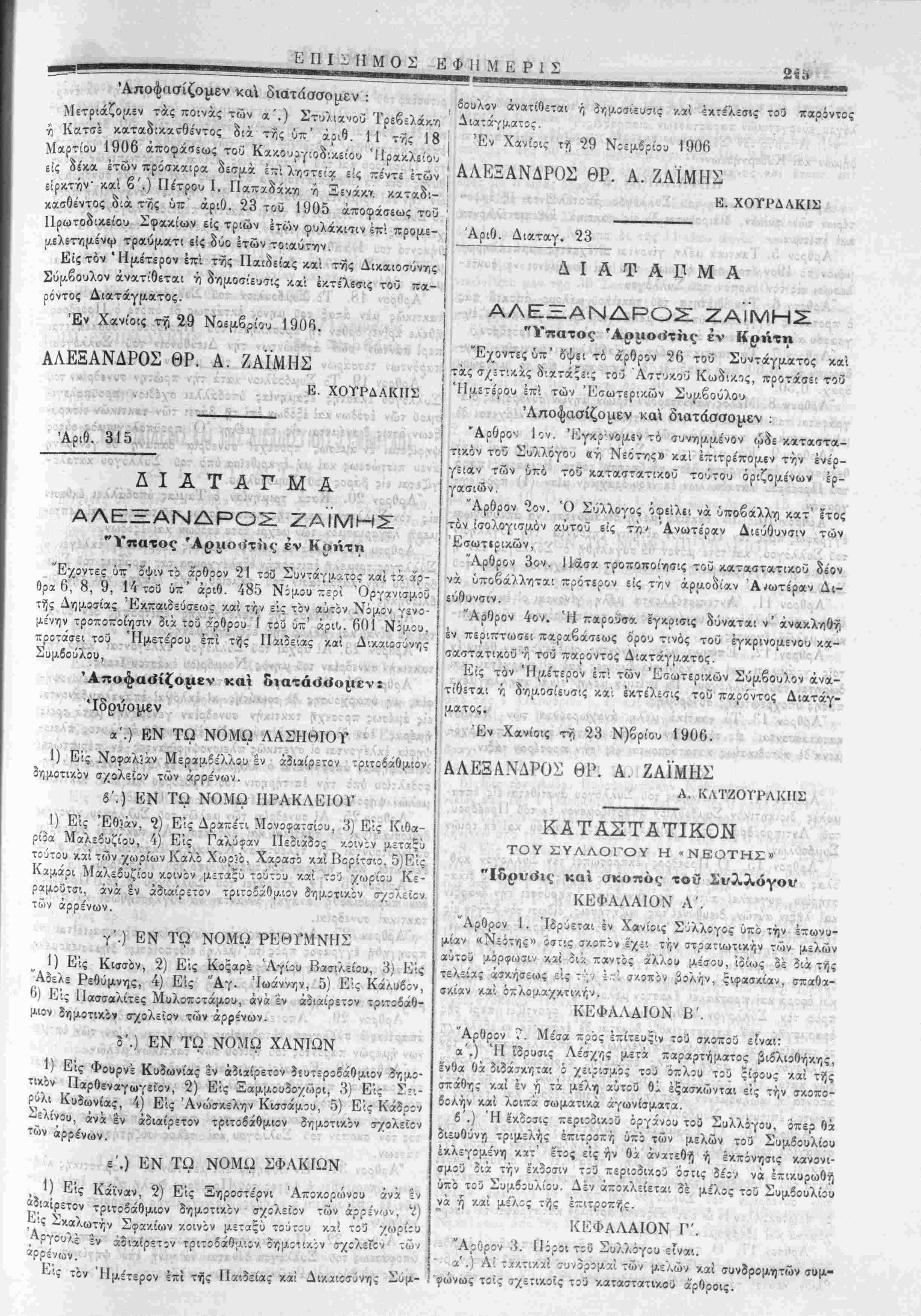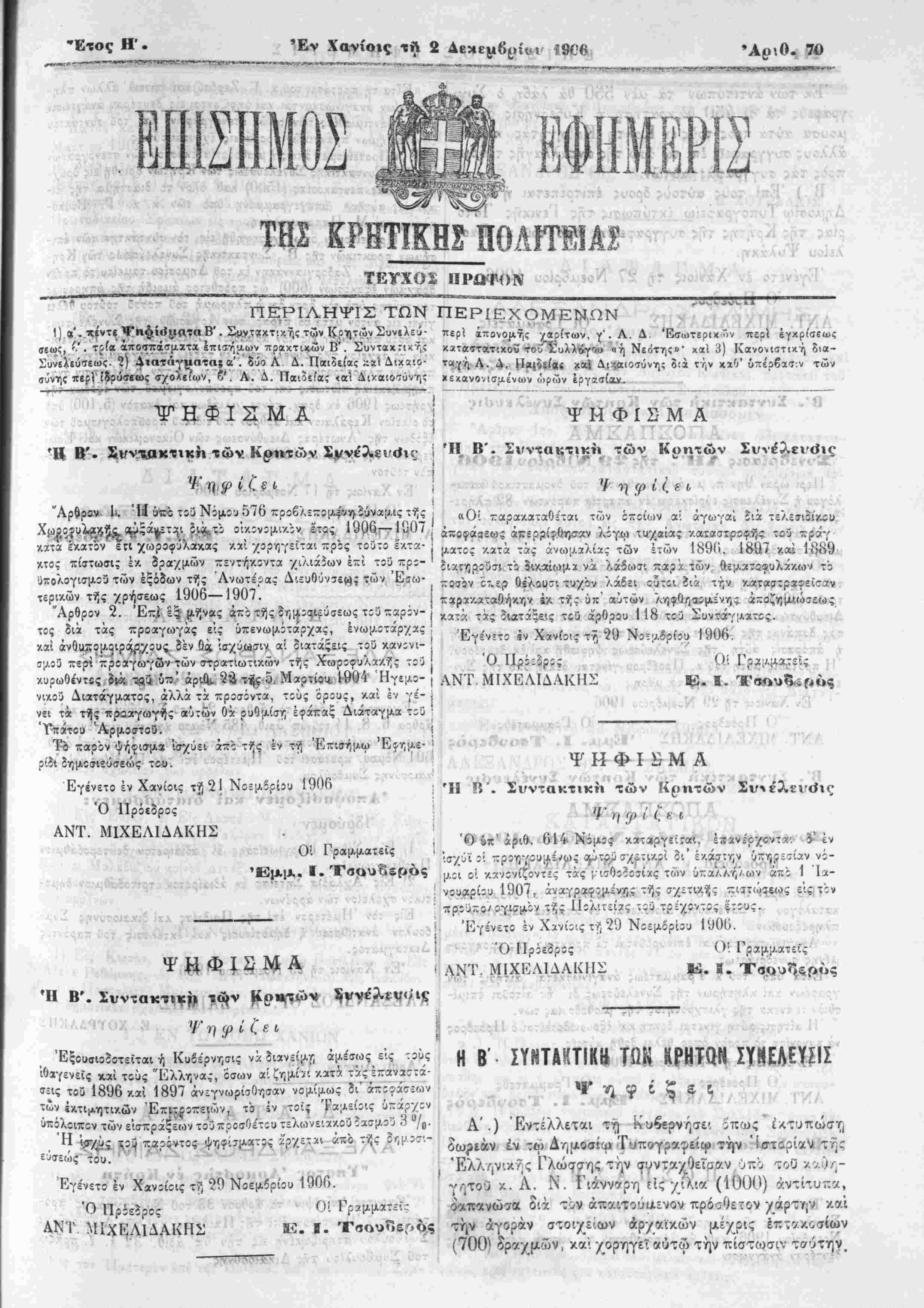 Εγένετο έν Χανίοις τή 27 Νοεμβριού 1906