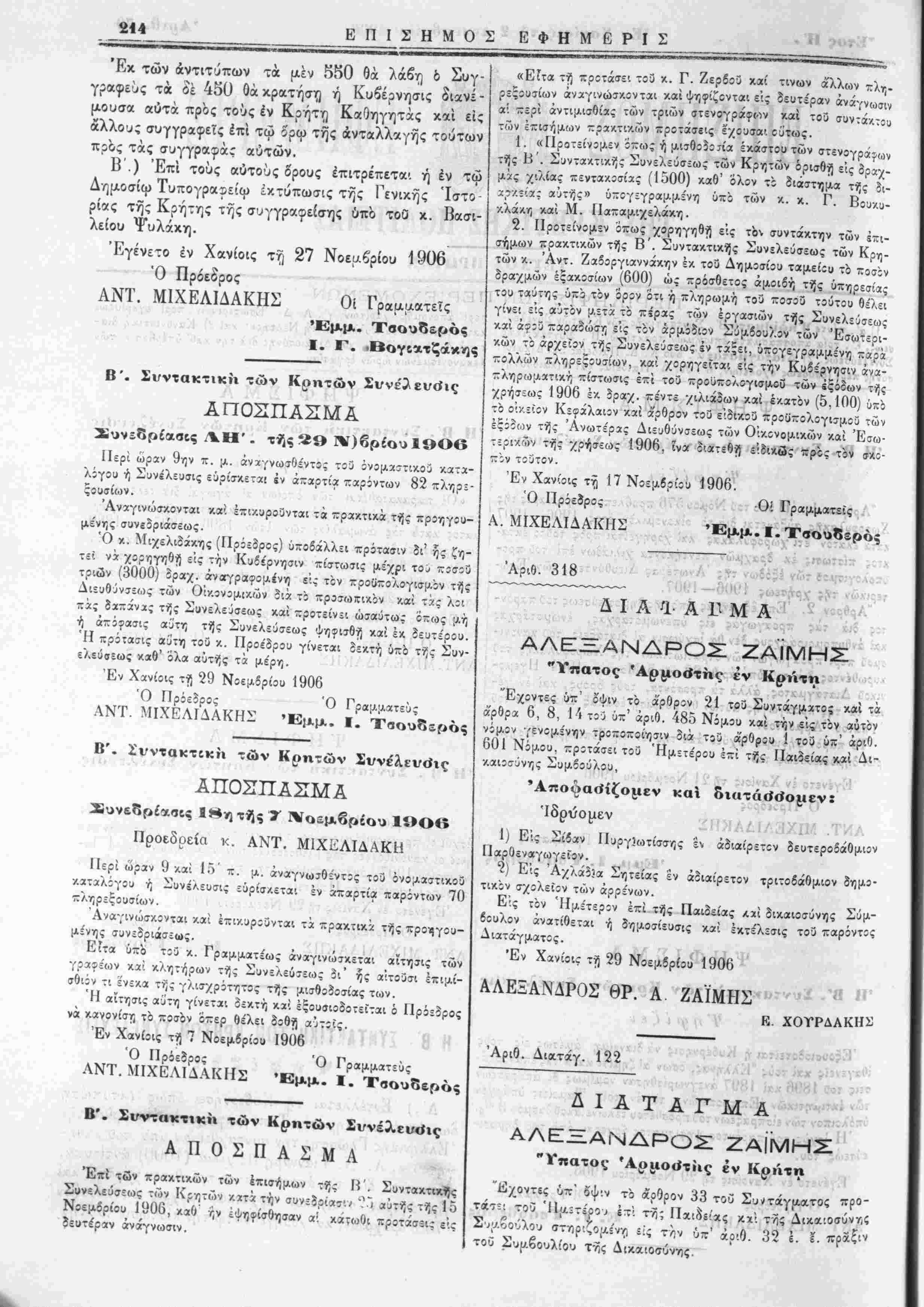 Έν Χανίοις τη 28 Νοεμβριού 1906.