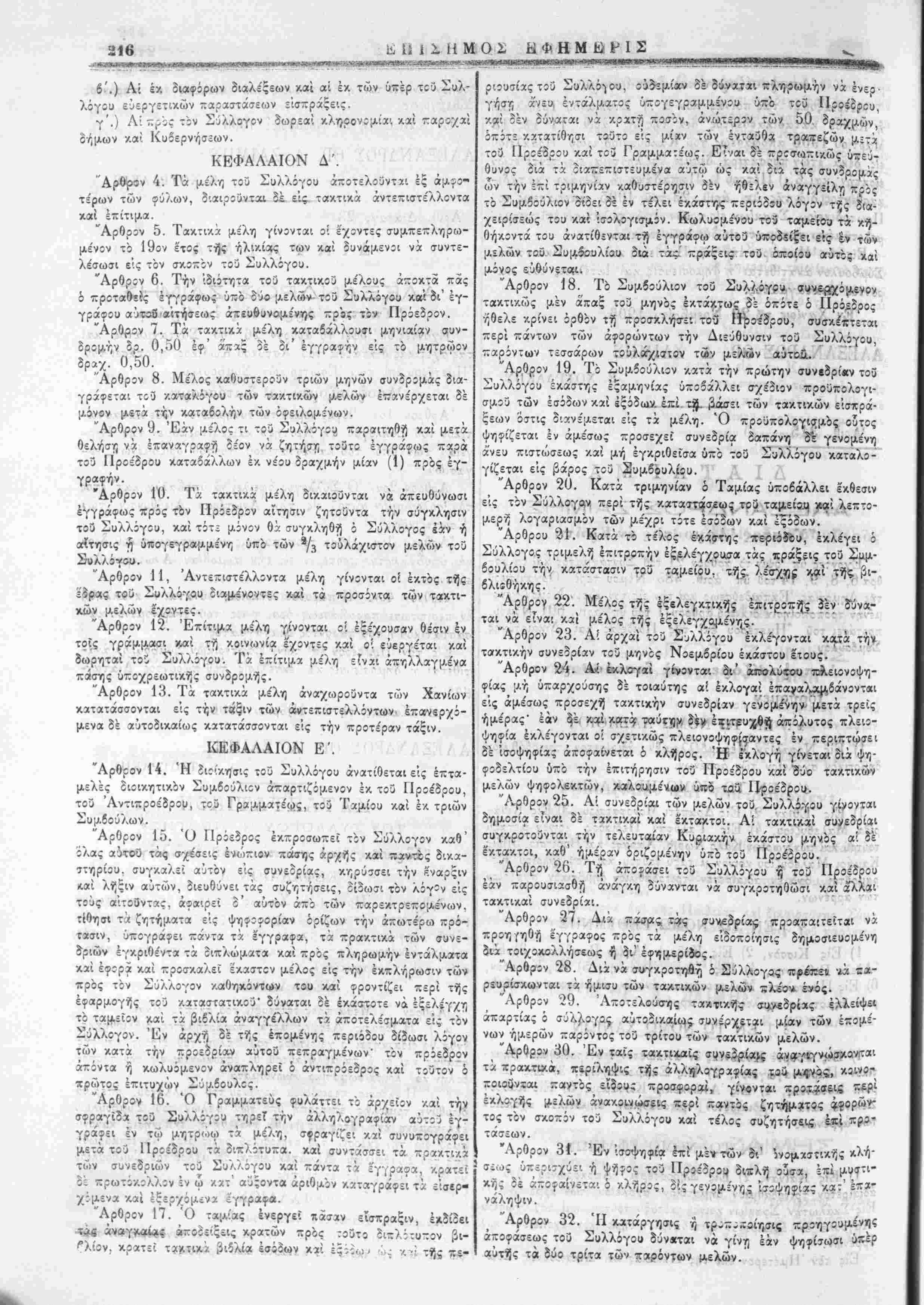 Άρθρον 26. Τί) αποφάσει τού Συλλόγου η τού Προέδρου