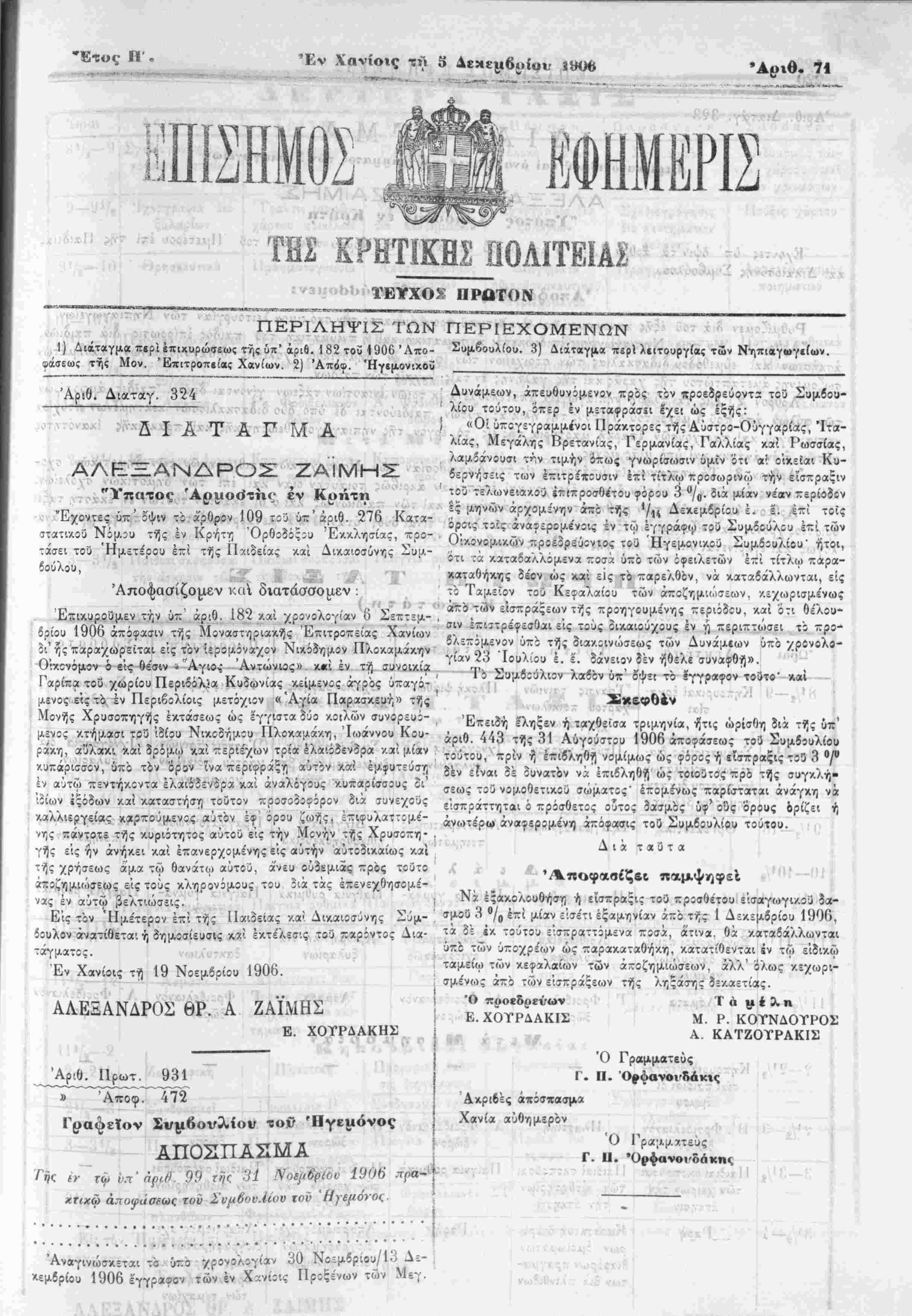 Έν Χανίοις τή 5 Δεκεμβριού 1906