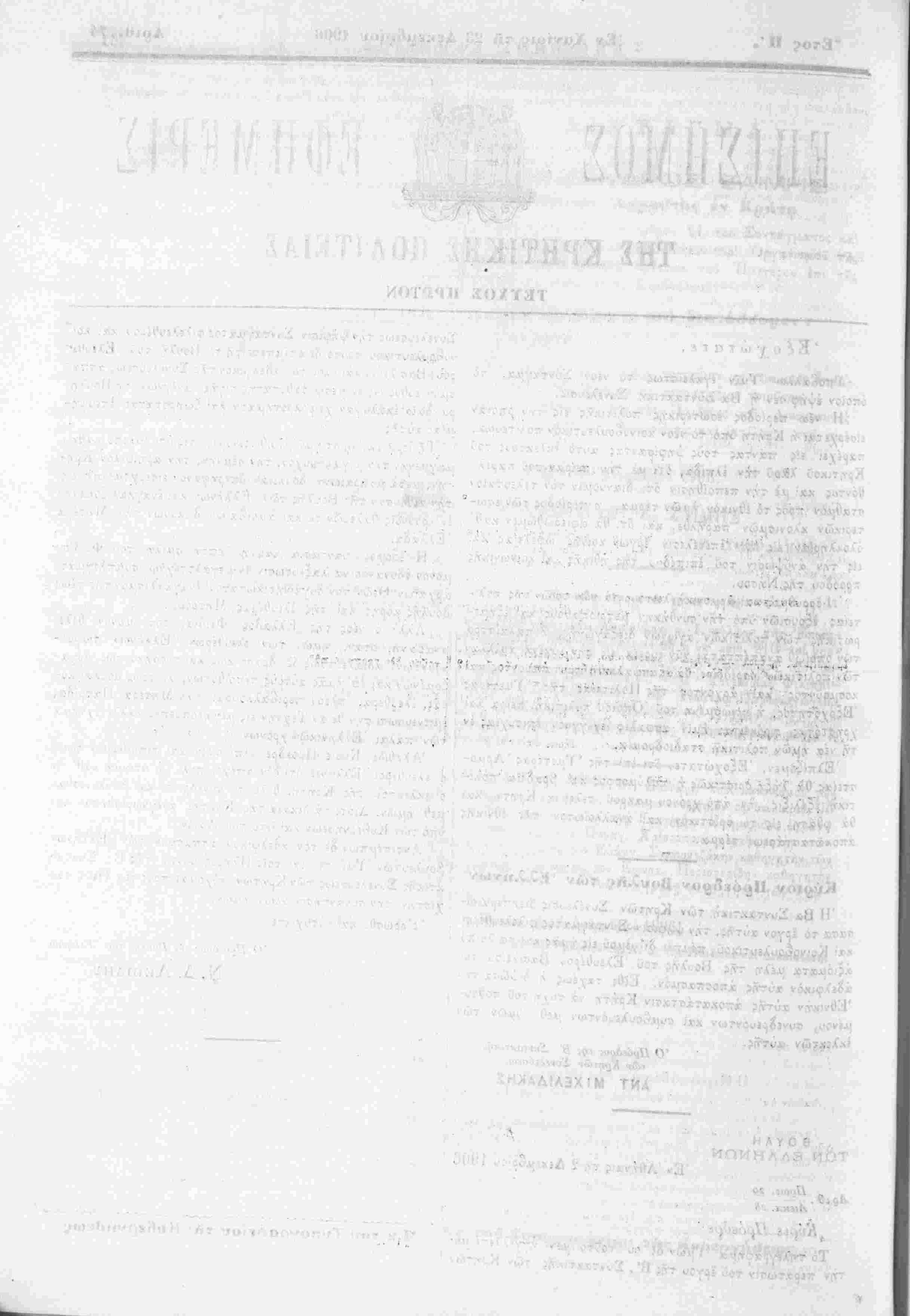 λίου 1906 φΰλλου τής Επισήμου Εφημερίδος τής Κρητικής
