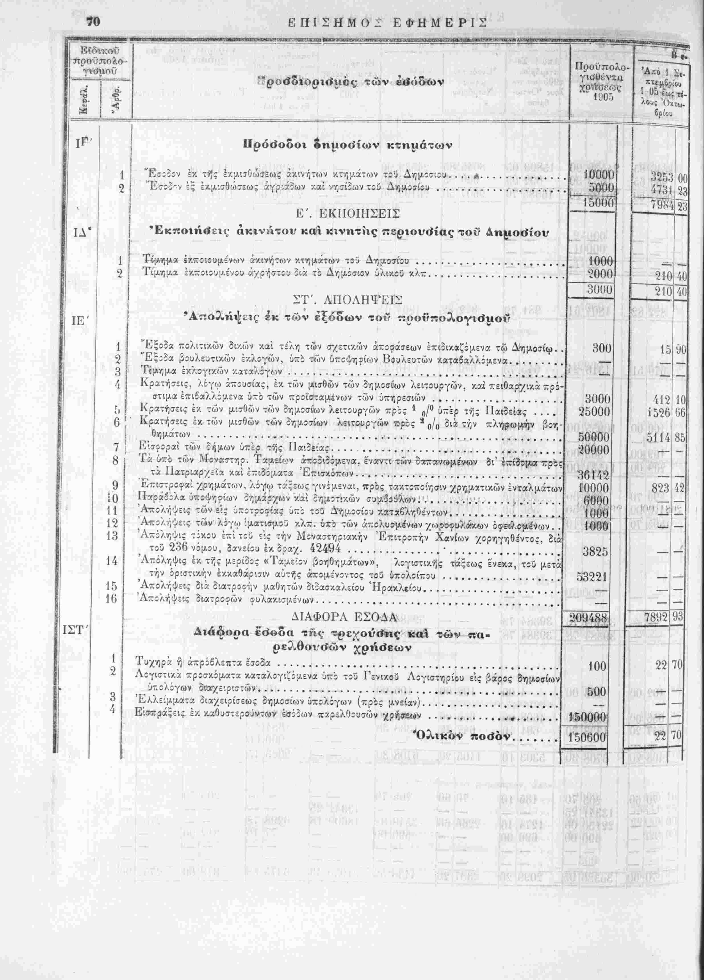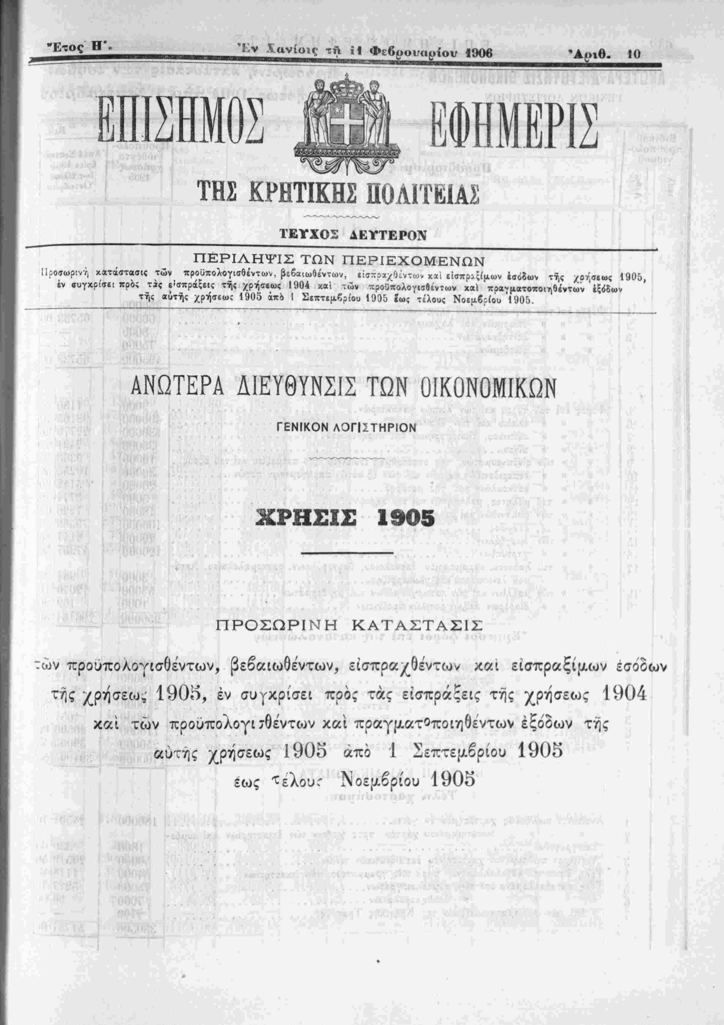 Ι ] αυτής χρήσεως 1905 άπο 1 ^επτεμβρίου 1905
