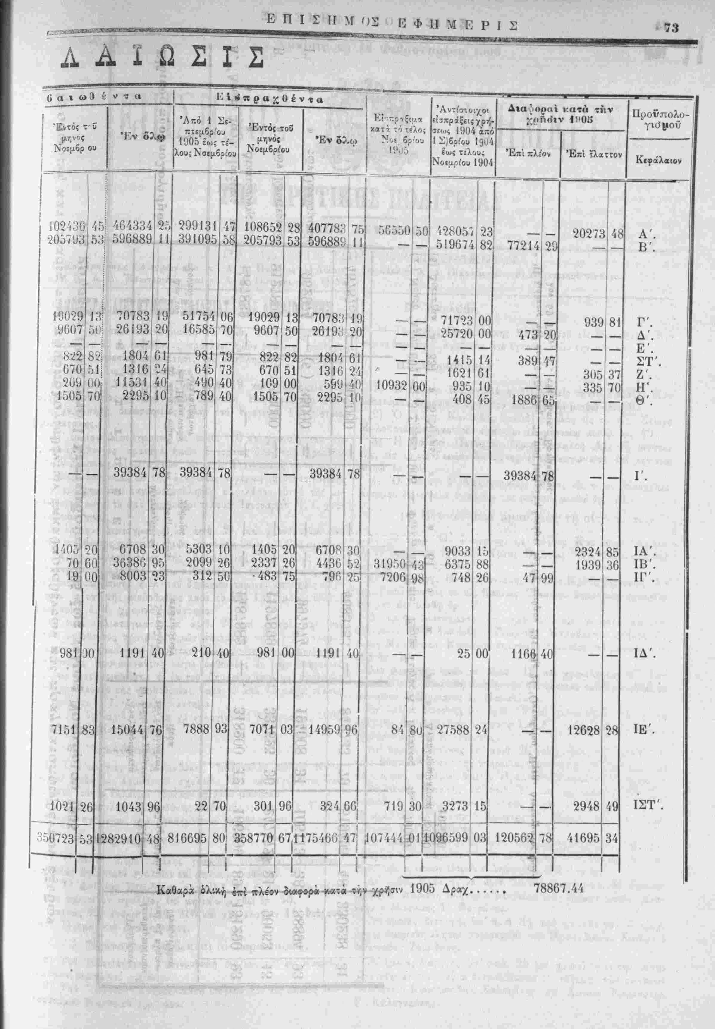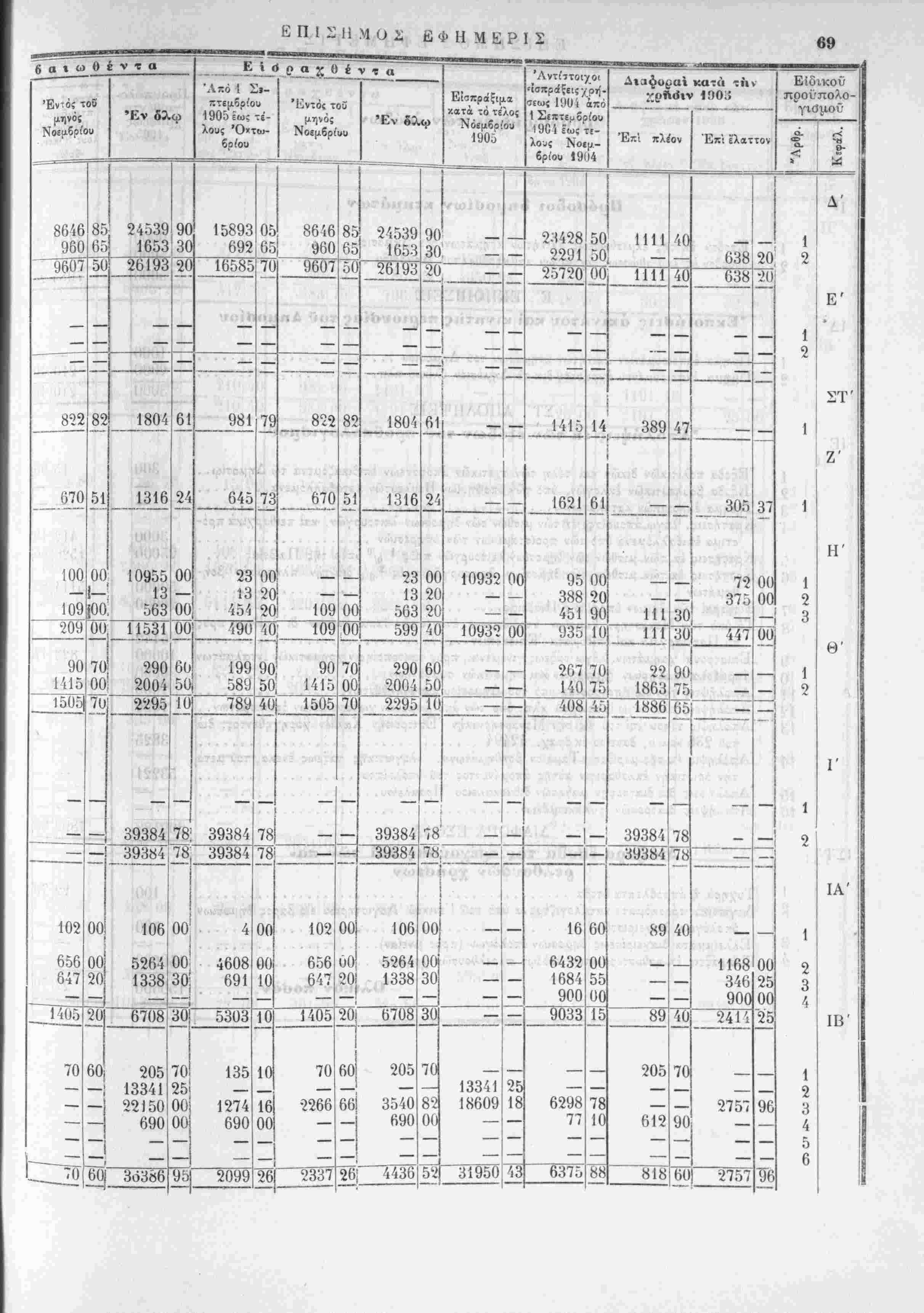 τής αυτής χρήσεως 1905 άπό Ι Σεπτεμζρίου 1905 ίω; τέλους Νοεμβρίου 1905.