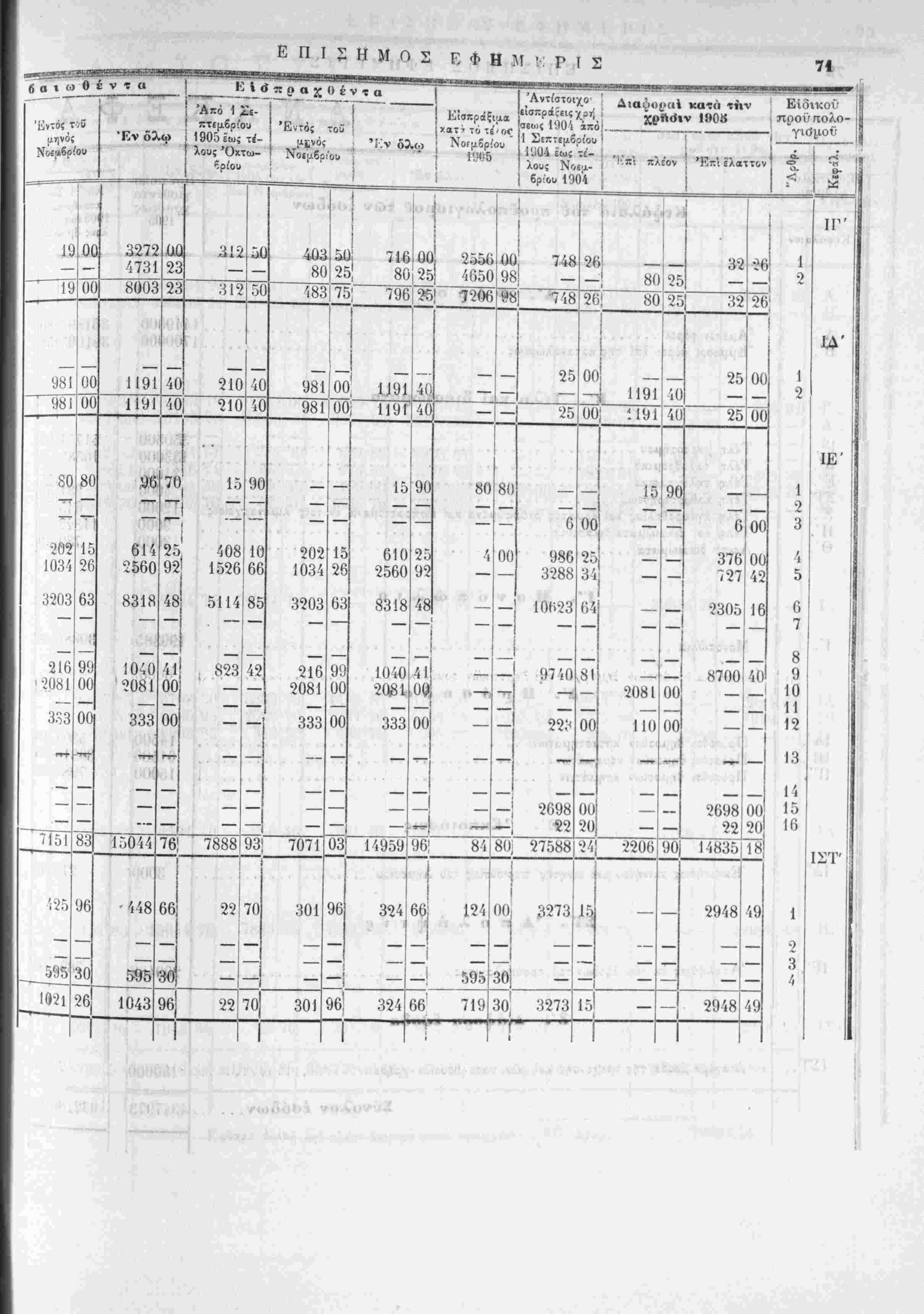 Είδικος ποοϋκολογι|ΐός ΠΙΣΤΩΣ Ε Ι Σ Άναγνωριοθίντα δι' έκο&'σεω; χρηματι- χών ένταλματων εξοδα 'Εξοόα πληρωθέντα 'Τπολοιπο Ιχχαθαρισθέν χαΐ μή πλη θέντων έξόδ Χορηγιιθεΐσαι Μίτενε/Οεΐσαι έχ ττ{ ποοηγουαεν/;ς ΧΡΊ'-ω; Ιννολον π*ό~τώ(ίεων ν των Διά τοΐ προΐ^πολογισυοΰ Δι' εΐ^ιχων νομ,ω' χαί Ήΐ/ΐμονικων Διαταγμοίτων >ω-