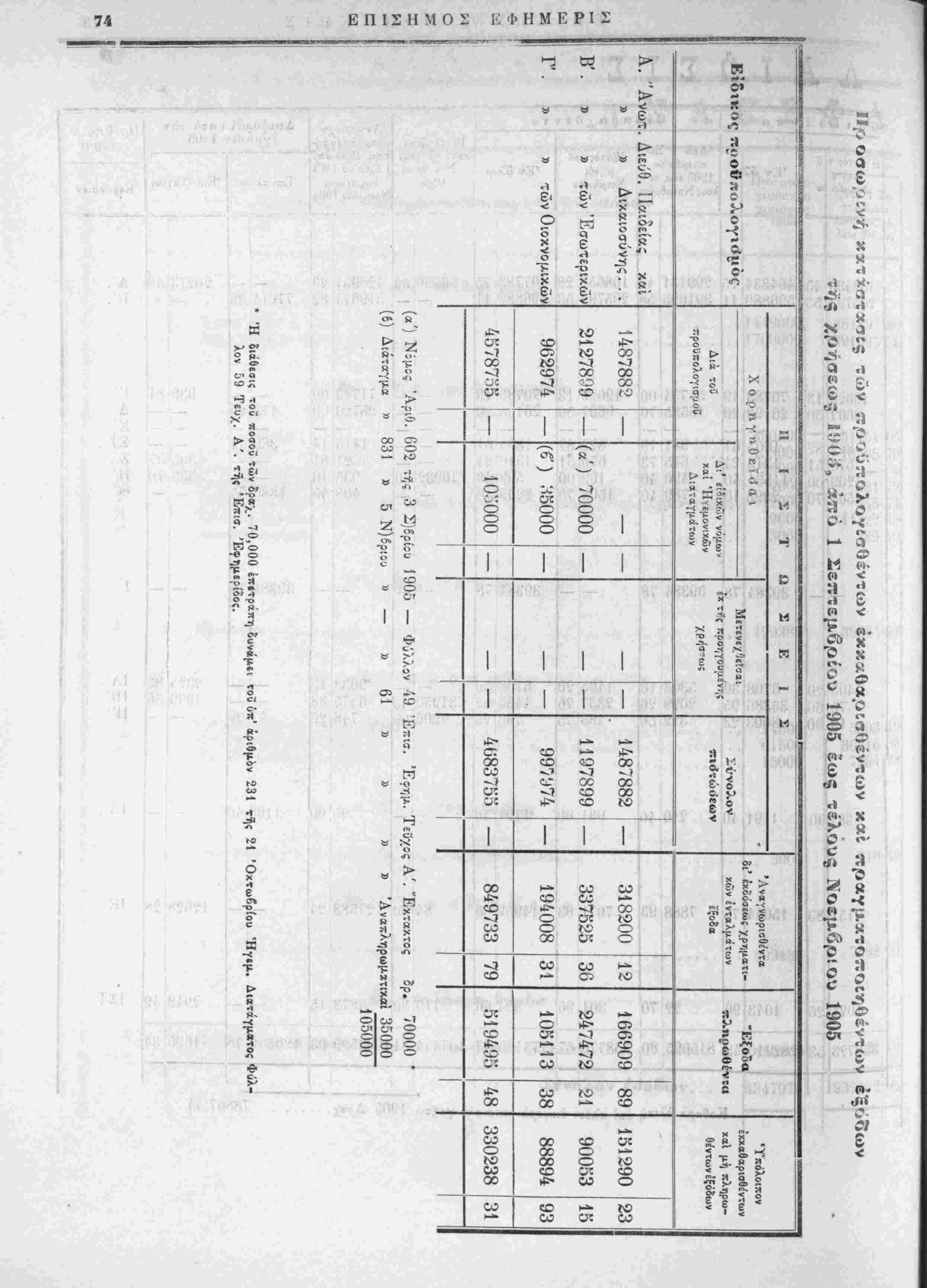 (α') Ν:μος Αριθ. 002 τής 3 Σ)βρίου 1905 — Φύλλον 49 Επ «τ. Έ9ημ. Τεθνος Α'. Έκτακτος δρ. 70000 *