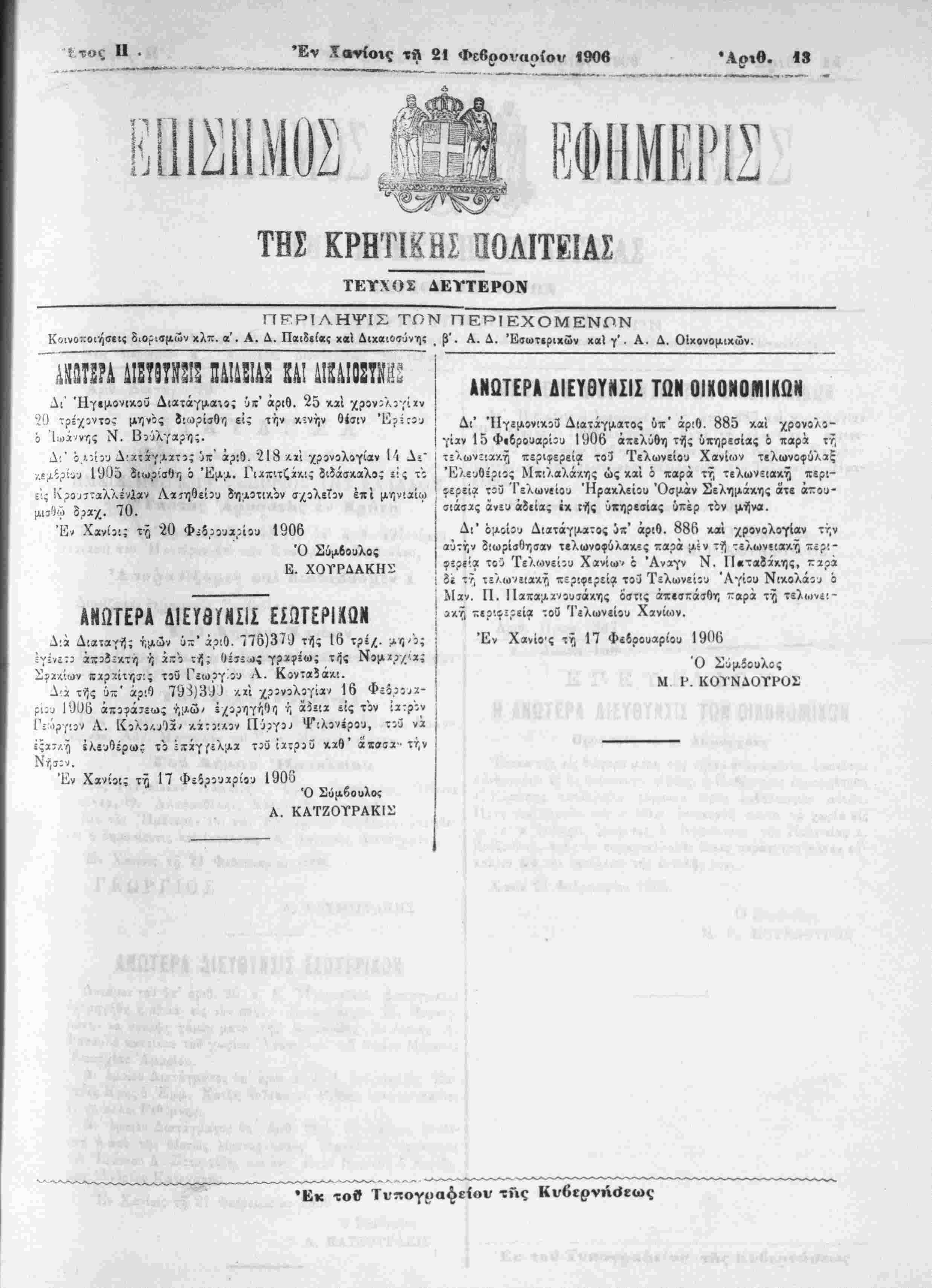 Έν Χανίοις τή 20 Φ;δ;οοα;ί5υ 1906