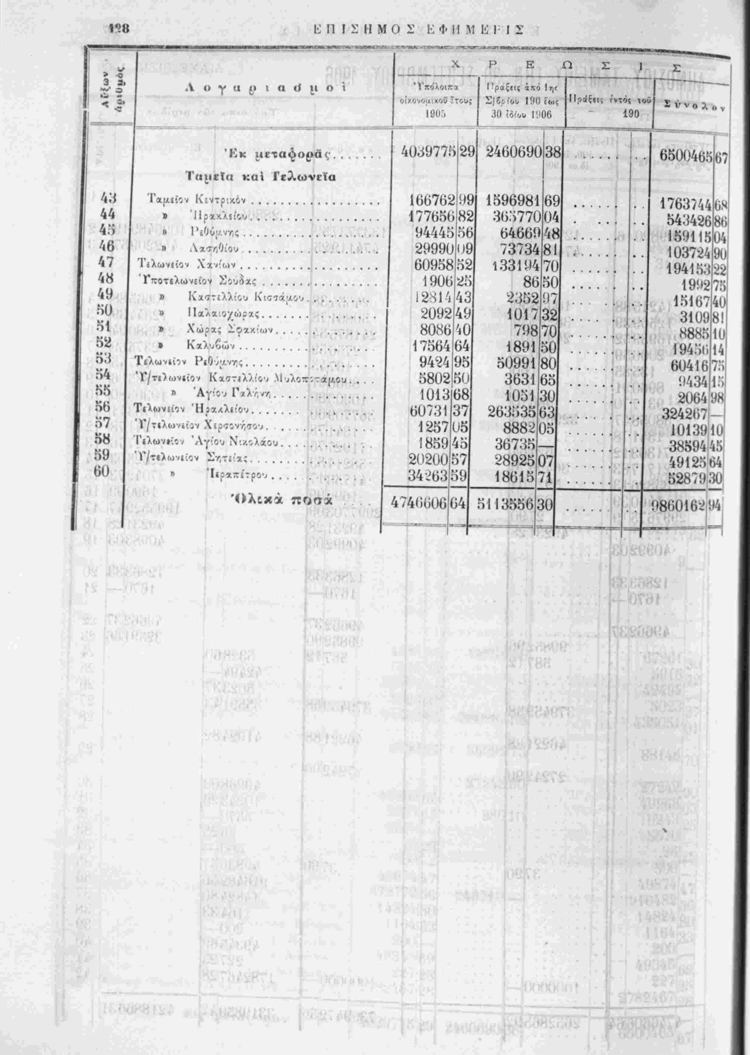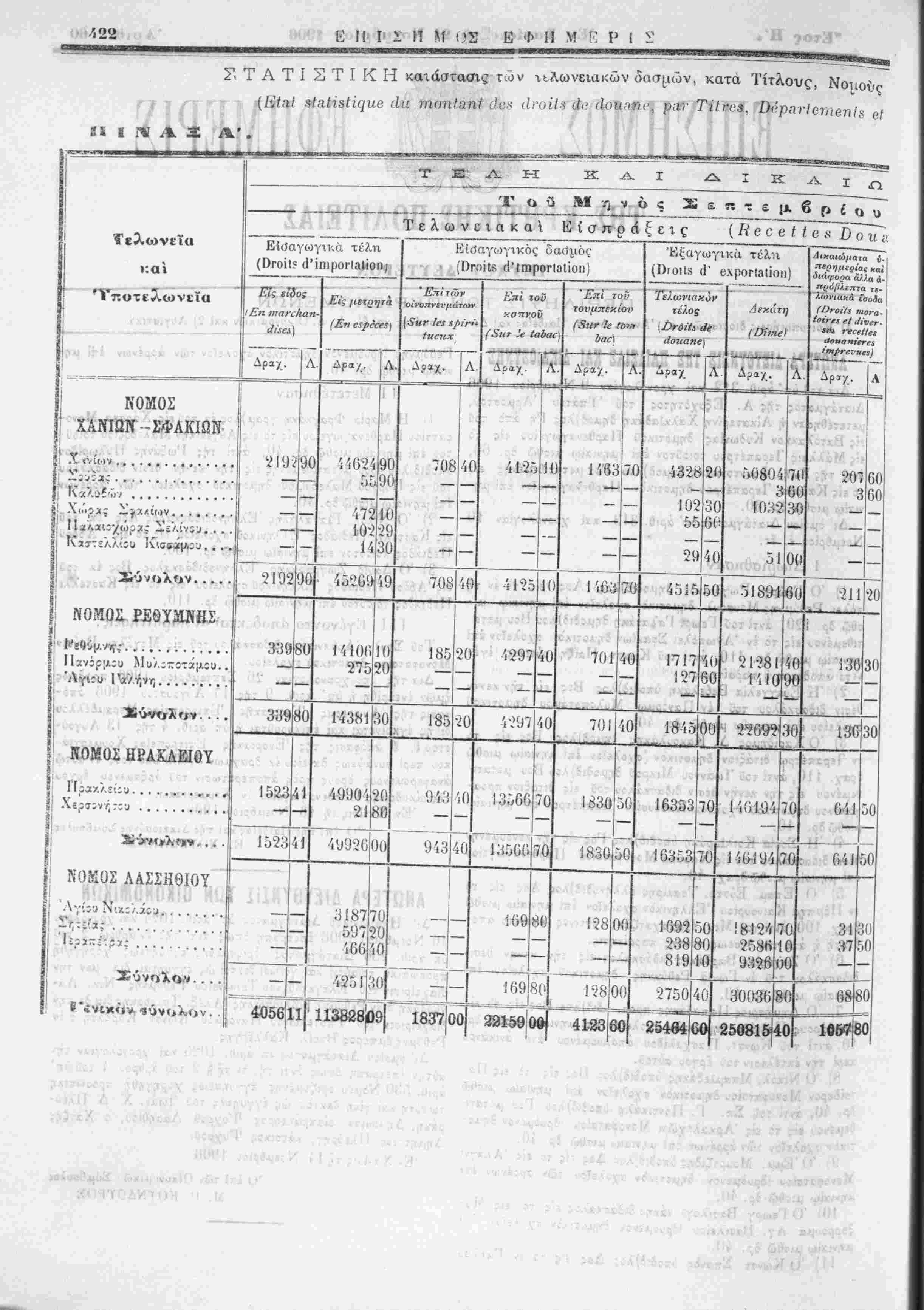 α<ώ/{ατα ν· βη/ιιρίας καί ύίάφορα ά)ία α- πρό/ΪΛΐπτα τε- λωνιανά ίσοΰα (Ωνοι/Ξ νιονα- ί ΝΟΜΟΣ ΧΑΝΙΩΝ-ΣΦΑΚΙΩΝ ι Λ <νί(,ιν.............. Ί5Ο2- Ο ι» 708 δ .(ιΐοα^ __,5,α/ΐΓ.>ν. ......