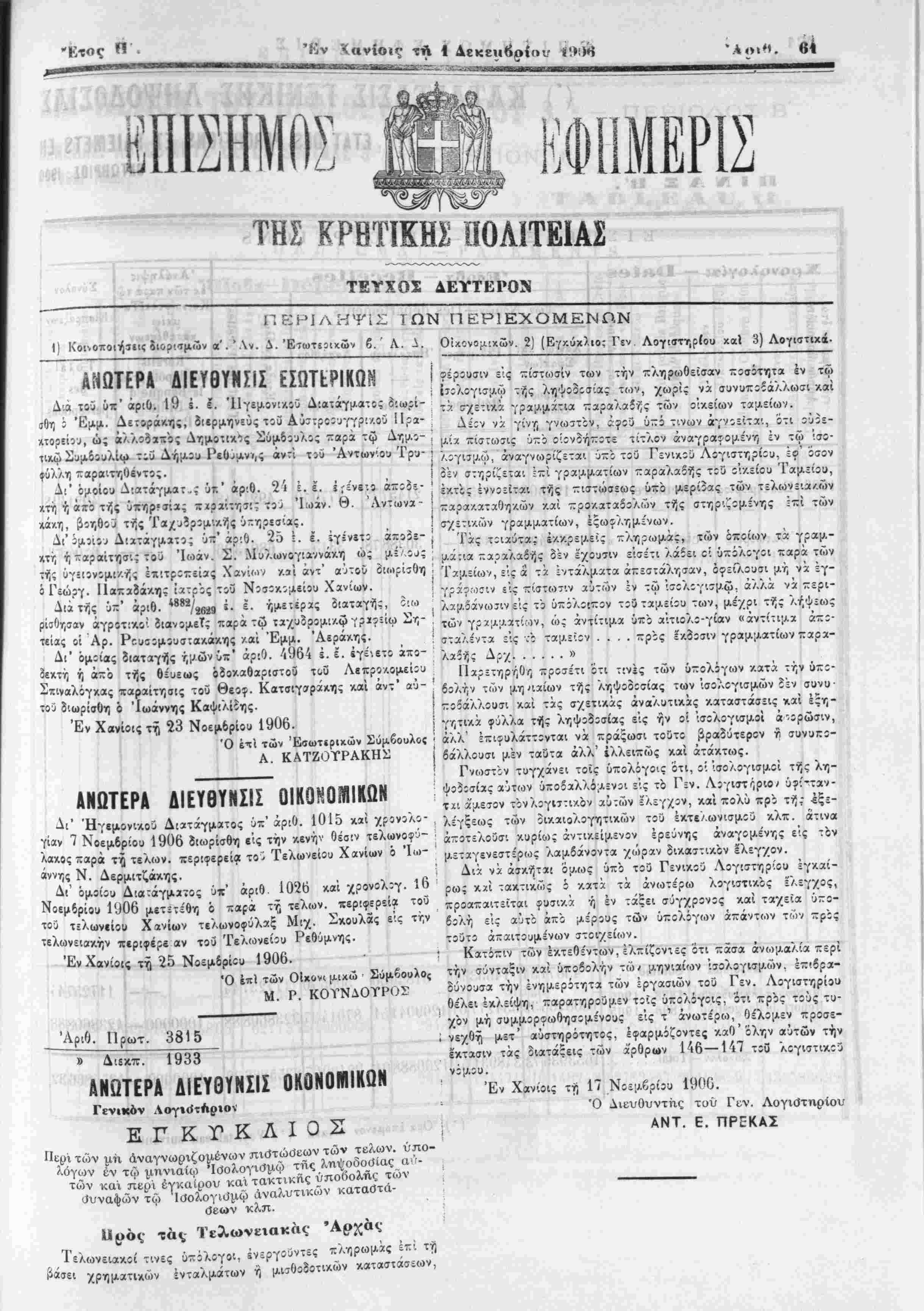 Έν Χανίοις ιΛ 1 Δεκέμβριον ΐ!>!Ηί