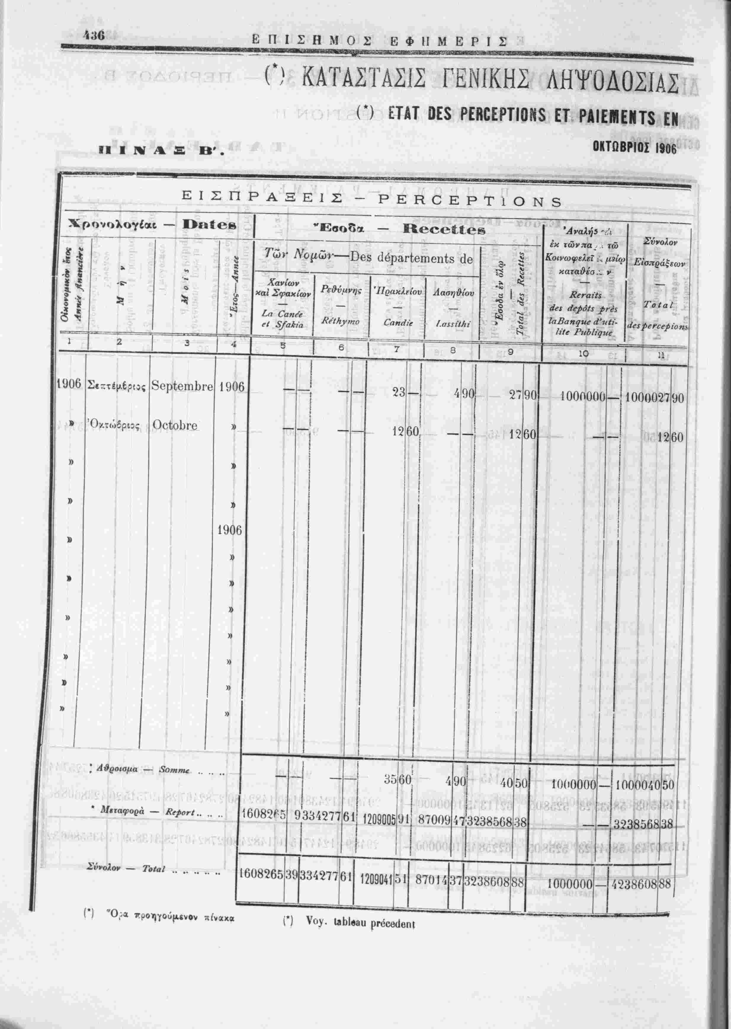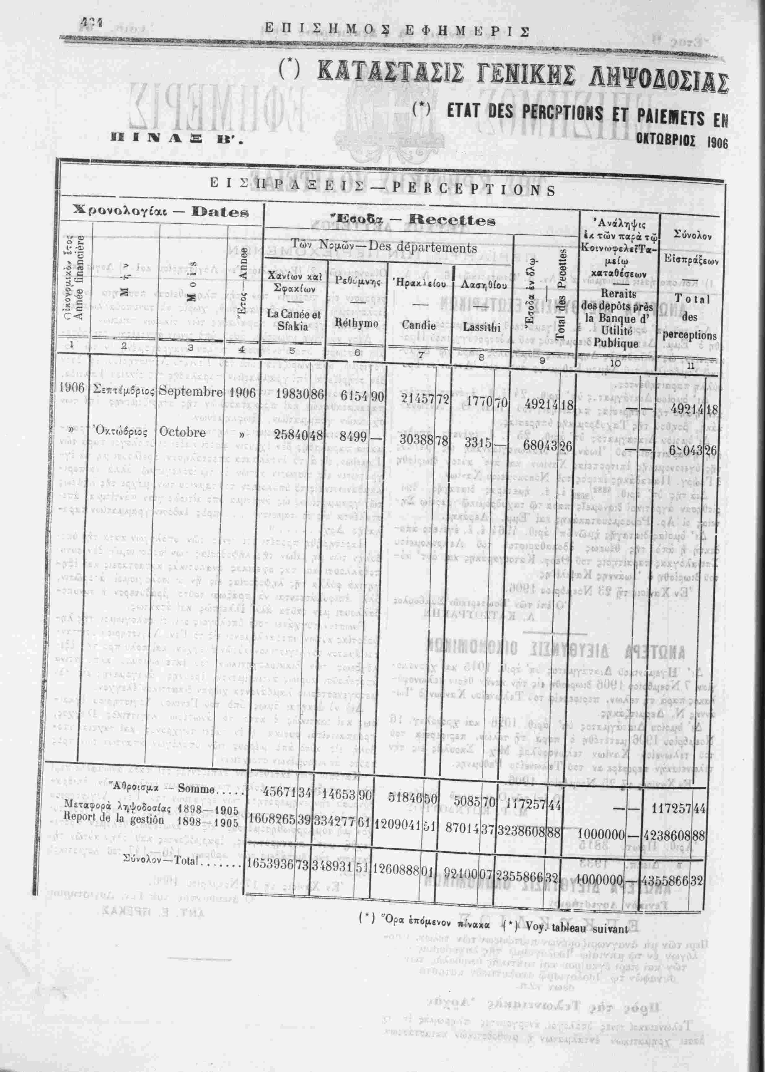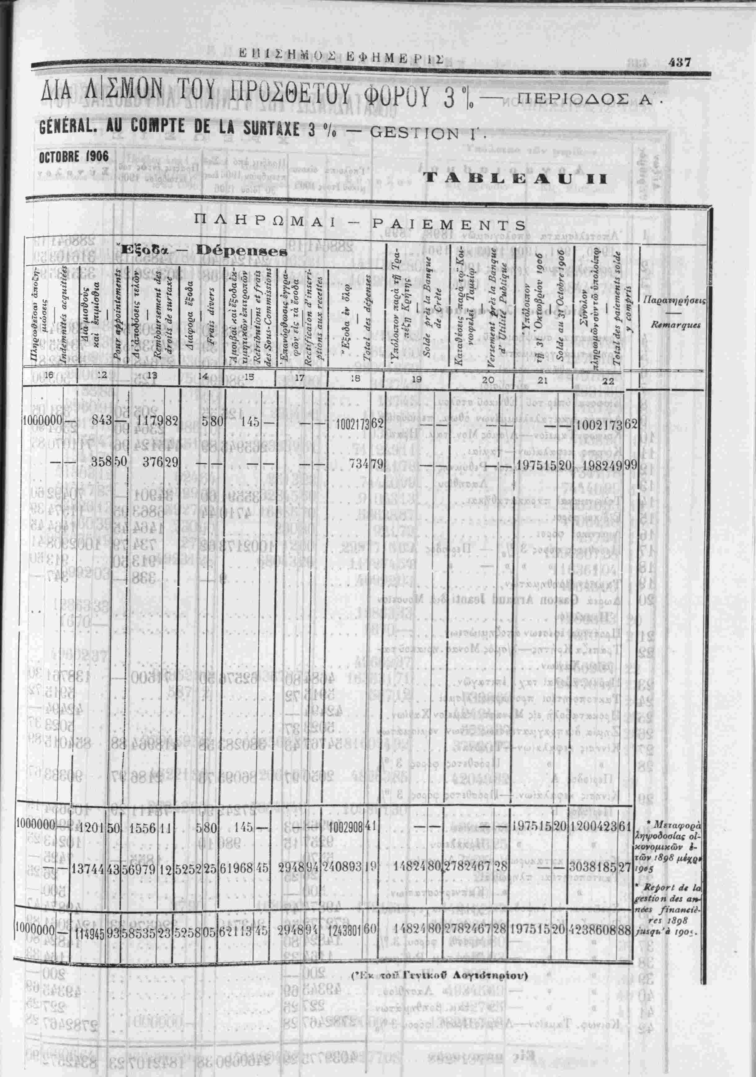 Ανάλυσις των κατα την 31 Όκτωβρίου 1906 ύπολοίπων έν τοίς