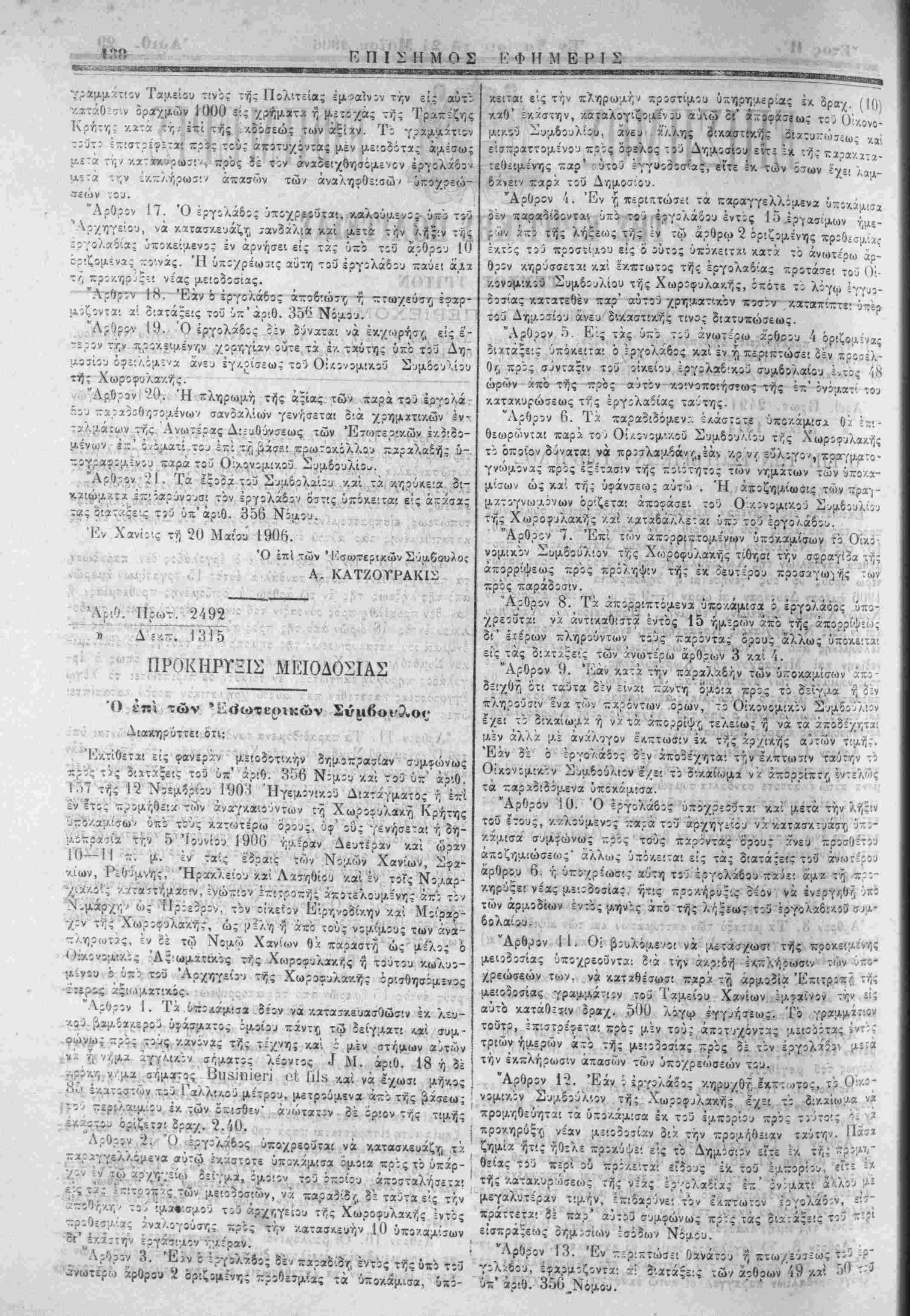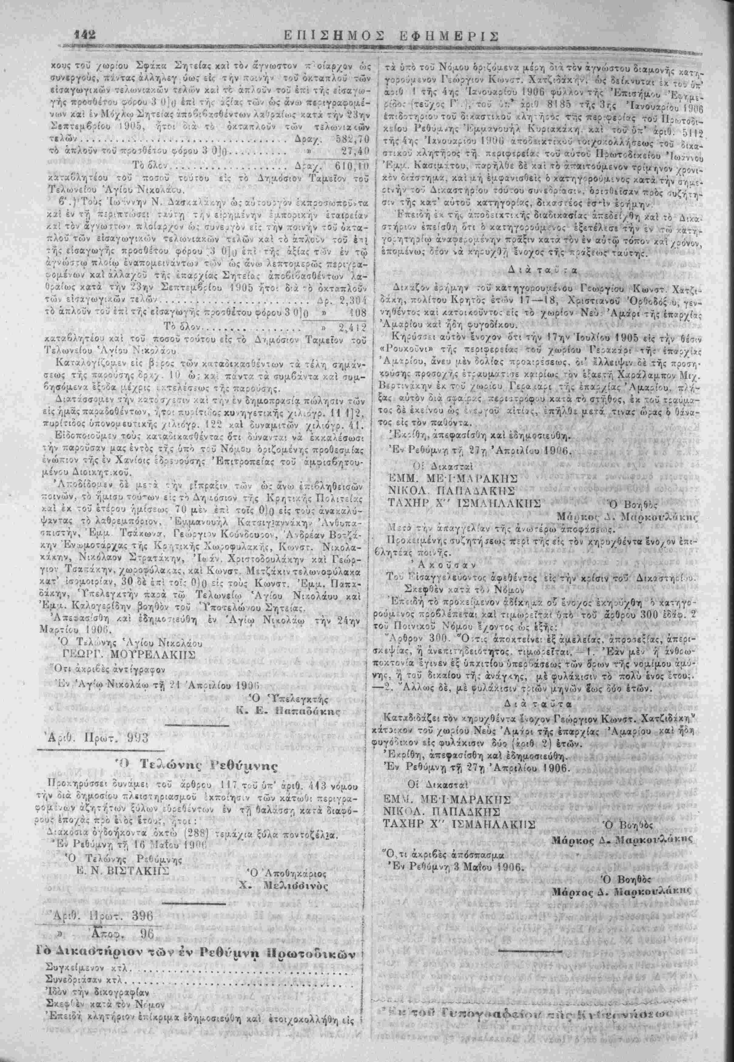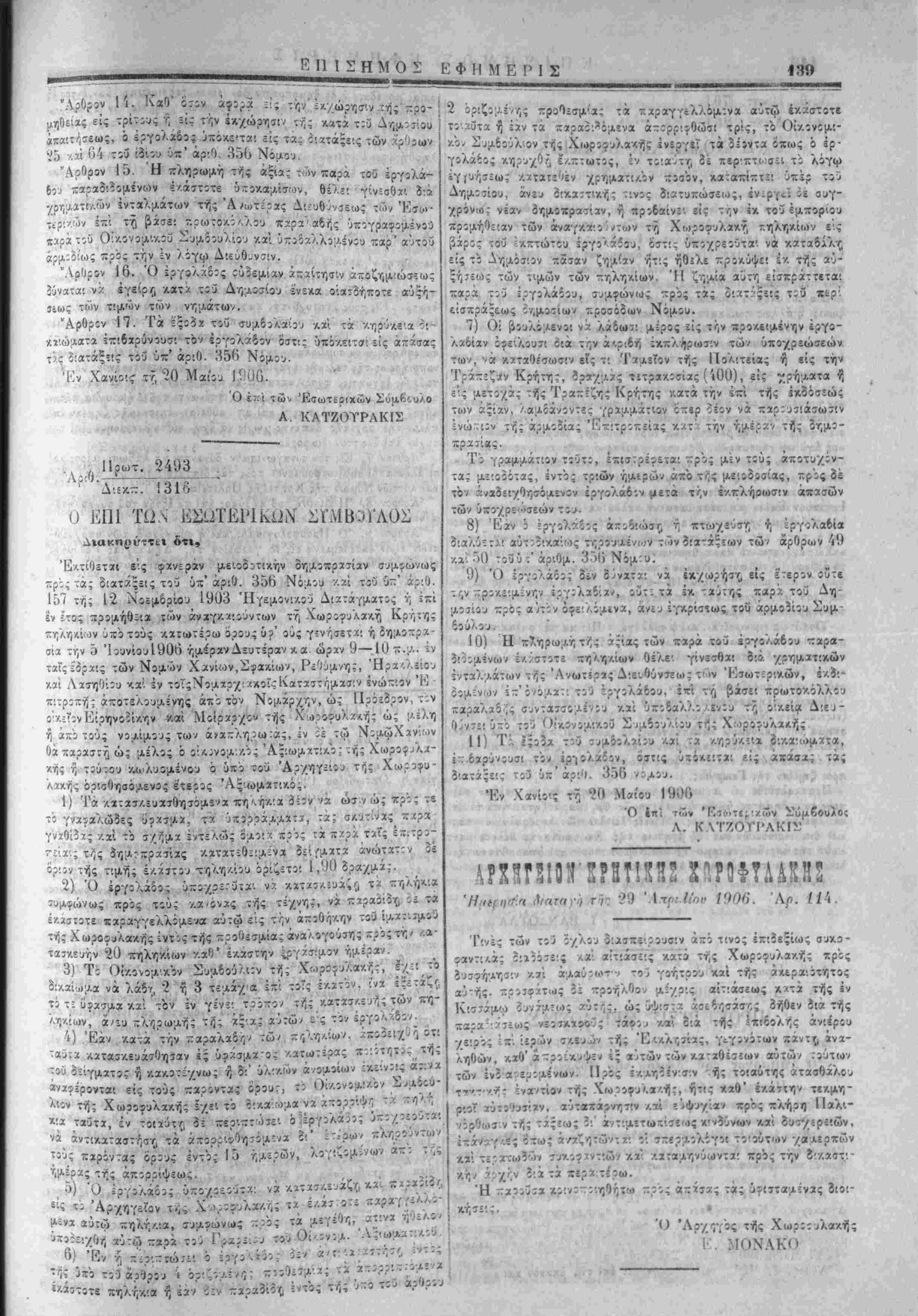 0.2:0 Ι τής 4ης Ίανουαρίου 1906 φύλλον τής Επισήμου Έα,τμ..