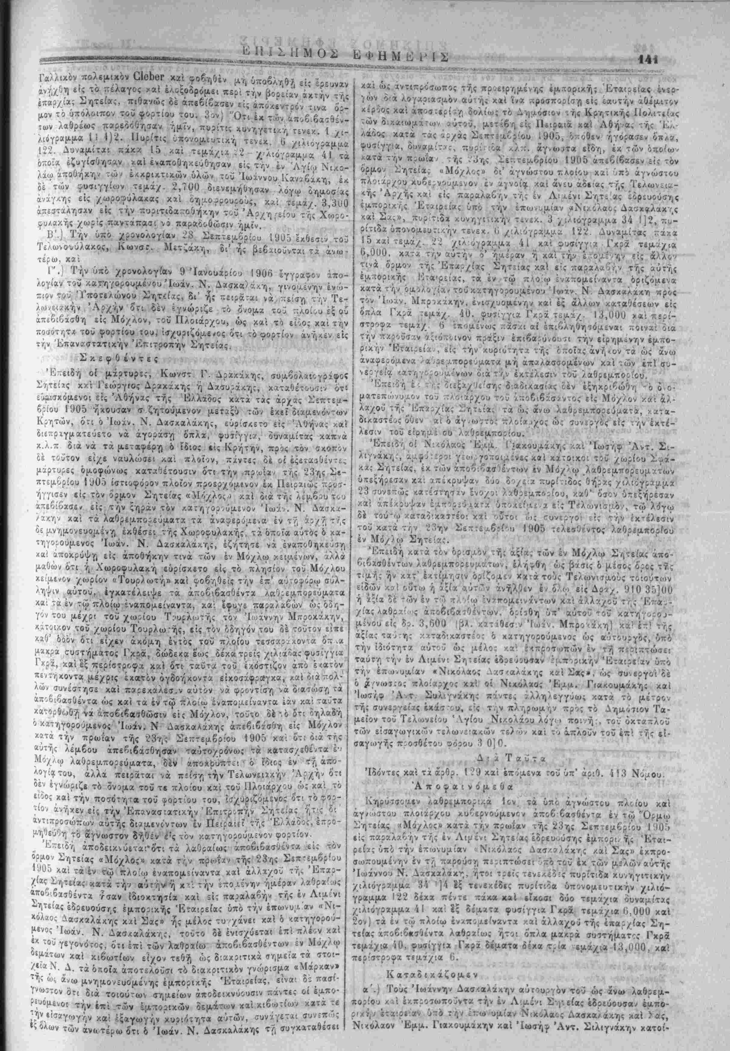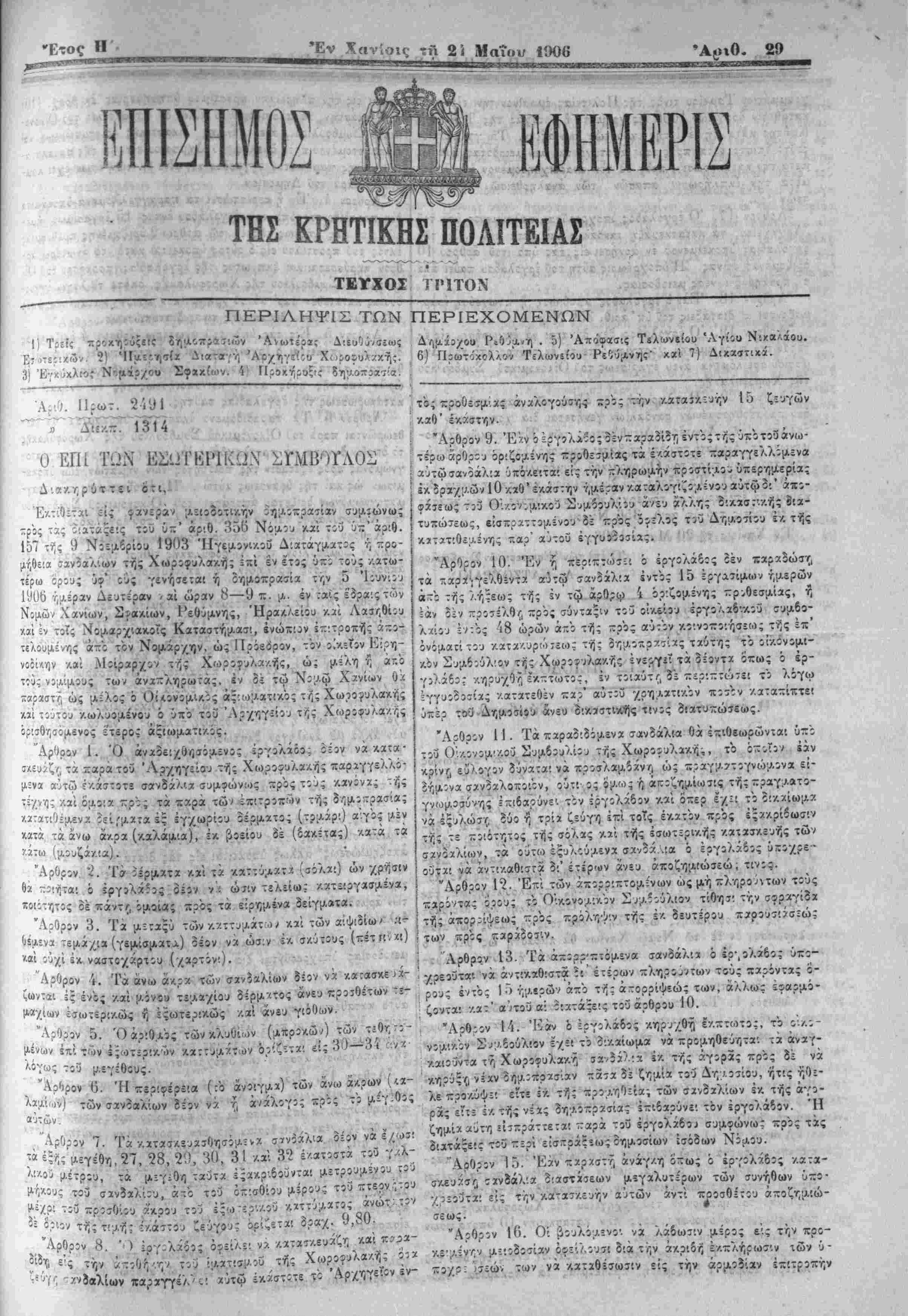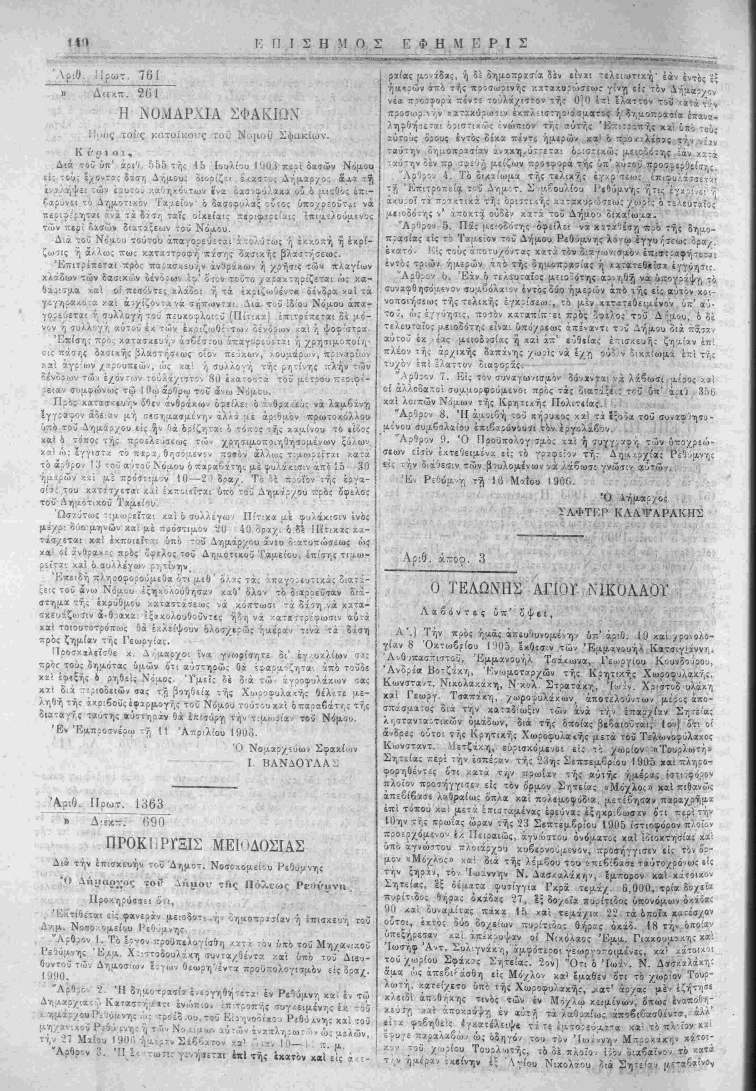 0.2:0 Ι τής 4ης Ίανουαρίου 1906 φύλλον τής Επισήμου Έα,τμ..