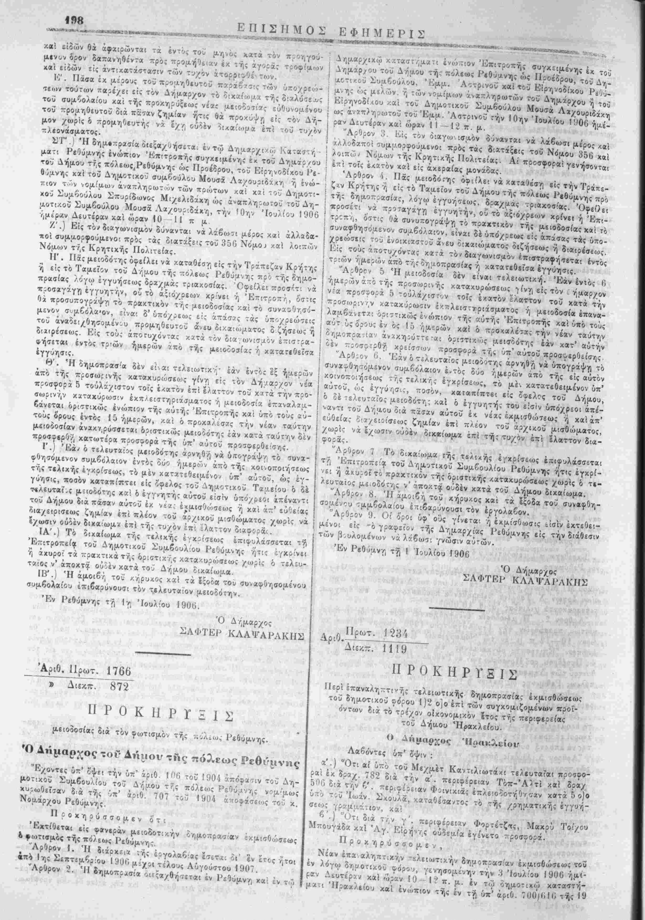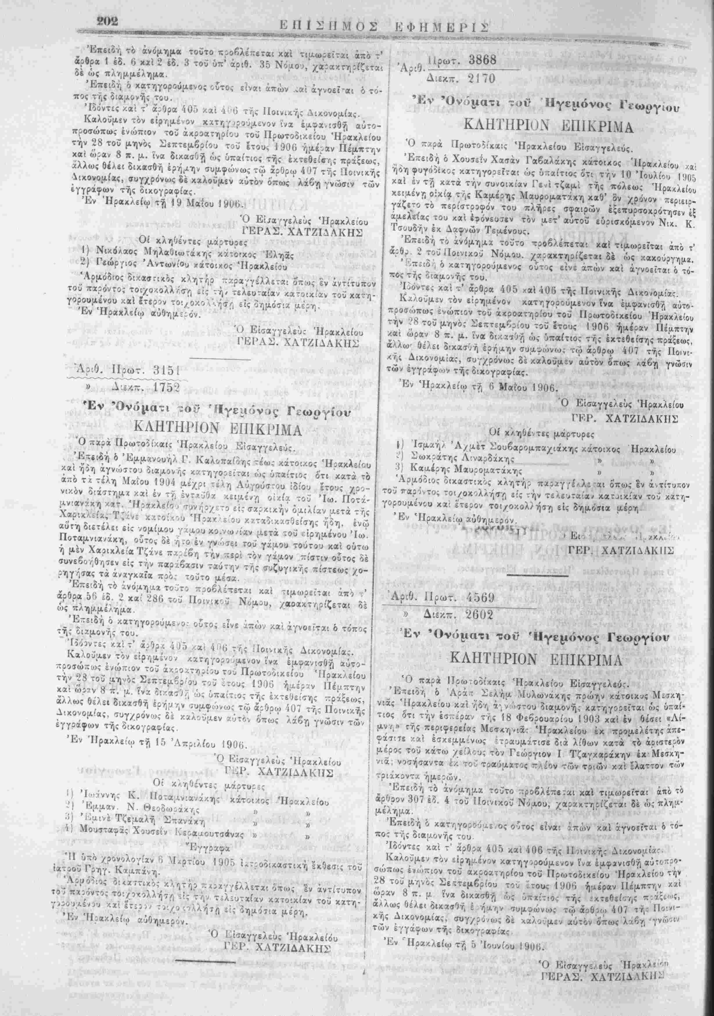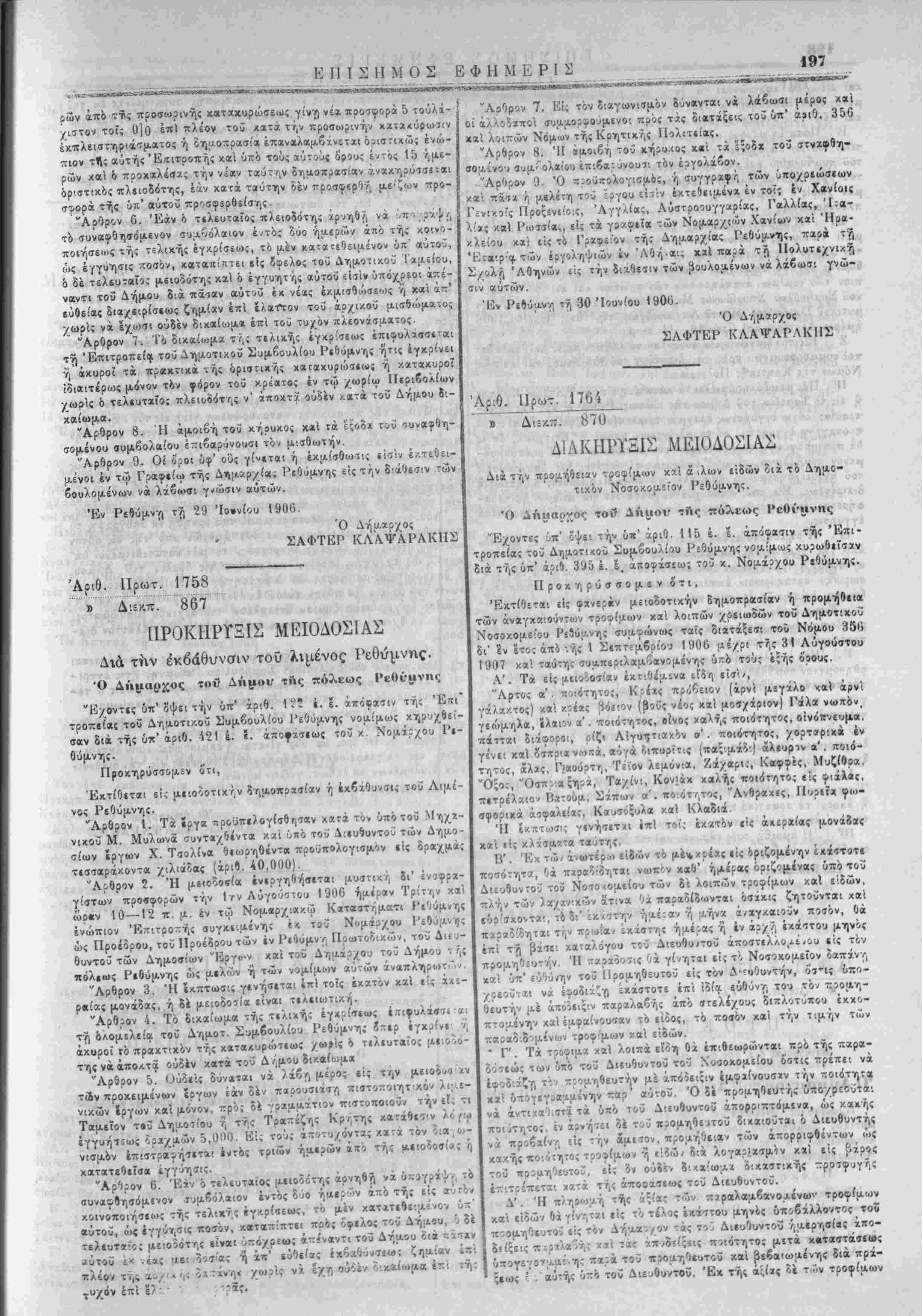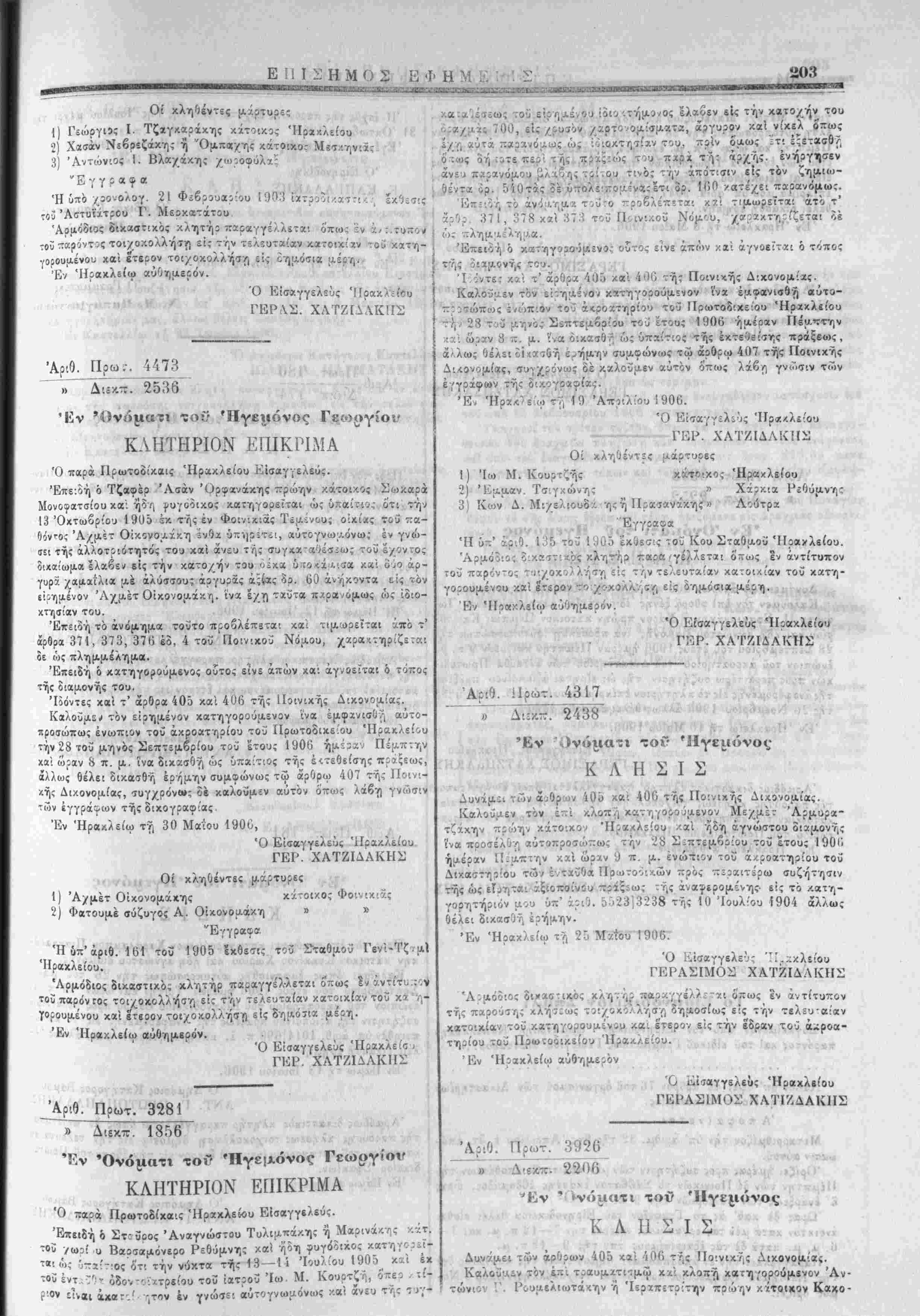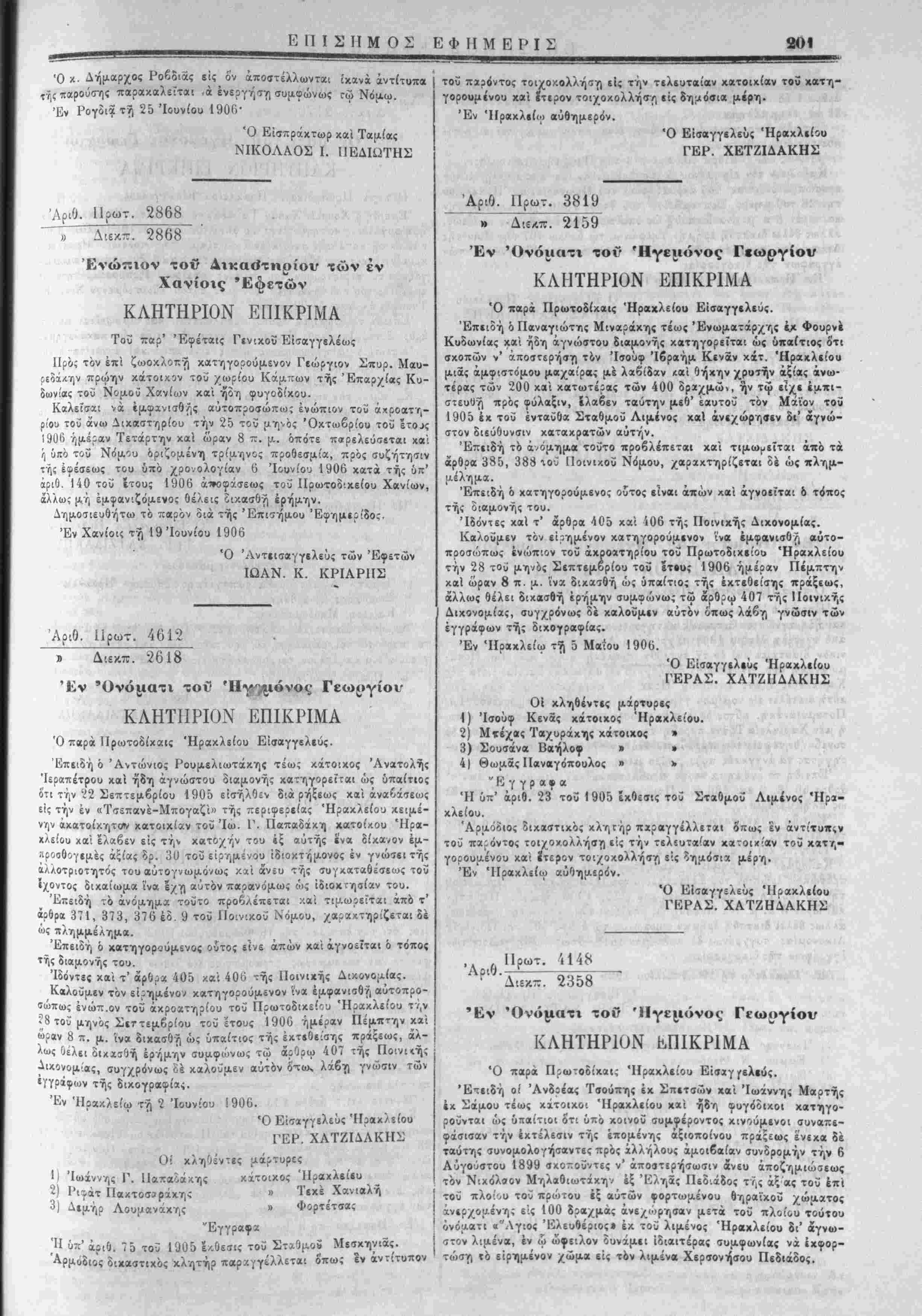 /ου Ηρακλείου. 8) ΙΙίθχήρυξίς Δημάρ/ου Κρητσα';. 9) Κλήσις Τ;-