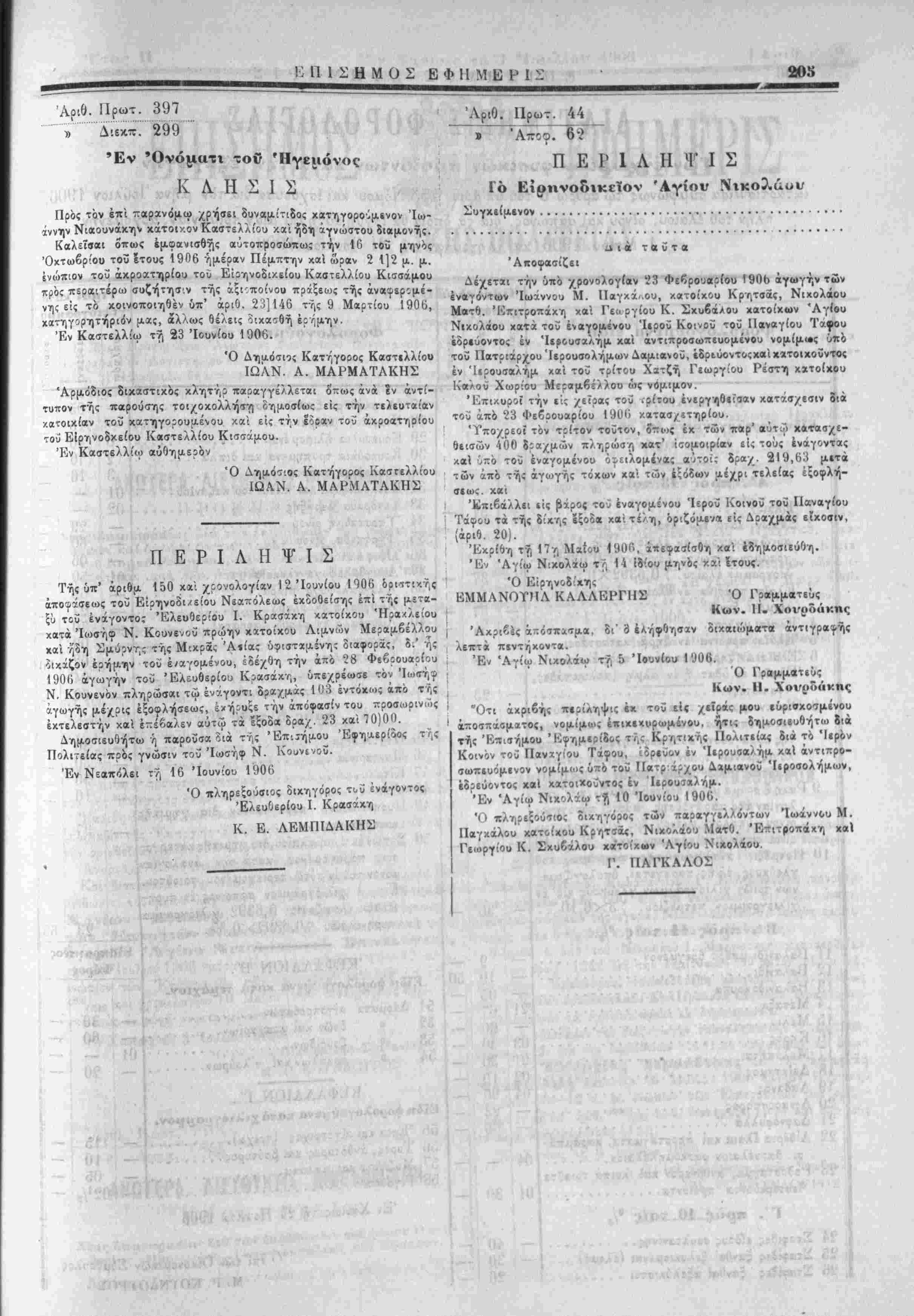 Μ- Ρ !<ΟΤΝΔΟΥΡΟ? , ., { . · ,*„ „, ^ΊΙ ,*'«4 τροπειών. Έν Χανίοις το 26 Ίουνίαυ 1906 Ό έπ1 των 'Κσωτερικών Σΰμβουλος Α ΚΑΤΖΟΥΡΛΚΙϋ: _ν·0. ΙΙρωτ. 3022 ι ' ' . » Αιε/.π. 703~ ΠΡΟΣΚΛΗΣΙΣ Ανωτέρας 1ιευθύν«ϊεωί; Ιΐαιδείας ί Δοο*ι/νϊΜ· καί καί Δικαιοοι/νϊΜ Οί βουλόμενοι έκ των ;-/>τ..>ν τα υπό «Ο Νάμο.1 όριζόμενα