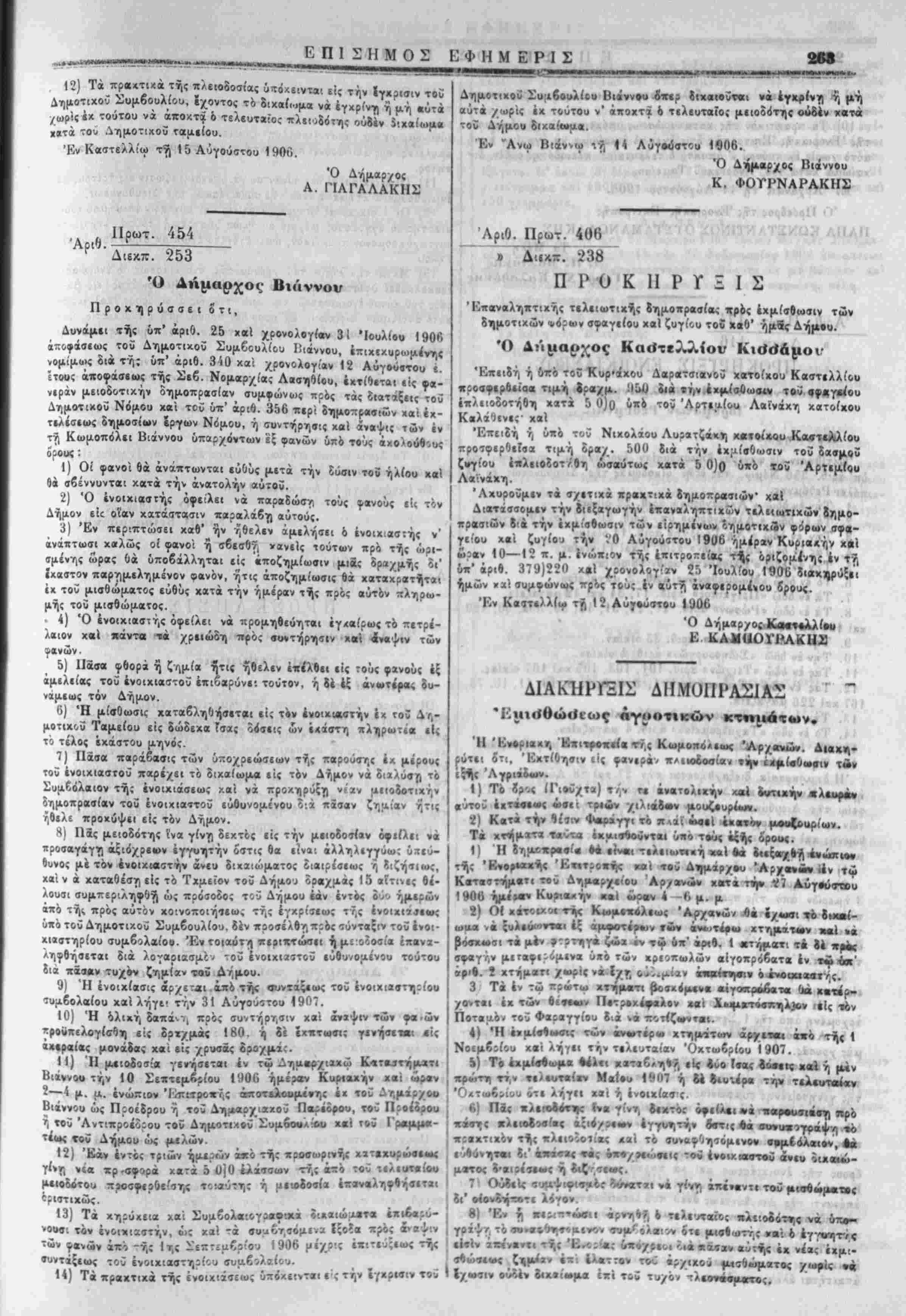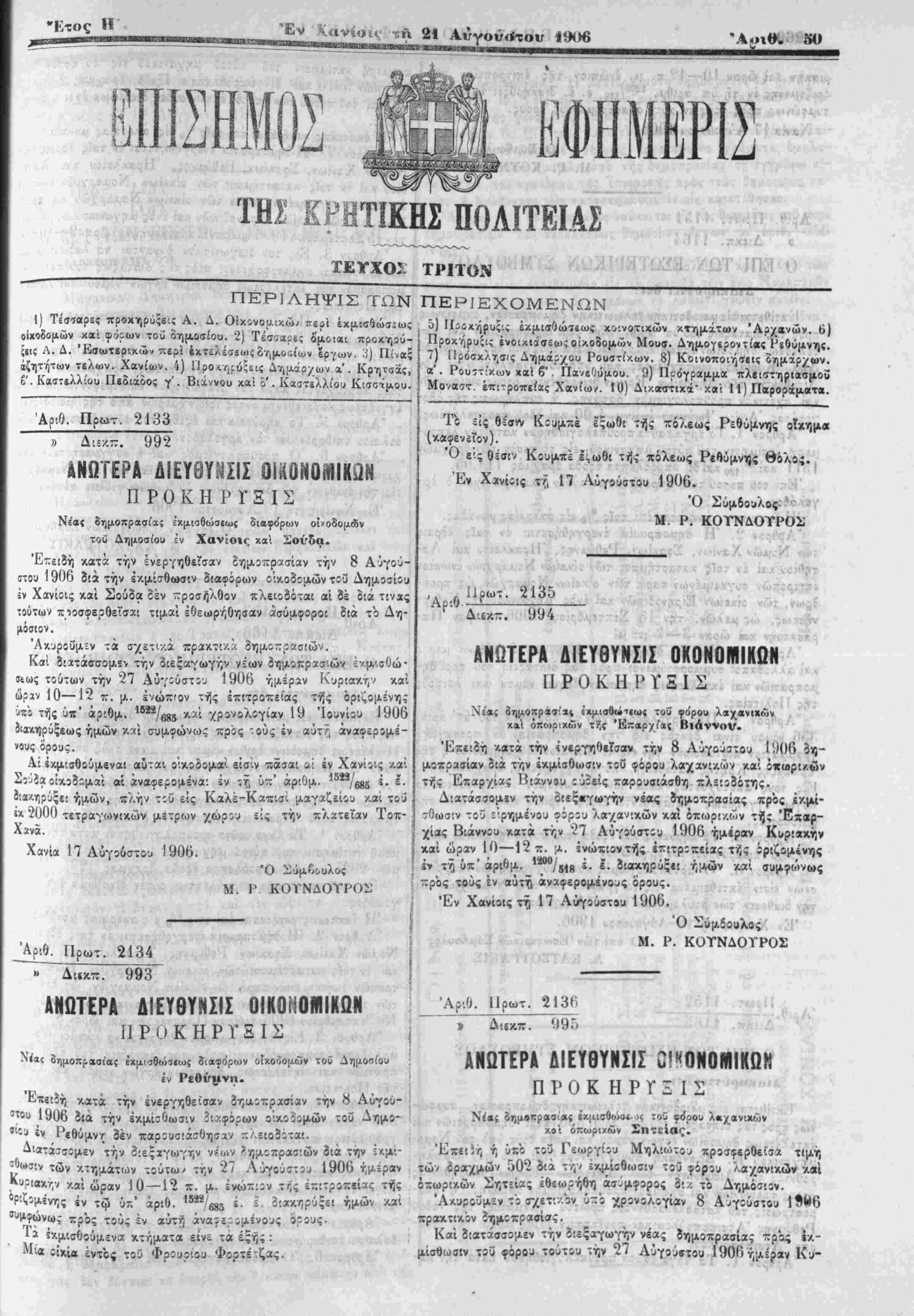 (; Αύγοάστίυ 1906 τεΰχ. γ'. φΰλλου τής Επισήμου Έφημίρί-