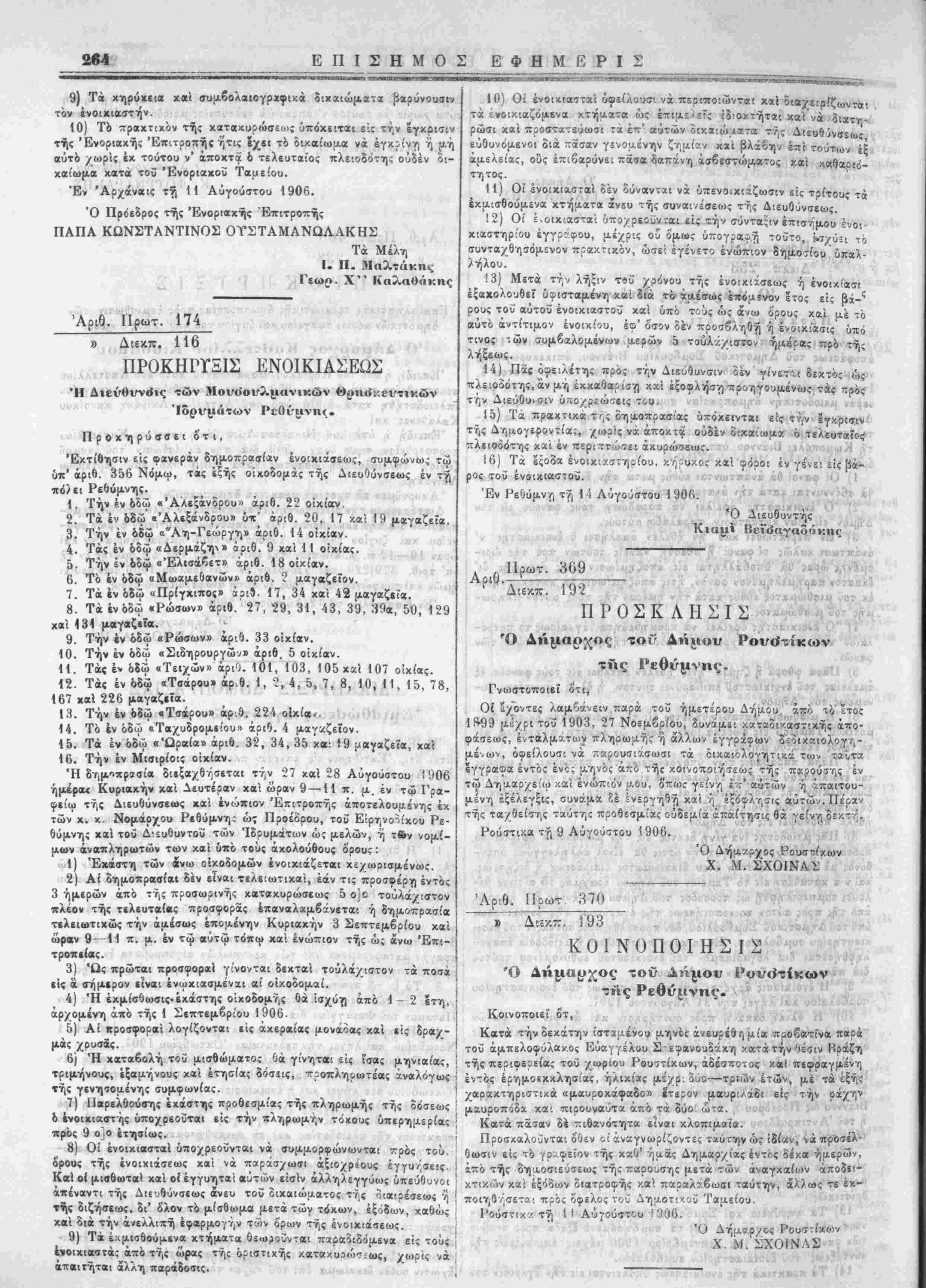 Έν Ρεθύμνη τή 11 Αύγούβτου 1906.