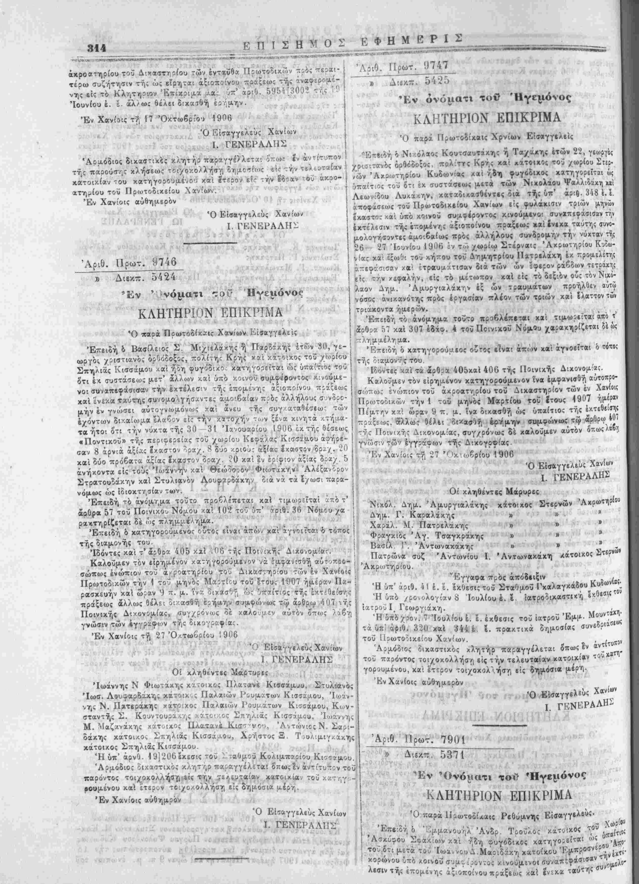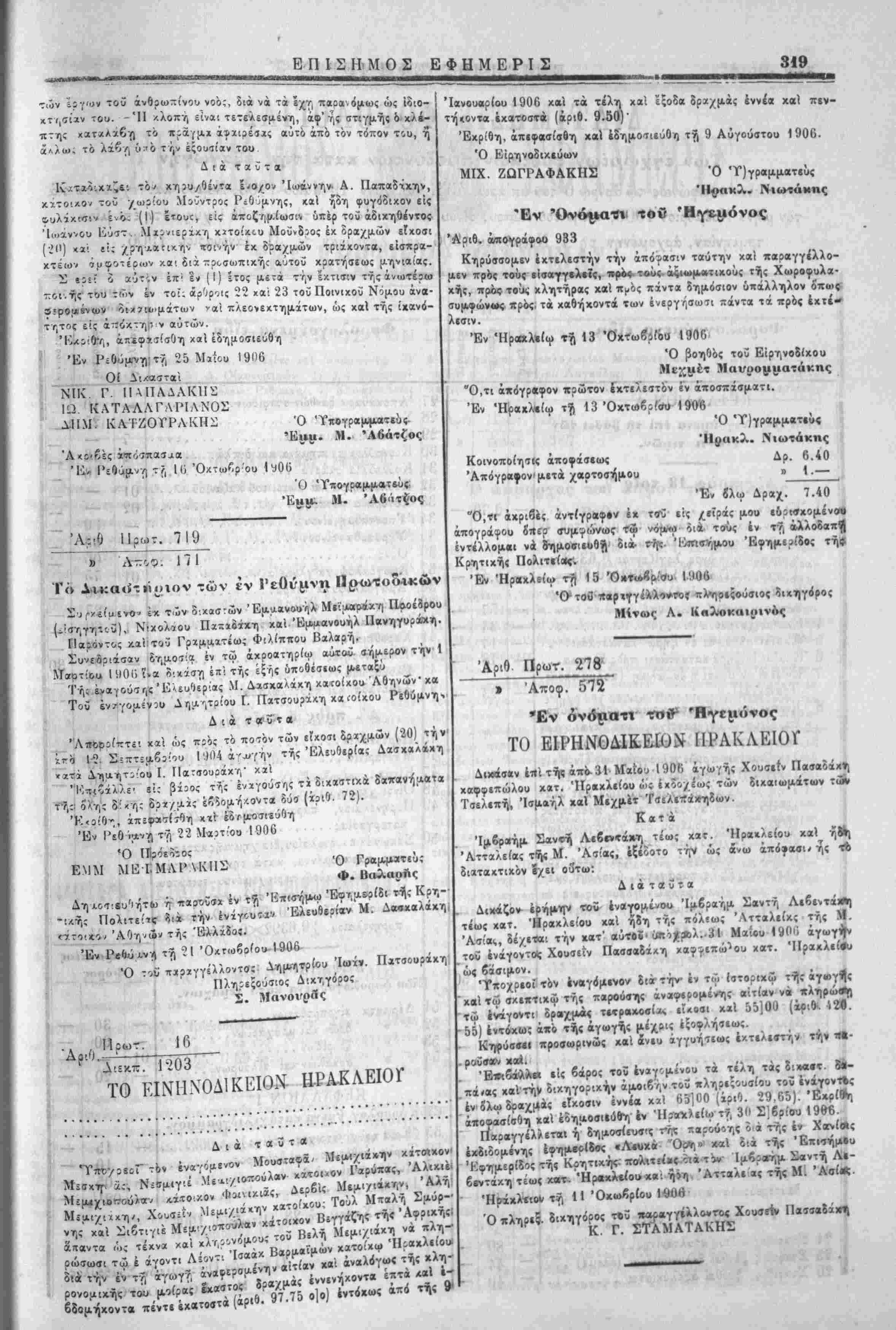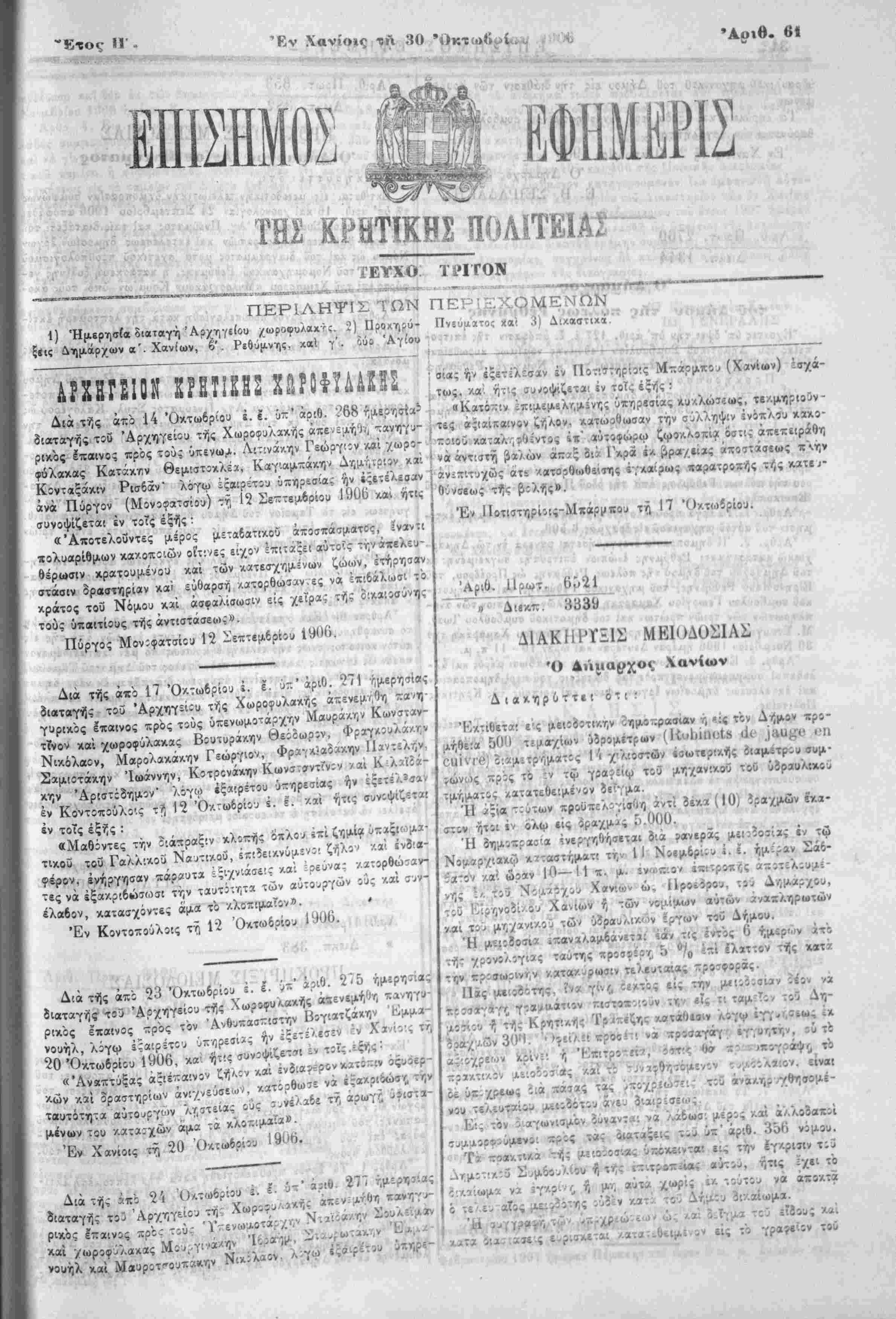 Έν Χανίοις ττ, 24 Όκτωδρίου 1906 ι :