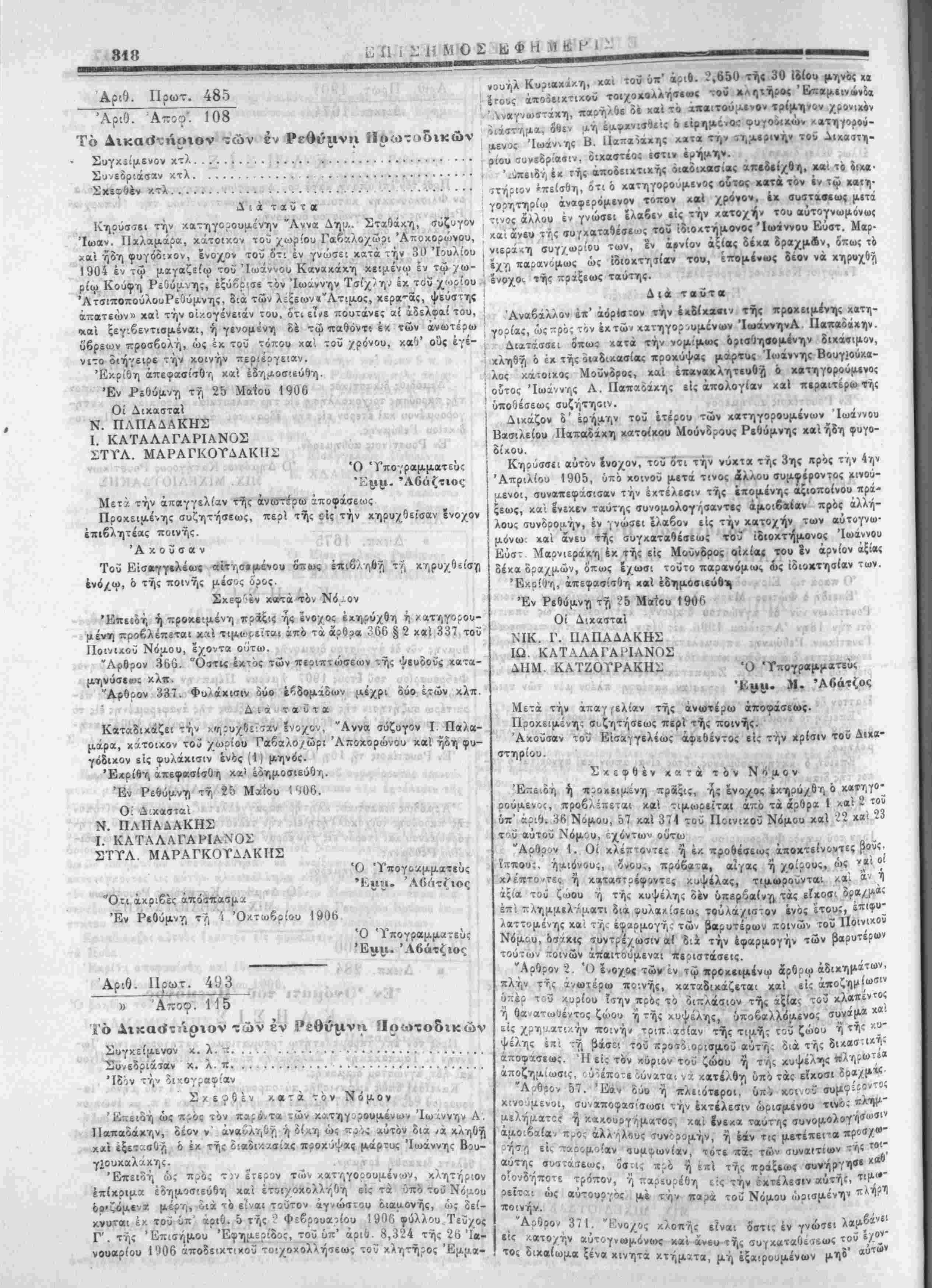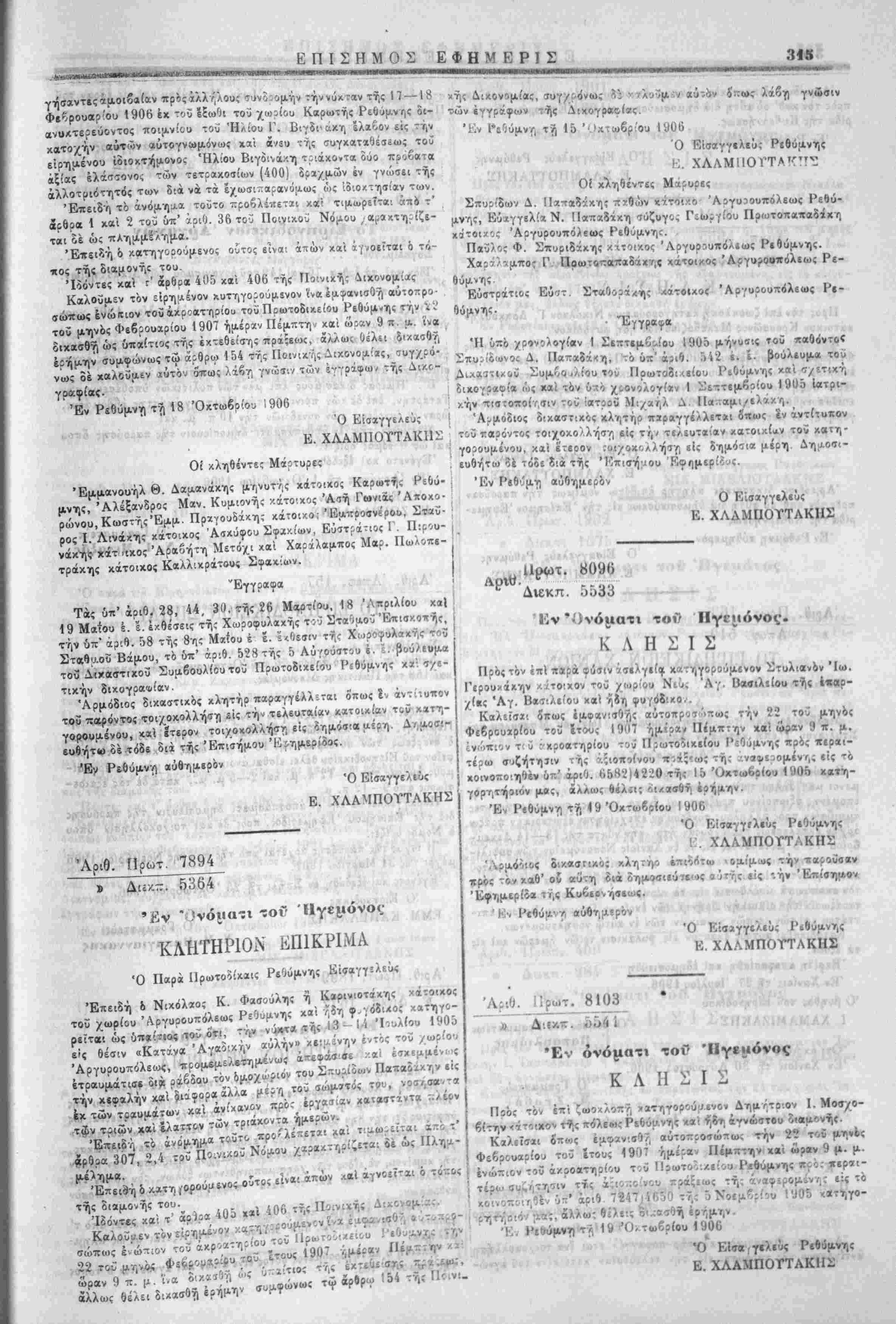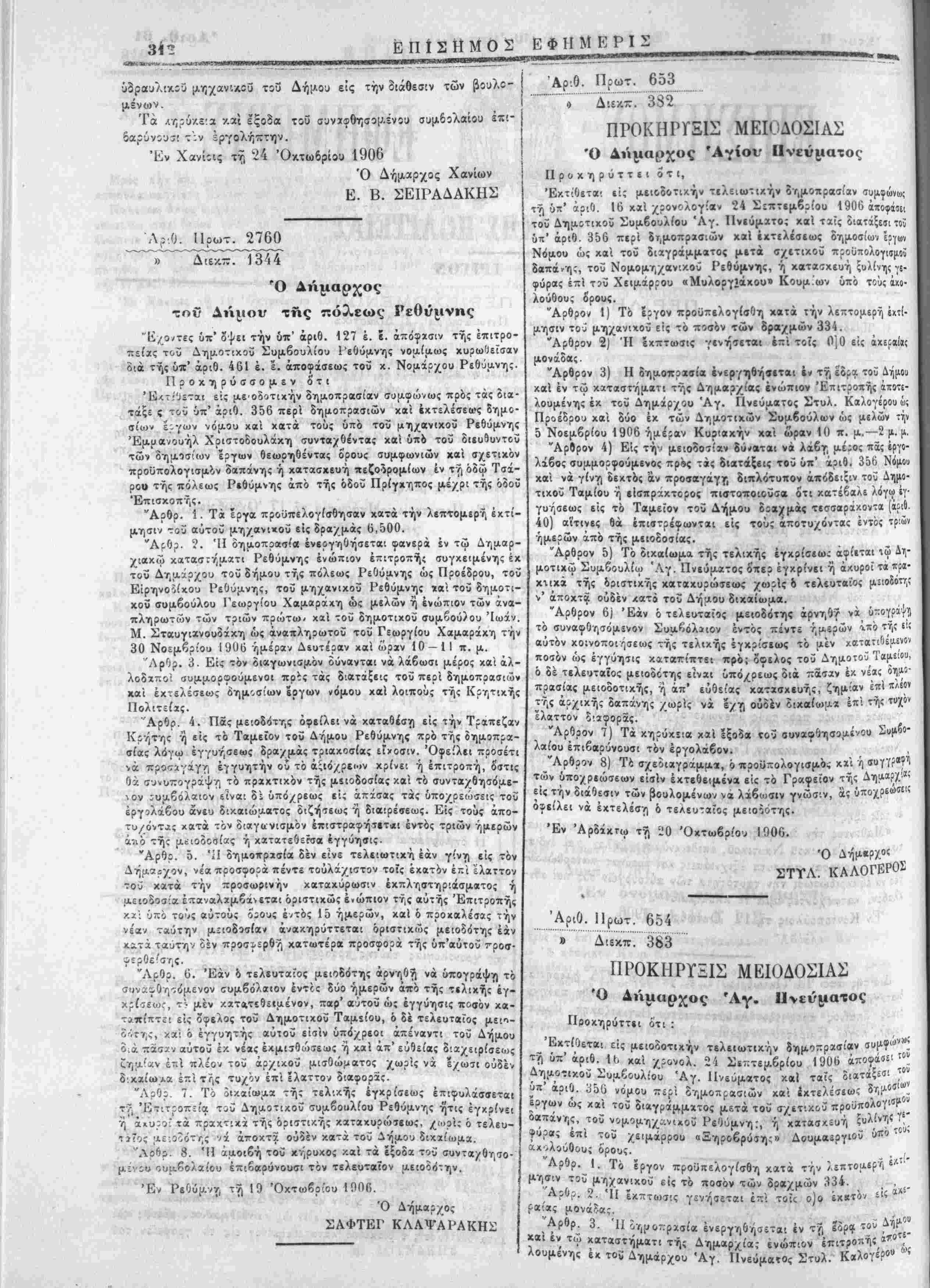 διά τής υκ' αριθ. 461 έ. ε. αποφάσεως τοΰ κ. Νομάρχου Ρεθύμνης