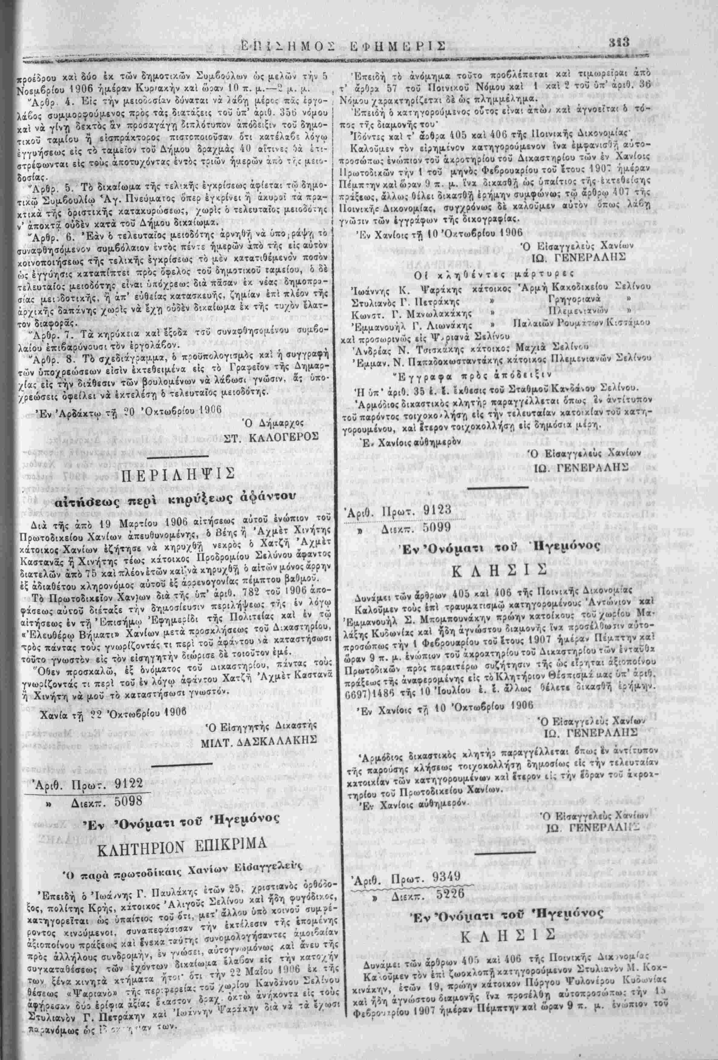 τοϋ ίν.ρΓ,νοΐί. 5^ Χανίο)ν ή των νομ.ί<ιΐο>ν αυτών ανατΐληρωτών