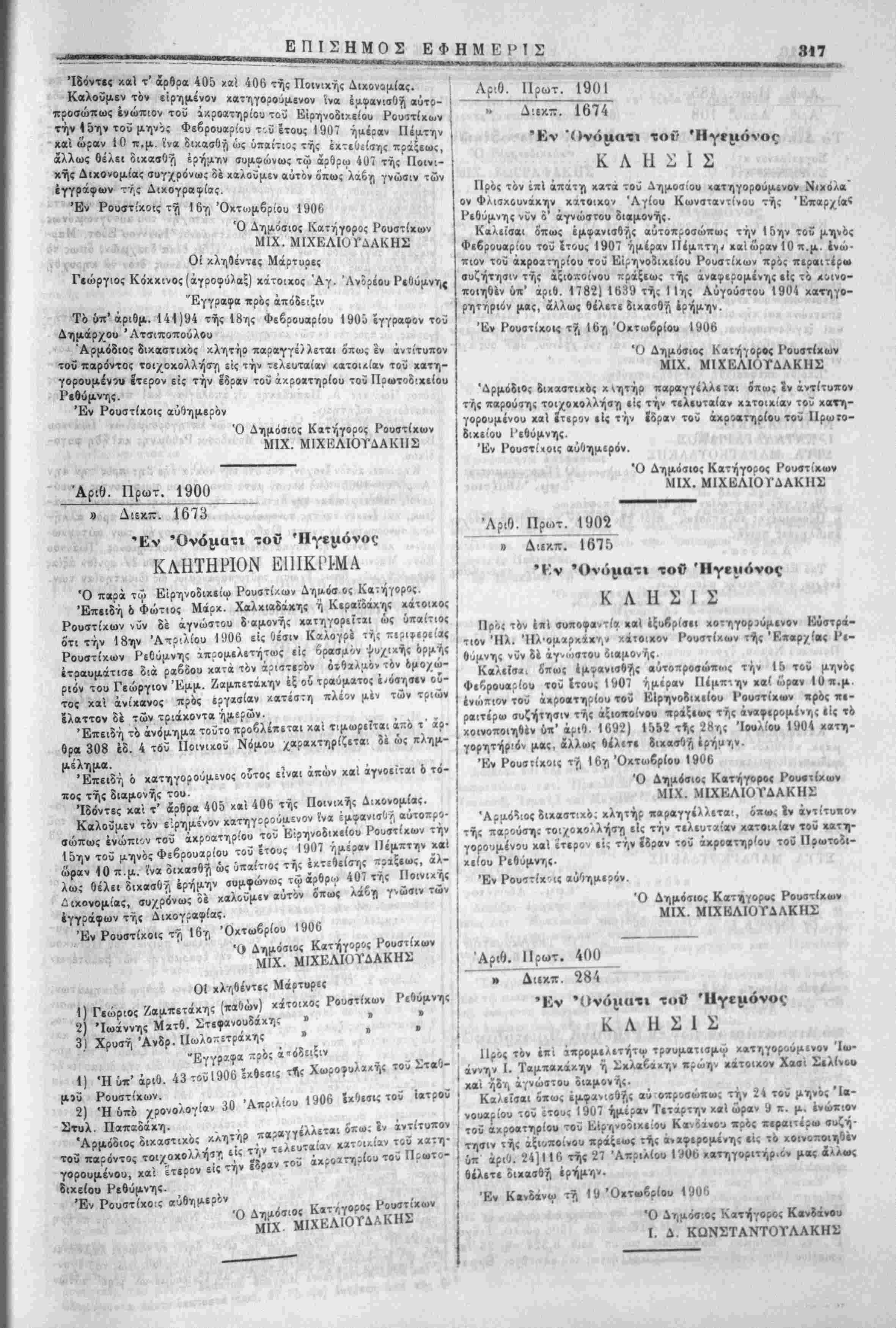 ,.™ /ωροφυΛαχ-ς 2) Προχηρύ- Πνευαατο< χαϊ 3) Δ.χαβτιχα. Ρεθύμνης, κ«ι γ'. 5ύο Άγίοο " ___^ ^^_^1_ 1^_ Λ ί Διά τής «πό 14 Ό*τ-6Ρ«-» έ.Ι._«_«ρΛ· ^ Τ'^£. τες β&β1[βνβν «1, κατωοθωσαν την σύλληψιν .»«** *»£ διαταγήςτοΰ Άρχηγειου τής Χωρο^ακης «πε- ,η), .«νη ,_ ' ^ ού καταλ,-,Ο^ντος 4« ~χοτ«μΡΨ ζφοκλ,πα όστις απεπειράθη συνοψίζεται έν τοίς εξής· αιΙ3σ1τά,ματος, ^ναντ. «Αποτελούντες μ=ρ«ς μ-·αοατΐΑϋ __ ά«λευ- ^^^^^^^■^ στάσιν δραστηριαν και_ ευθαοστ, μ ·Αατε<Γ/ημΐνων ζωω, ήρ /.ατορθωσαν ες να έπιβάλωσΐ τό ί ί ής ί'καοσίνης στάσιν δραστηριαν καί ε^α^βτ! /.ατορθωσαν ες κράτος τοϋ Νόμο^ καί άσφαλισωΐΐν είς χείρας τής ί'καοσί τους ύπαιτίους τής άντιστασεως». Π,ύργος Μον;φατσί«υ 12 Σεχτεμβρίου 190ο. ^α, , ■/>;-( ίη =