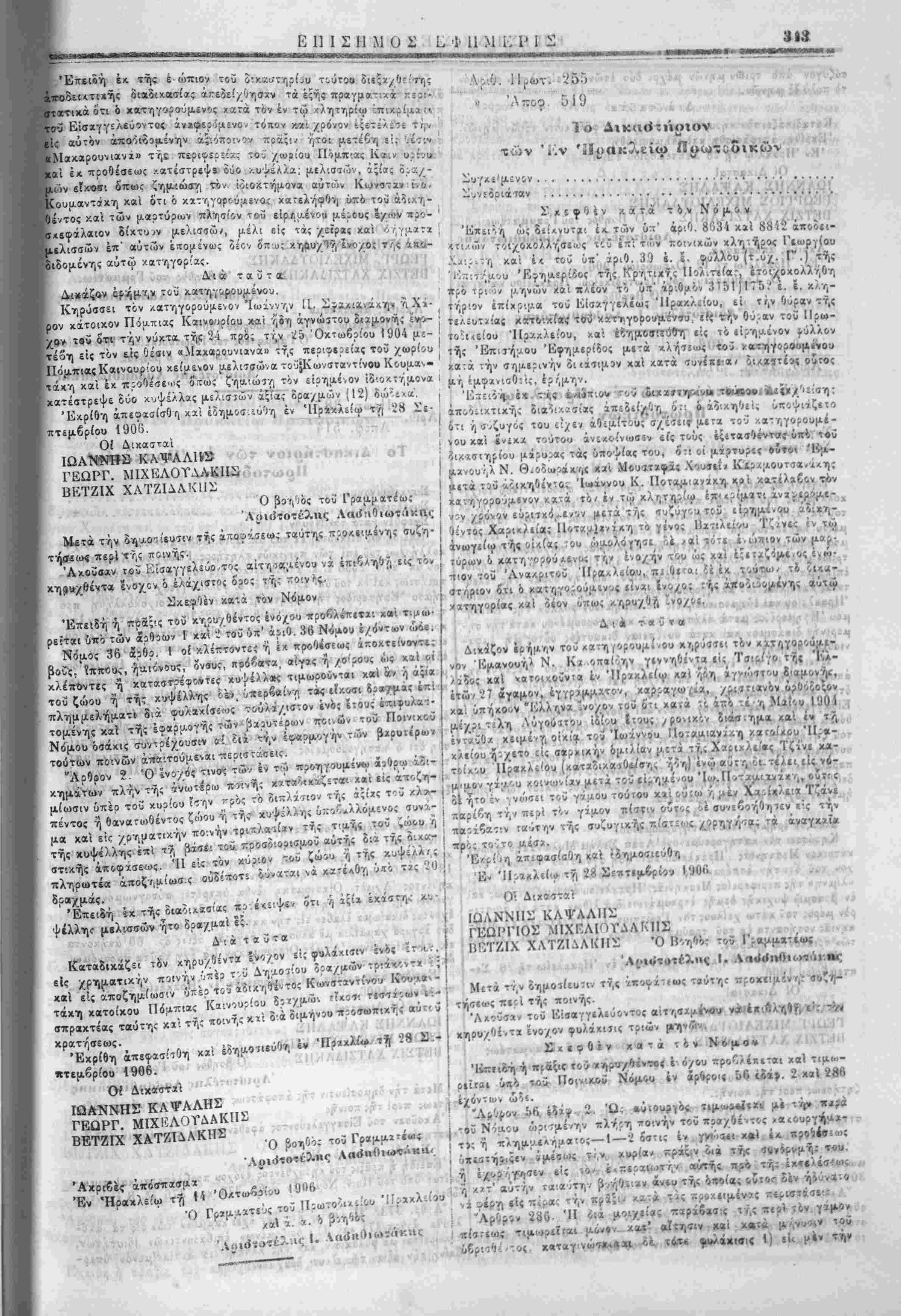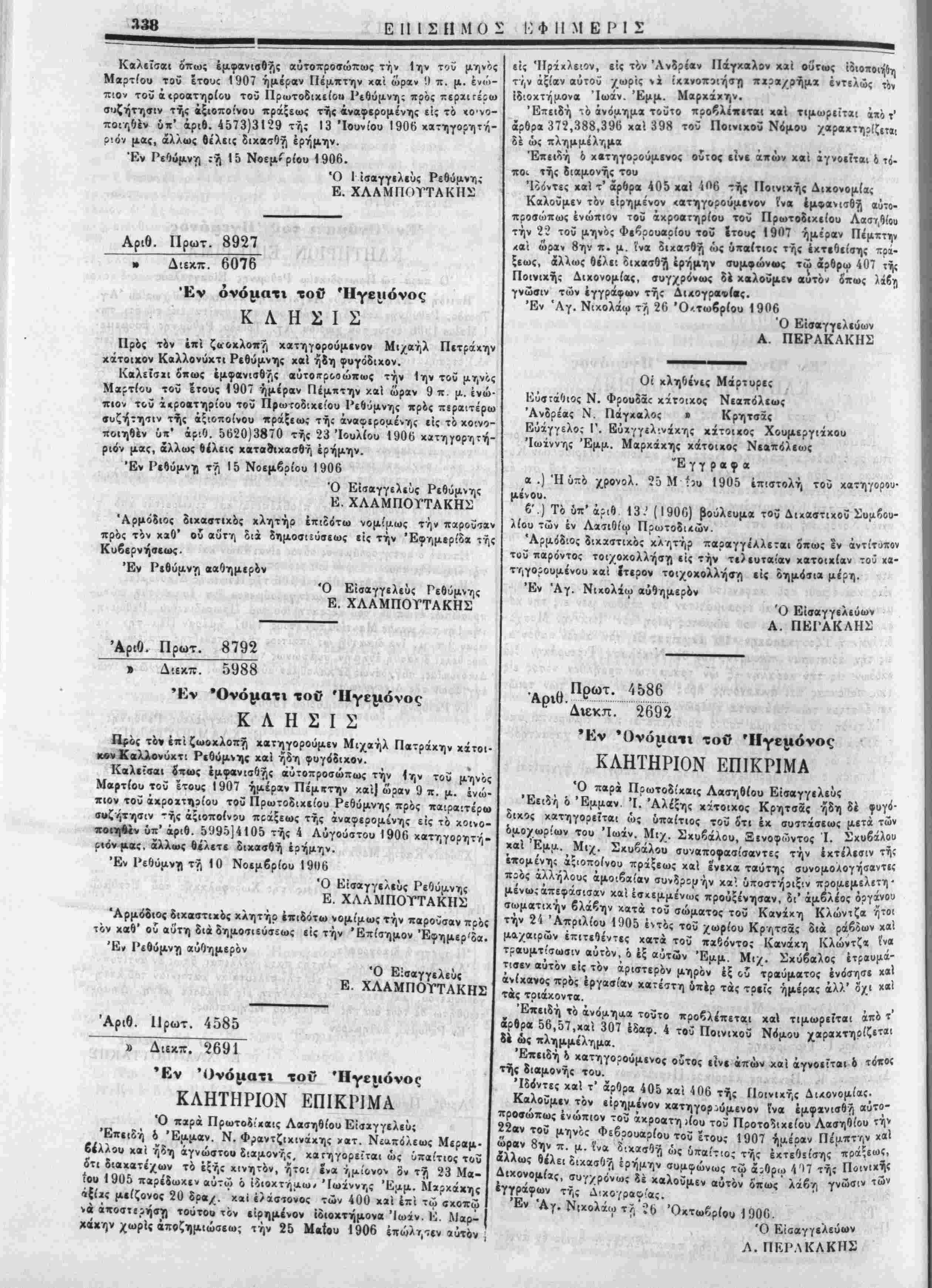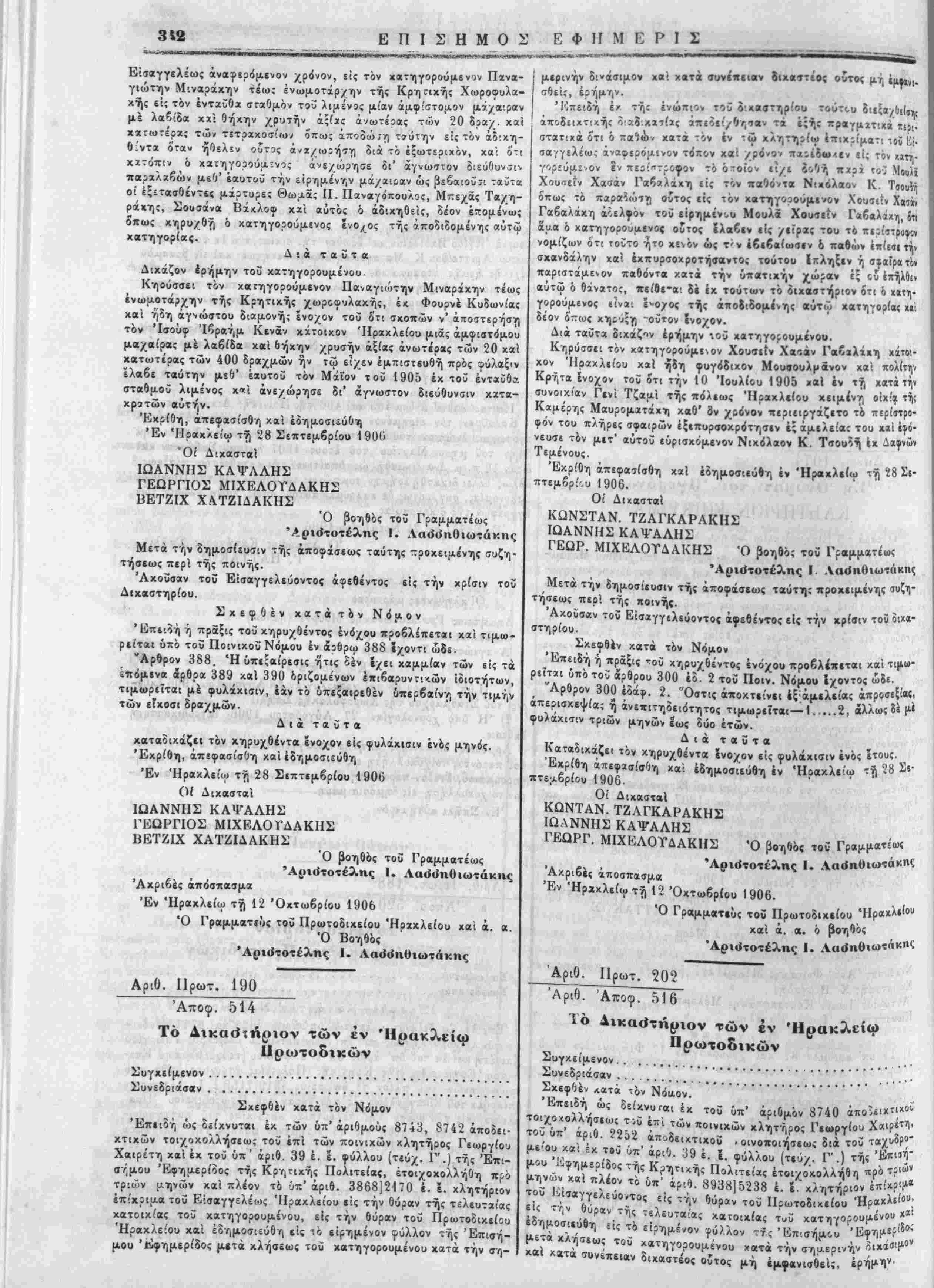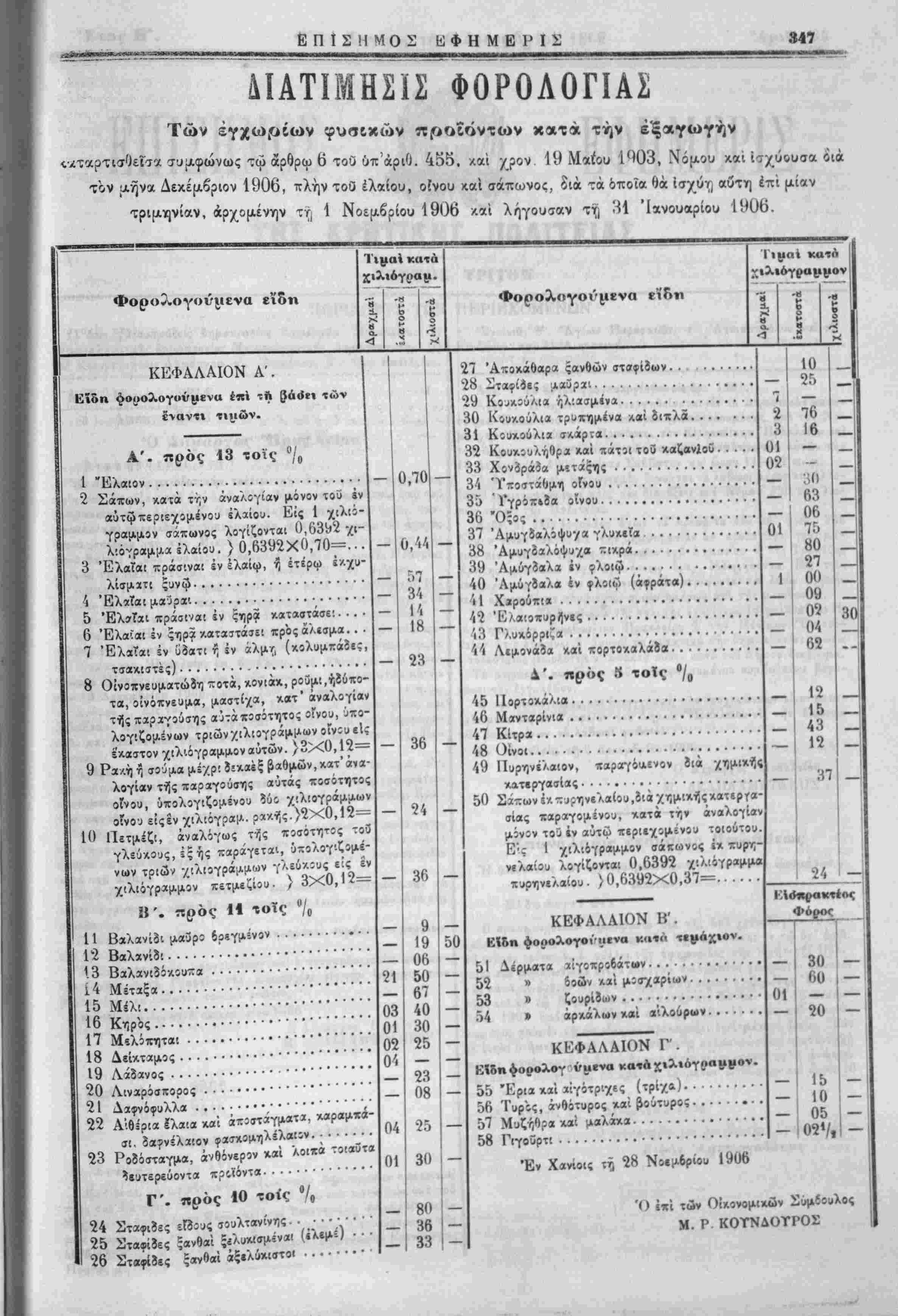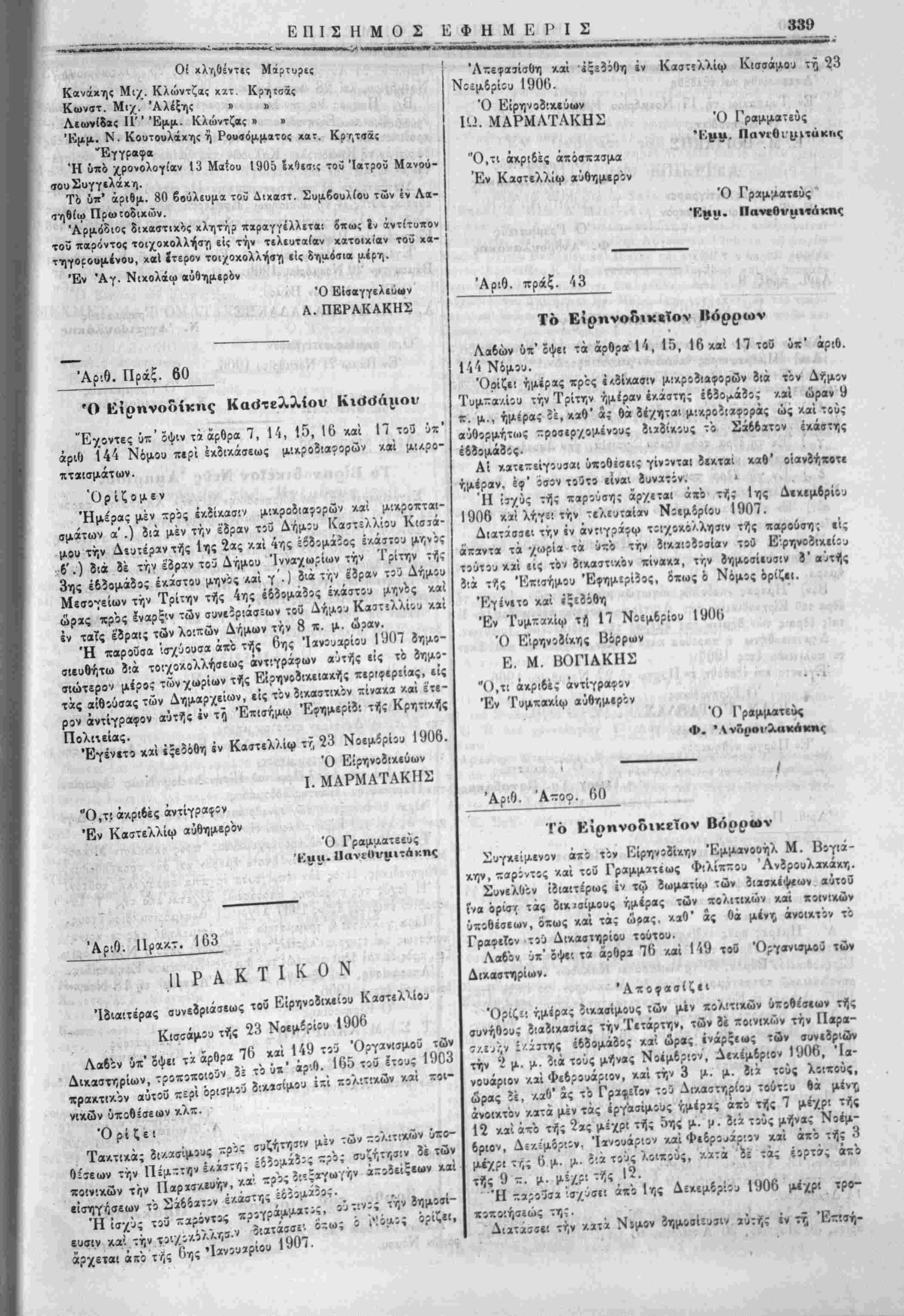 Ι Έντελλόμιθσ την ι'ις την Έπίσηιιον Εφημερίδα δημοσ.«υσι< | τής παρίύσης. ■ Έν Χανίοις τή 20 Νβεμδρίου 1906. Ό Νομαρχεύων Χανίων 1. ΛΙΟΝΙΙΣ Ό ύ)γραμματ«ΰς καί ά. α. ό α'. " Ι Γ. Μ. Χ·ι<νι | Διά την άχρίίί'.αν τής άντιγραφής Έν Χανίοις τή 21 Νοεμβριού 1906. Ό πα;ά τ?Νομαρχία Χανίων α'. Γραφεύς Γ. Μ. Χ *-: ■'--—■>*-—-