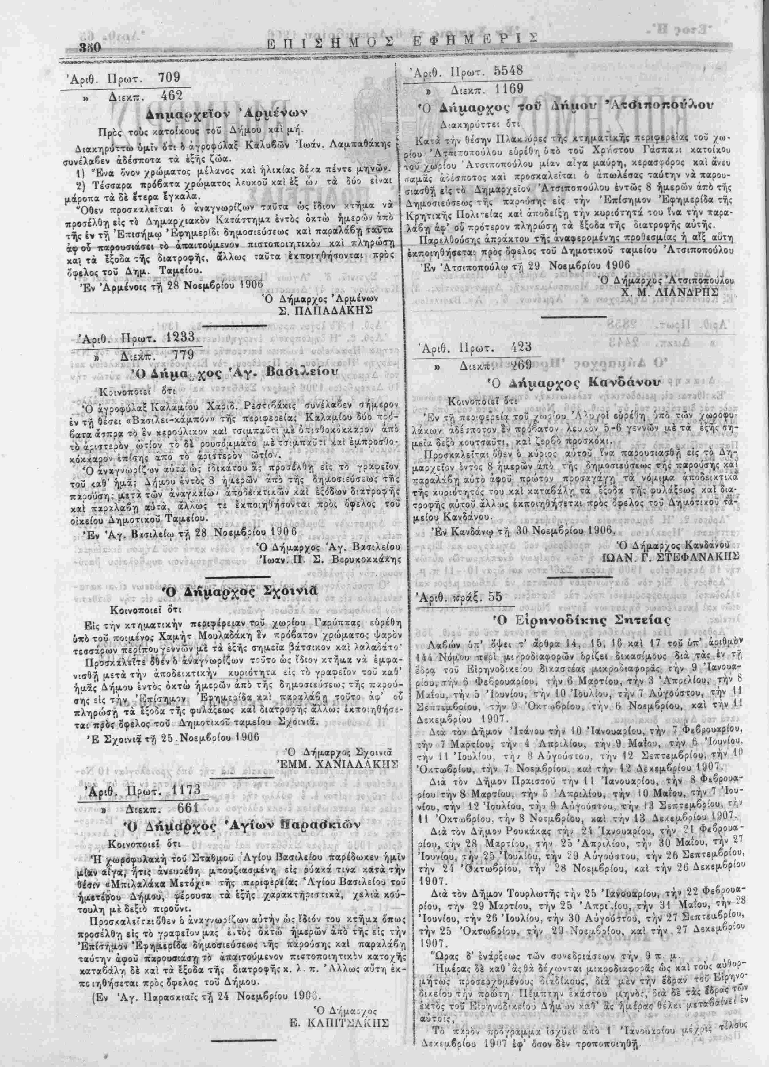 Έξ Κοΐνθποιήσει; Δημάρχων α'. Άρμένων, β'. Αγ.'~