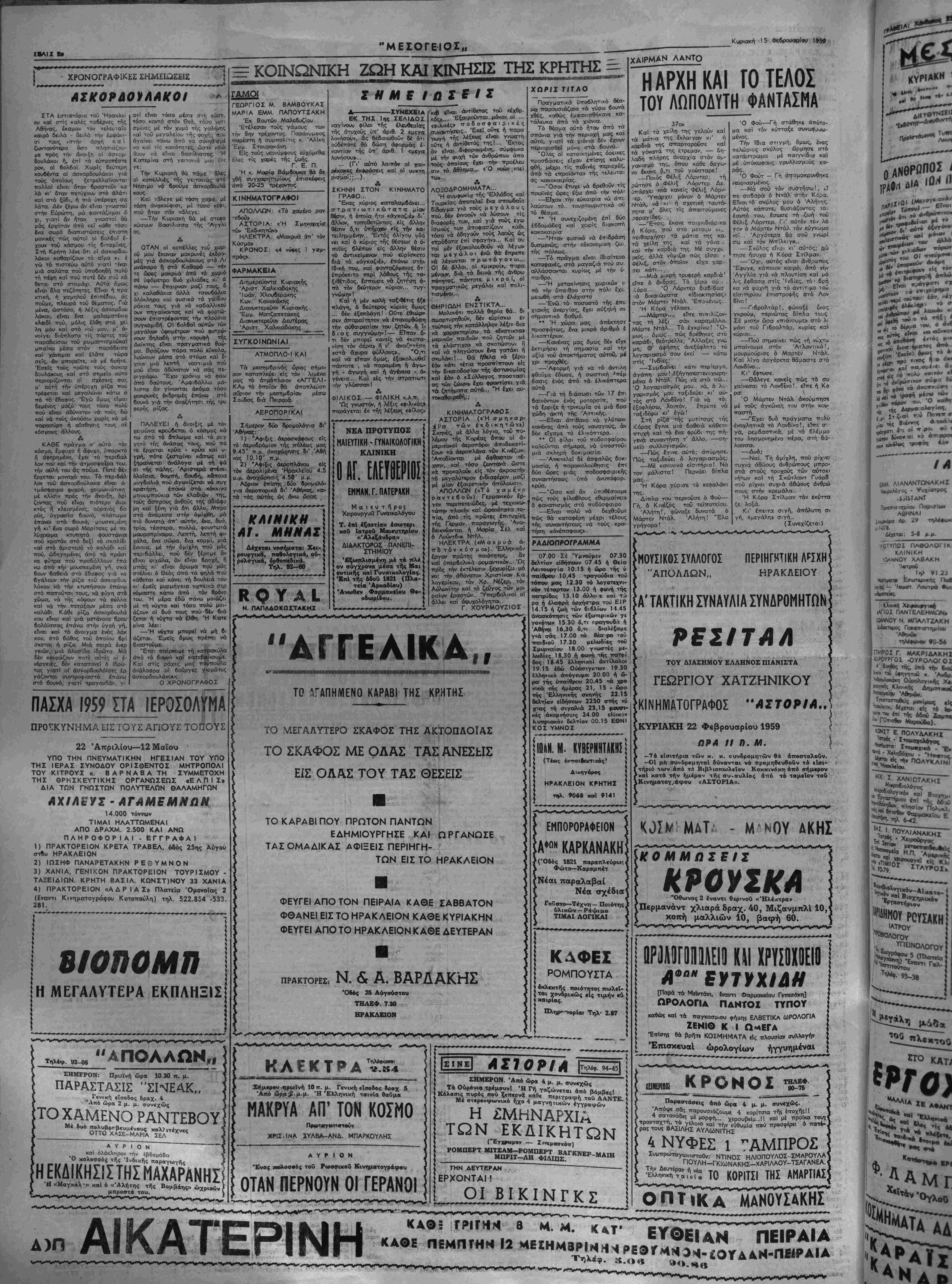 ΚΥΡΙΑΚΗ 15 Φ)ΡΟΥαΡΙΟΥ 1959