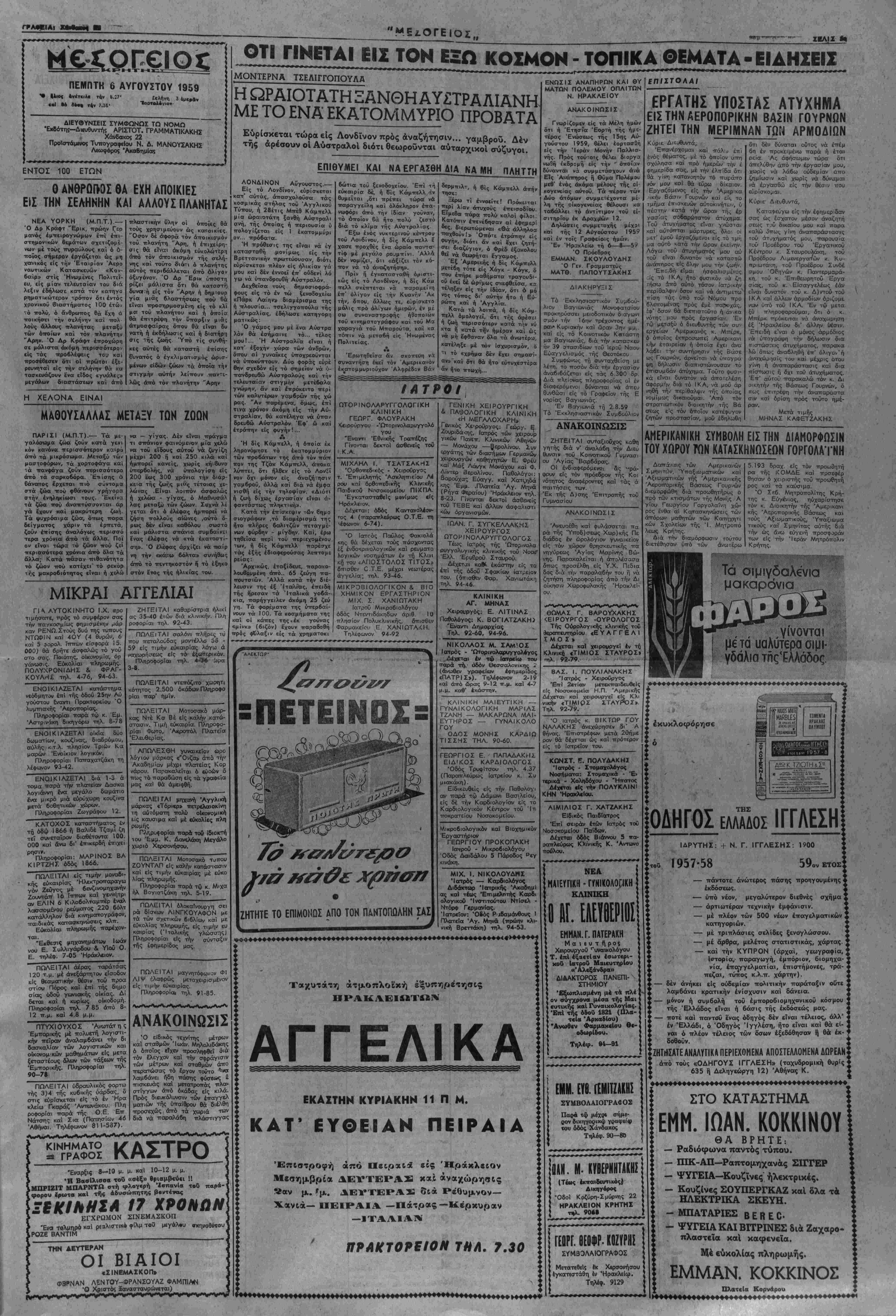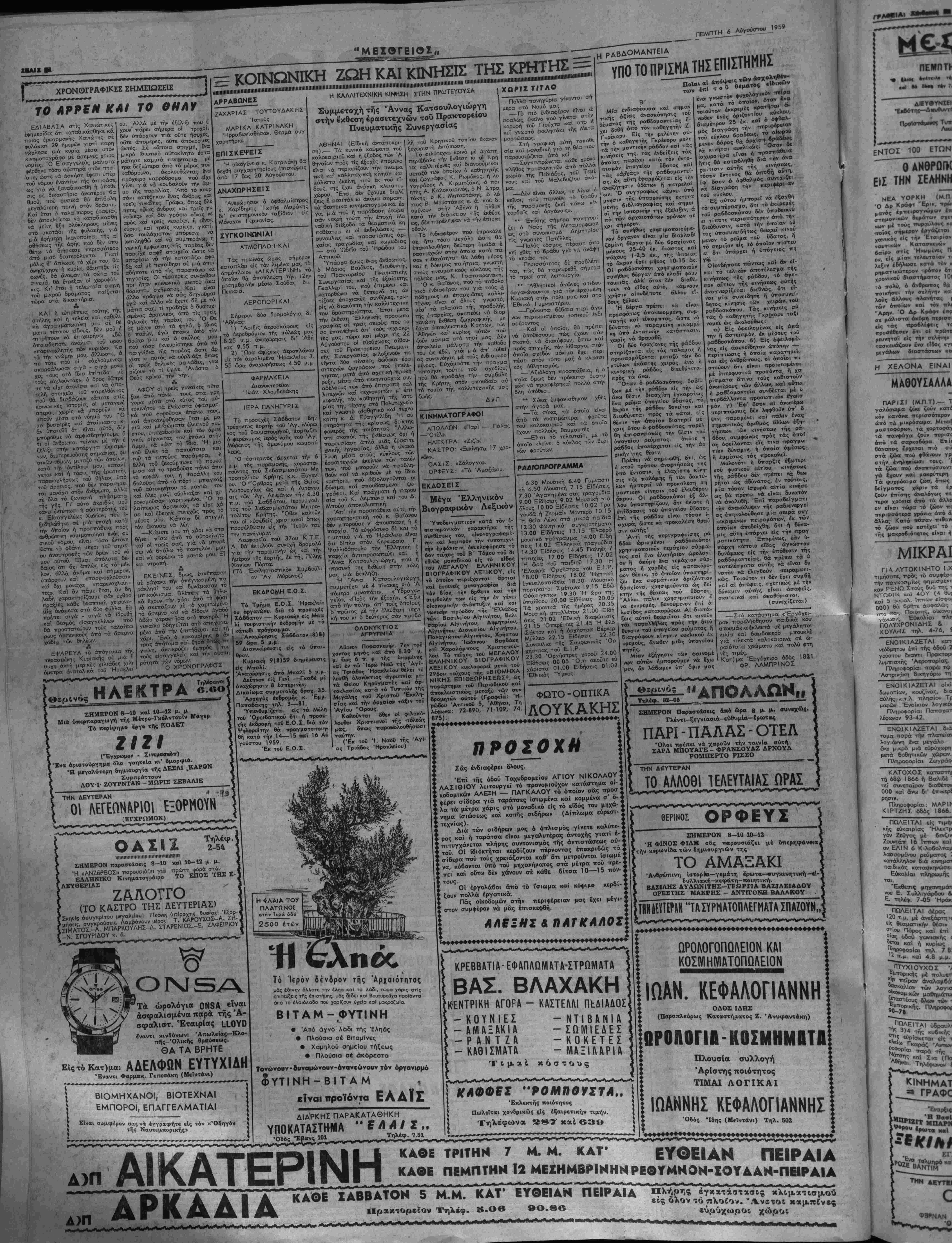 = ΠΕΜΠΤΗ 6 ΑΥΓΟΥΣΤΟΥ 1959 =-