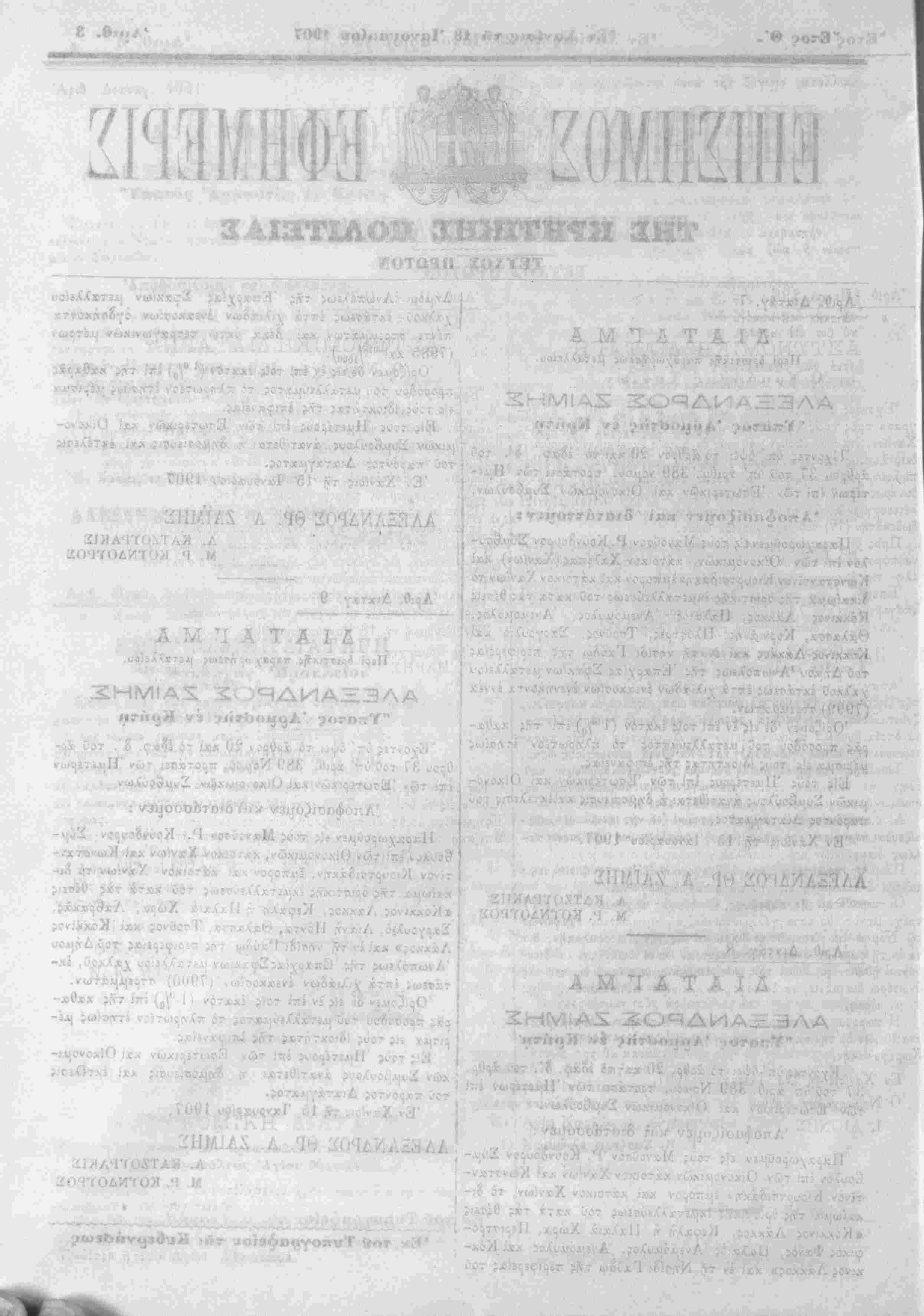 Χανίοις τΛ 18 Ίανοναο.ον 1907
