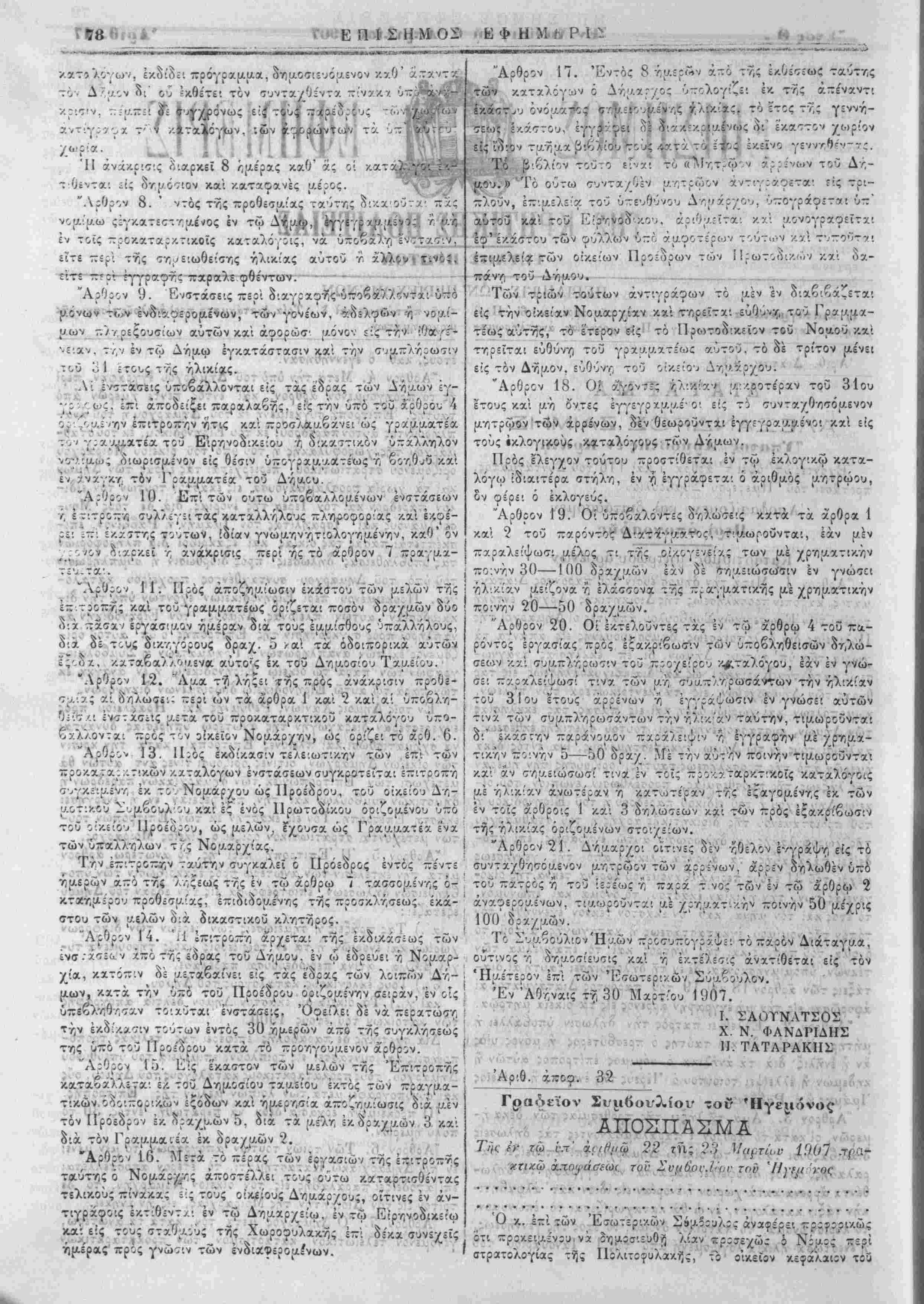"Αρθρον 4. Μετά την υπό τοϋ Δημάρχου ^γραφήν, περΐ