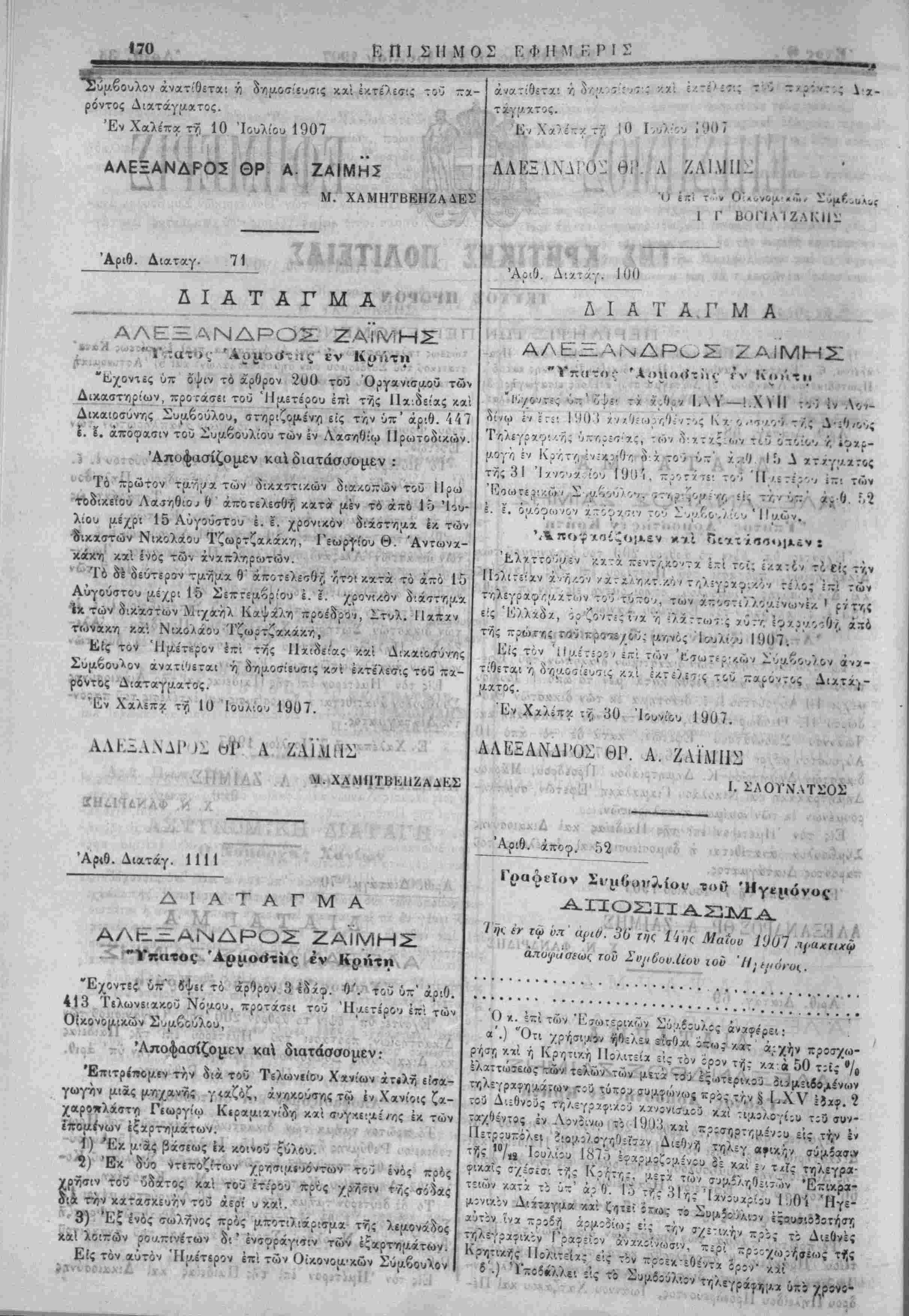 Έν Χανίοις τΛ 14 Ιούλιον 1907