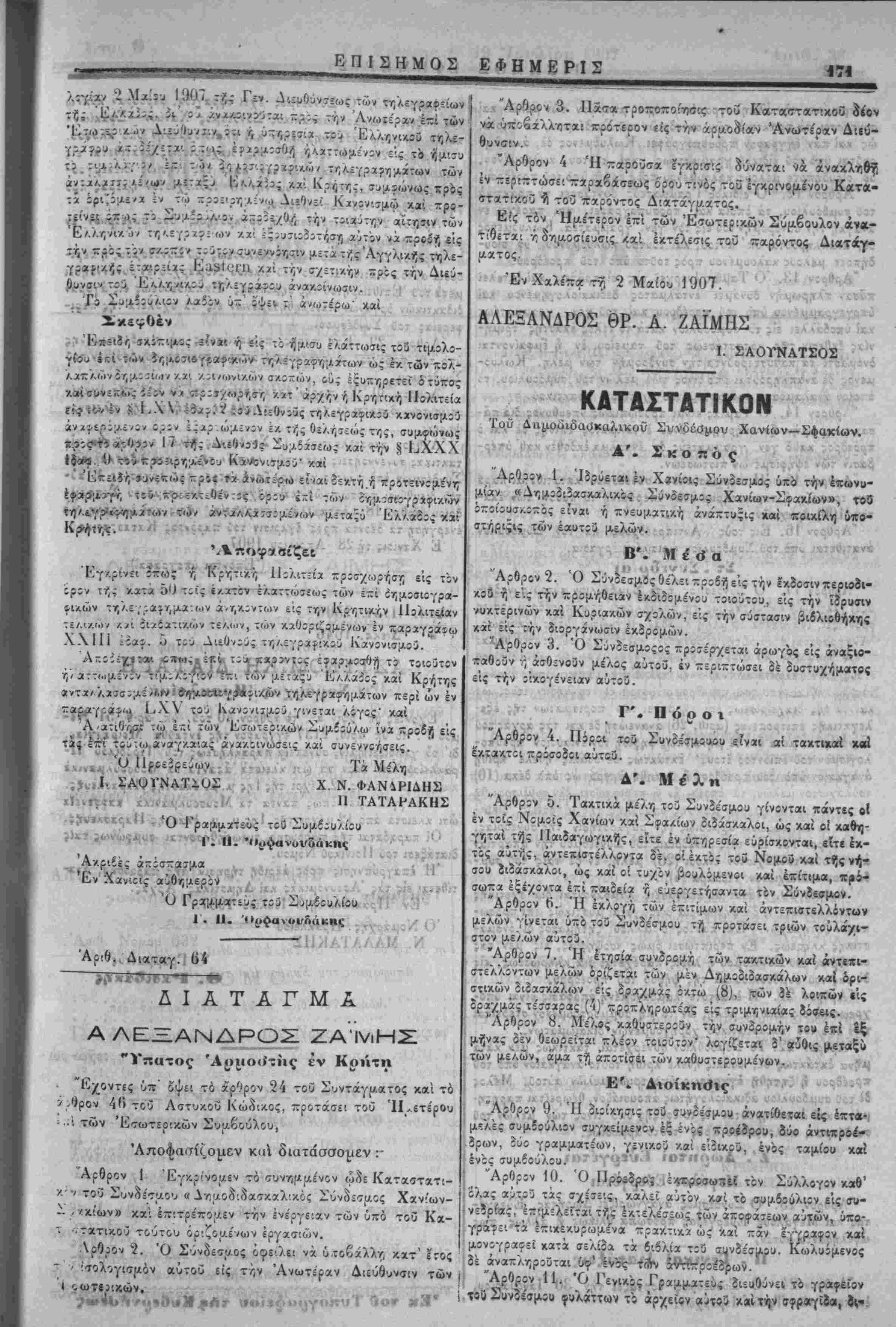 Άρθρον 1 Έγκρ'νοι/Εν τό συνημαε'νον ώδε Καταστατι-