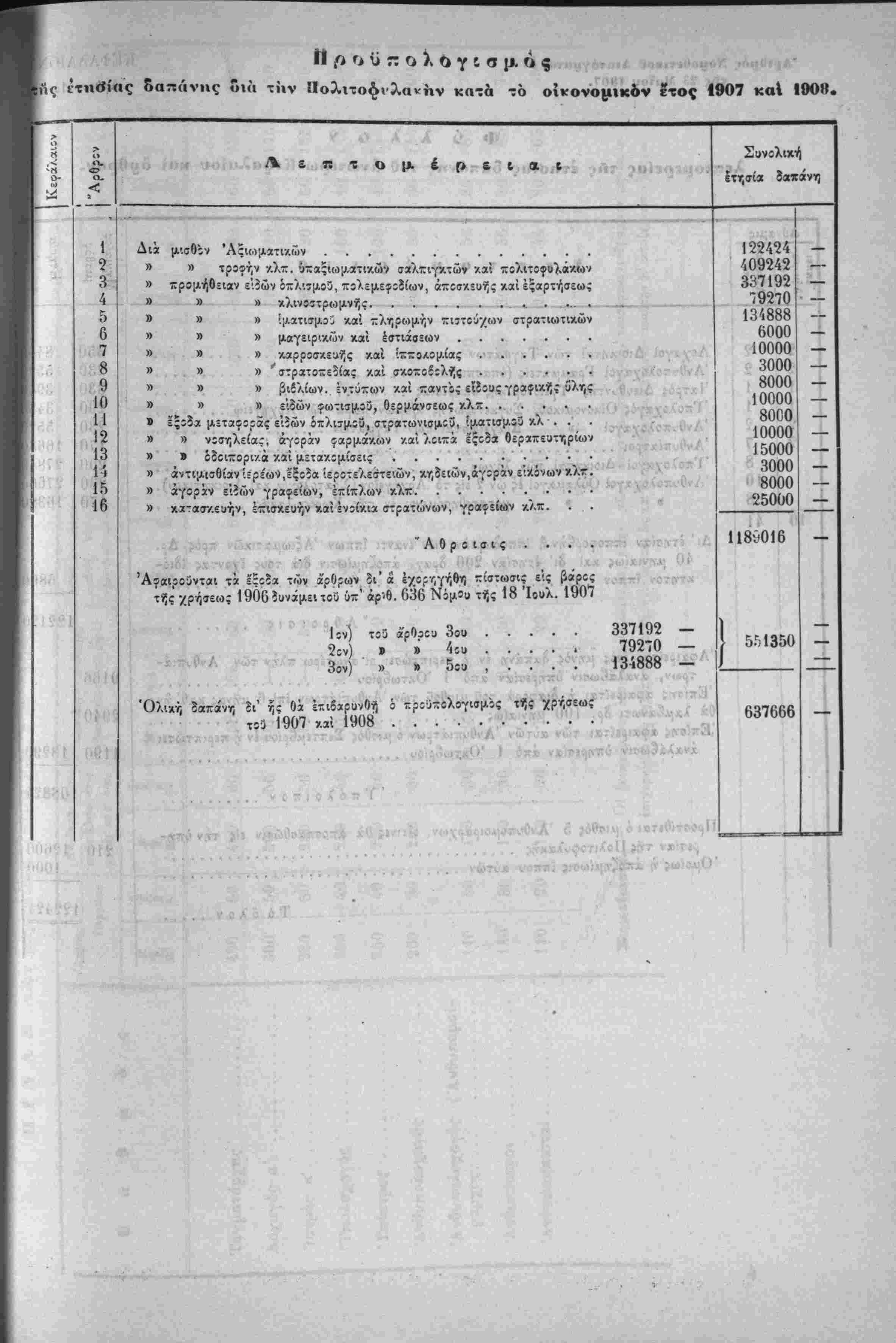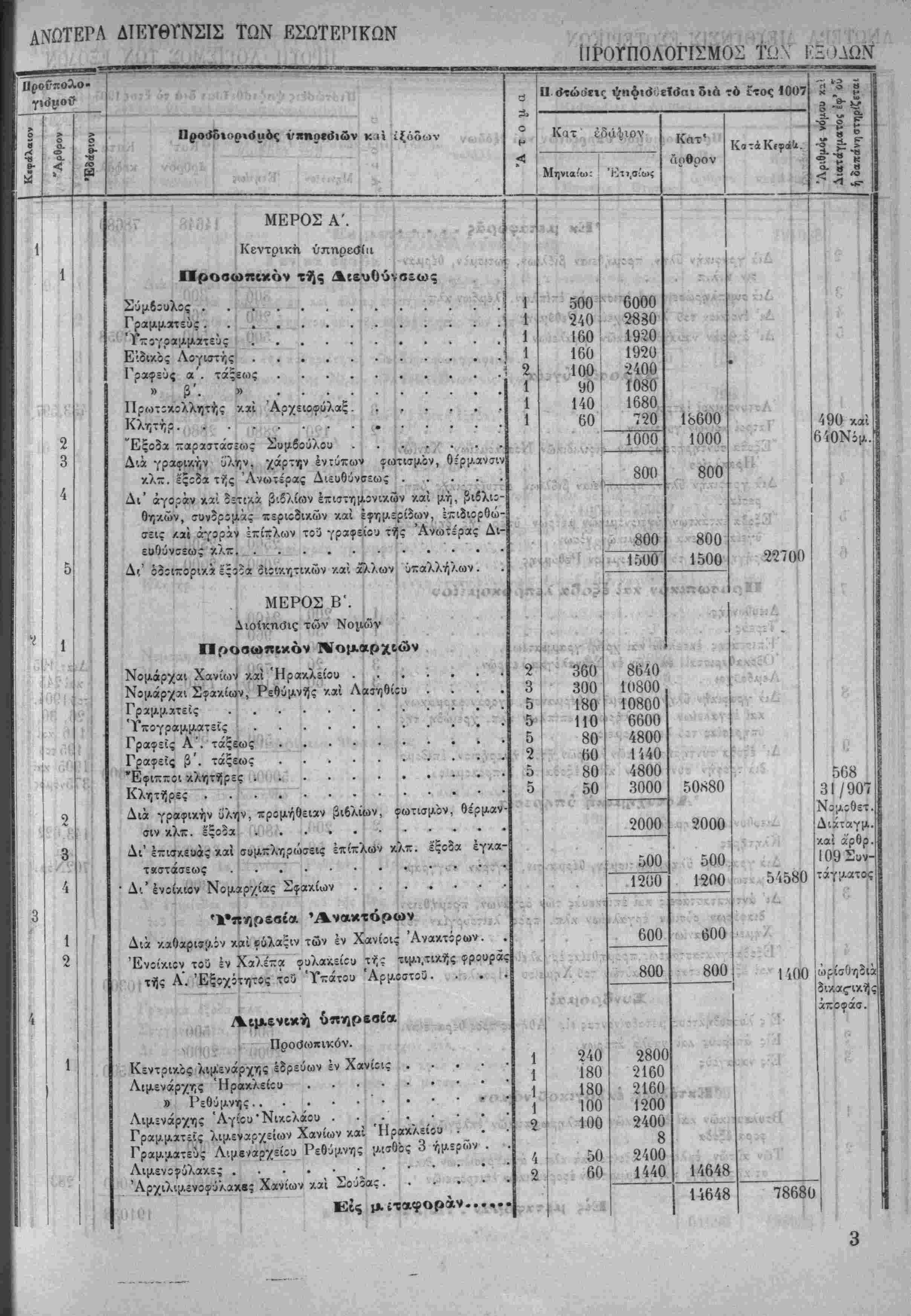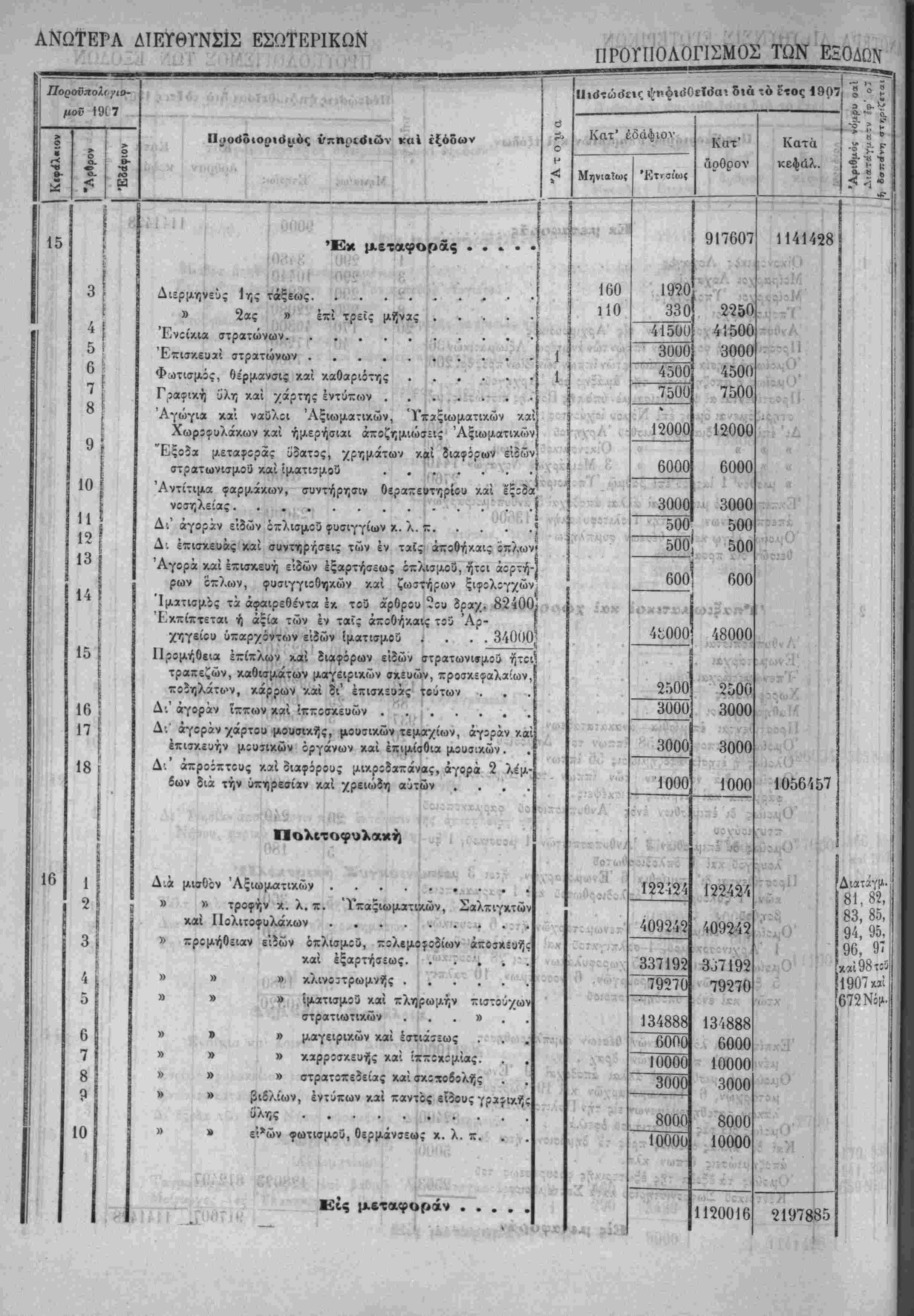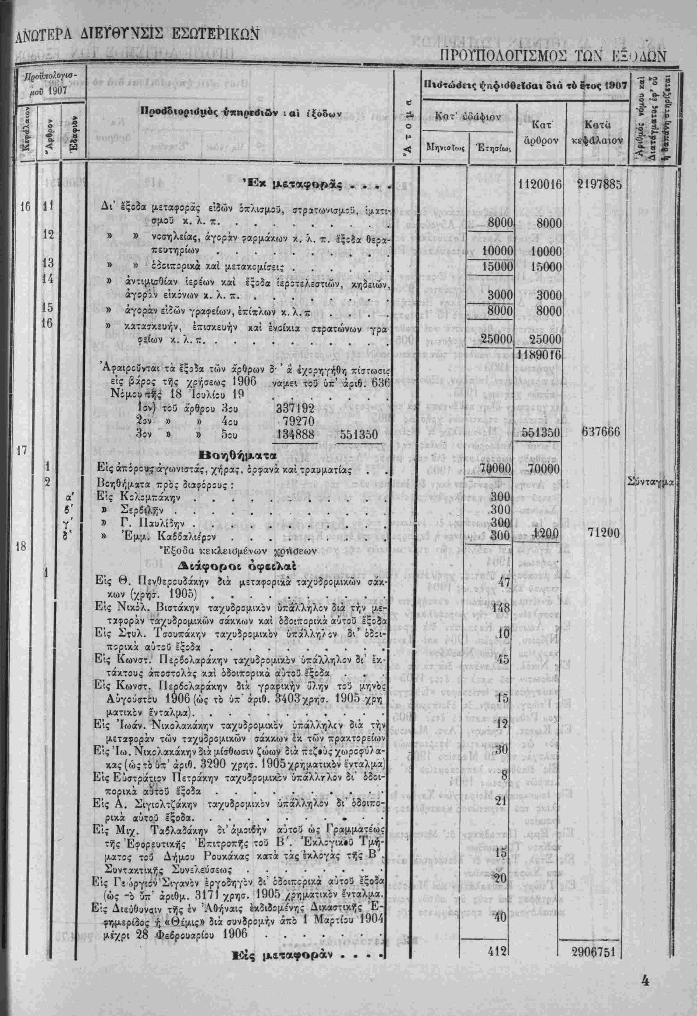 Λ»'~ Ηερί χυίώσεως τού Προΰπολο/ισμοΰ των Έσόδων τής Πολιτείας τ-ής /ρήσεω; τοΰ Ιτους 19Ο7.ί'Τ^·νιν'>"