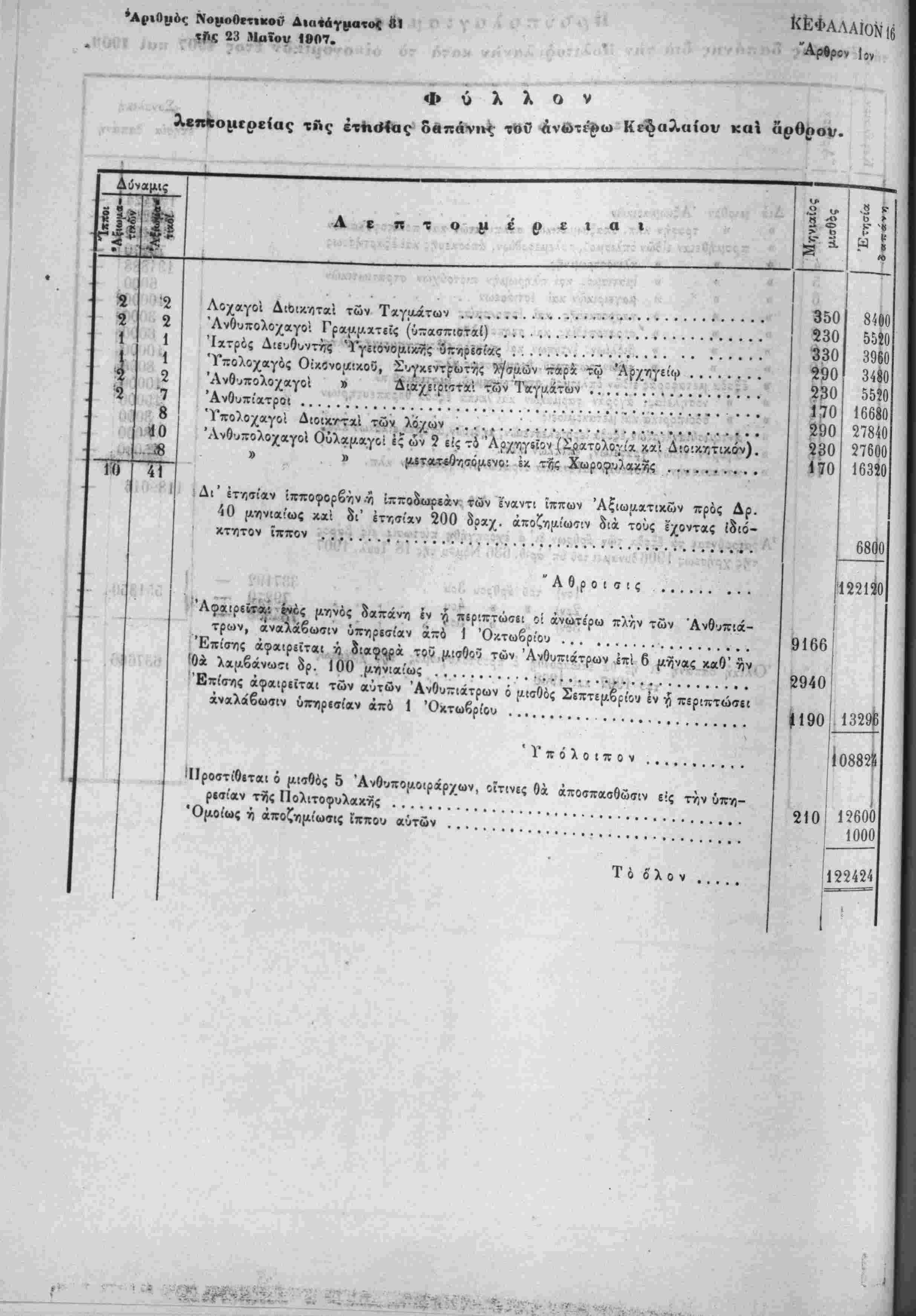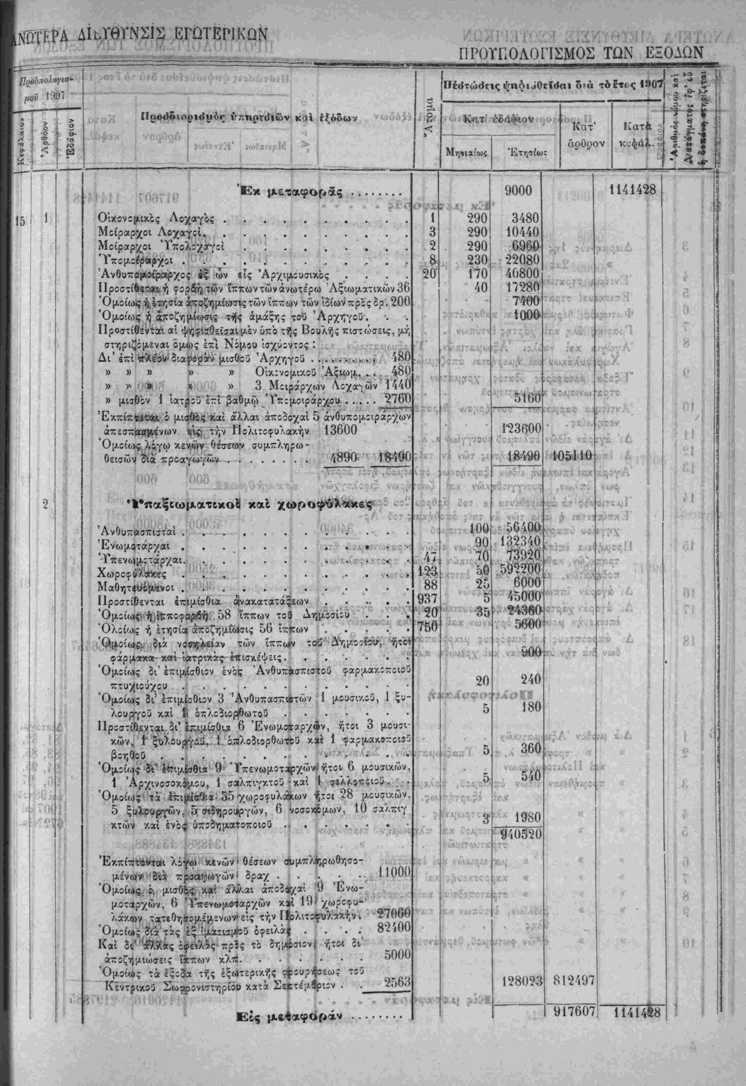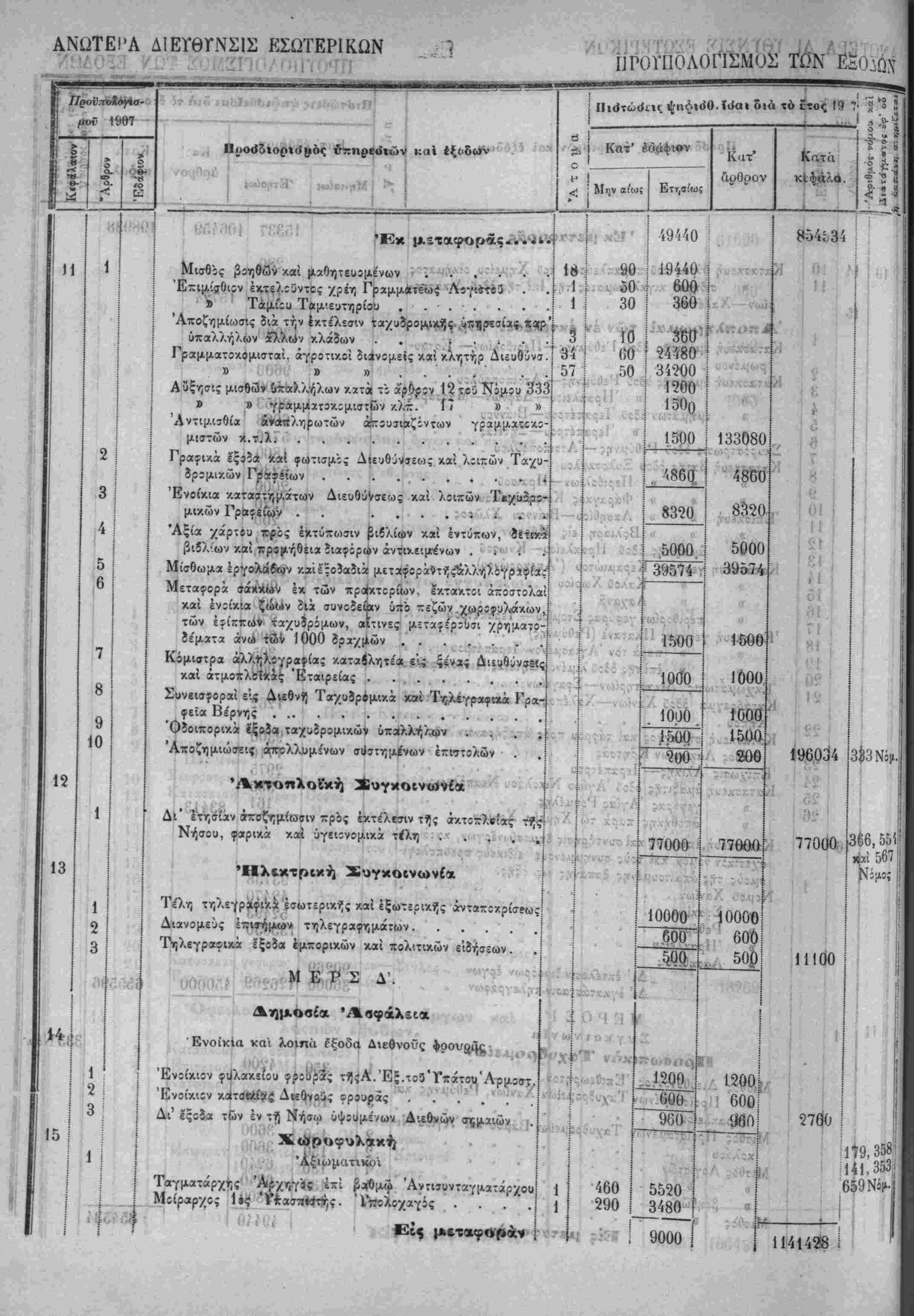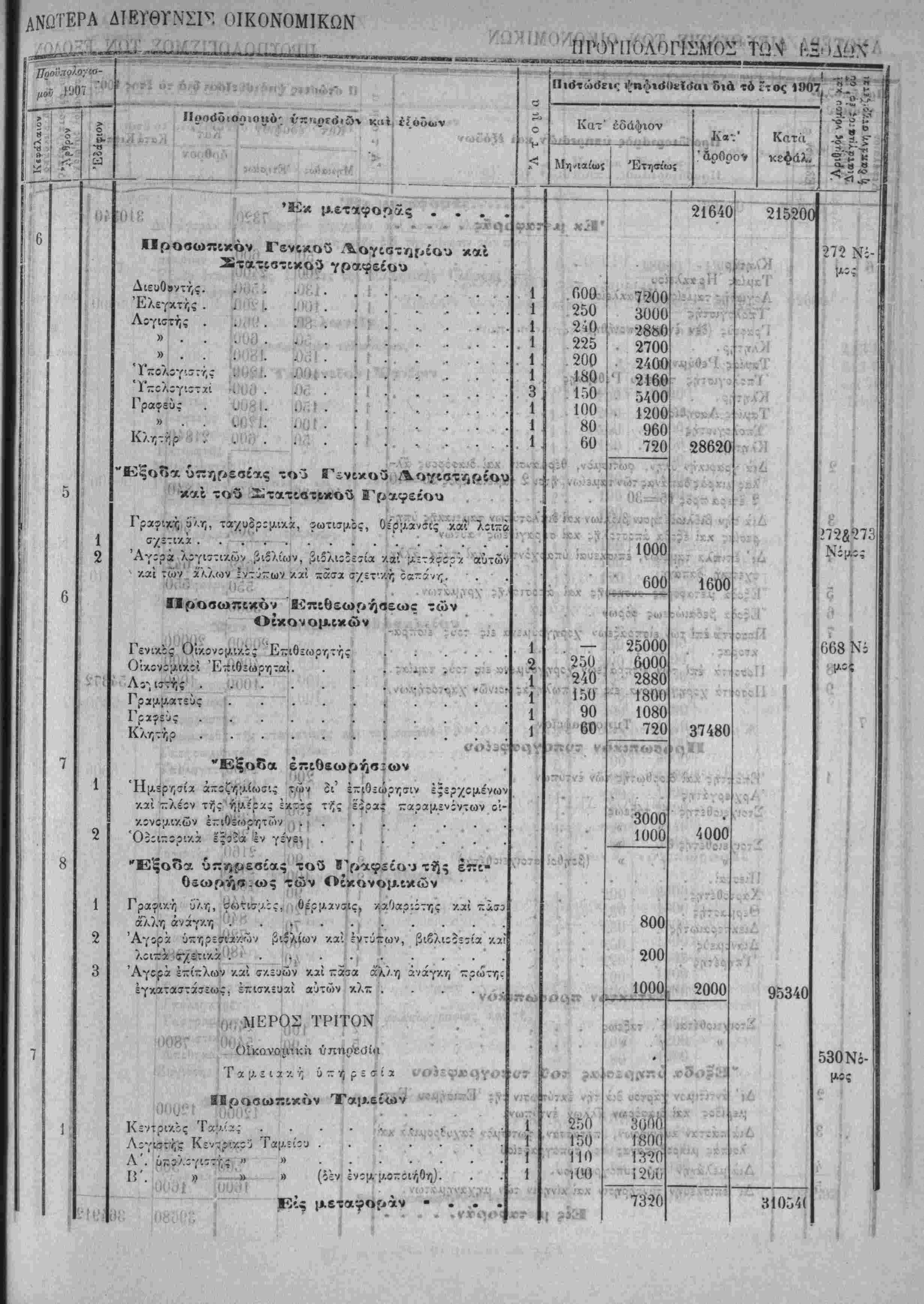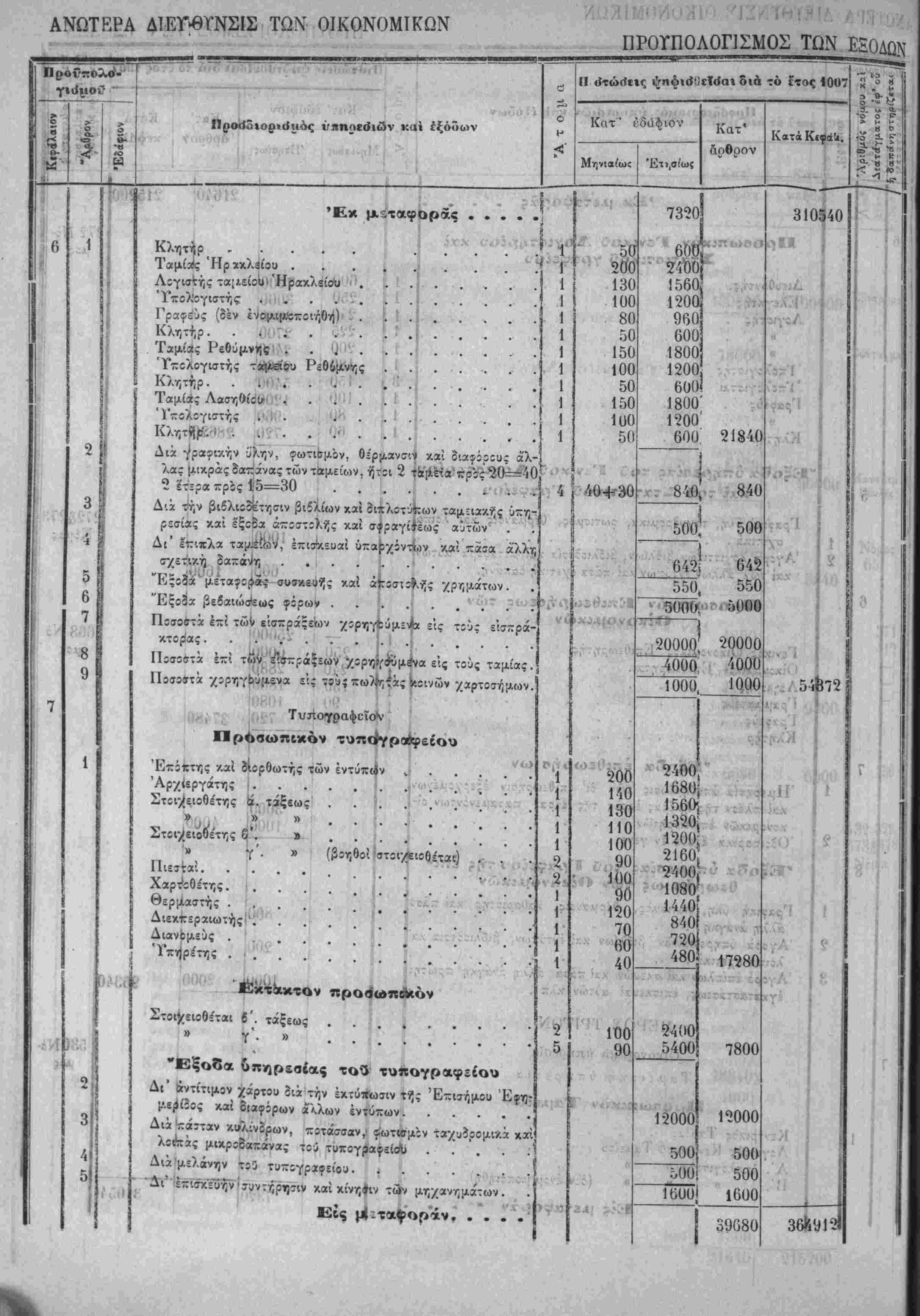 Λ»'~ Ηερί χυίώσεως τού Προΰπολο/ισμοΰ των Έσόδων τής Πολιτείας τ-ής /ρήσεω; τοΰ Ιτους 19Ο7.ί'Τ^·νιν'>"