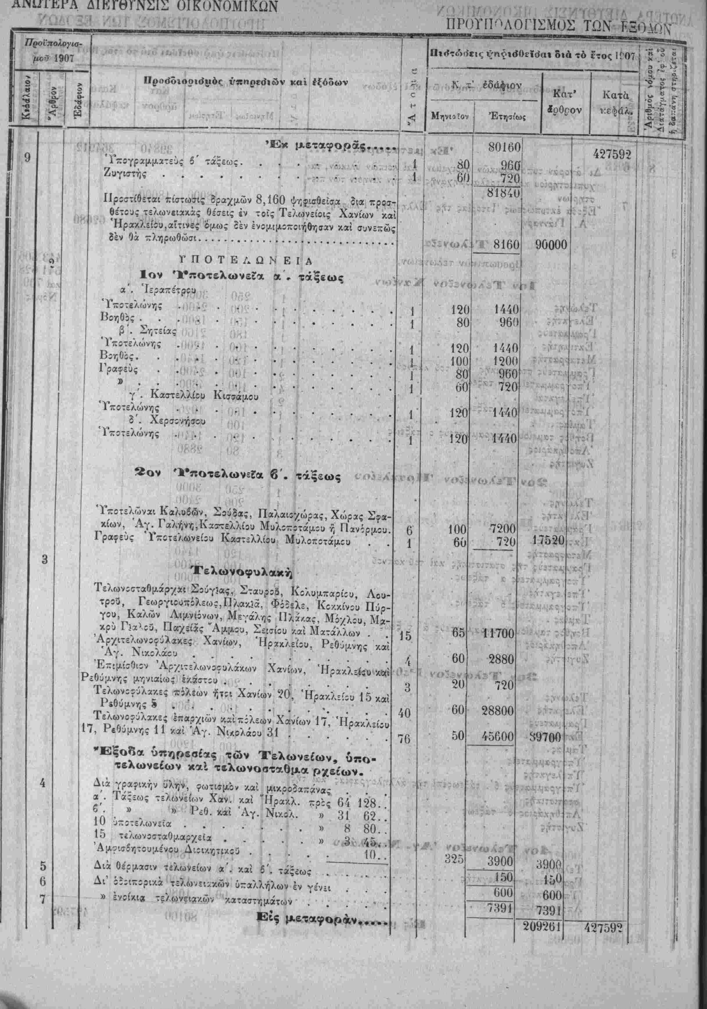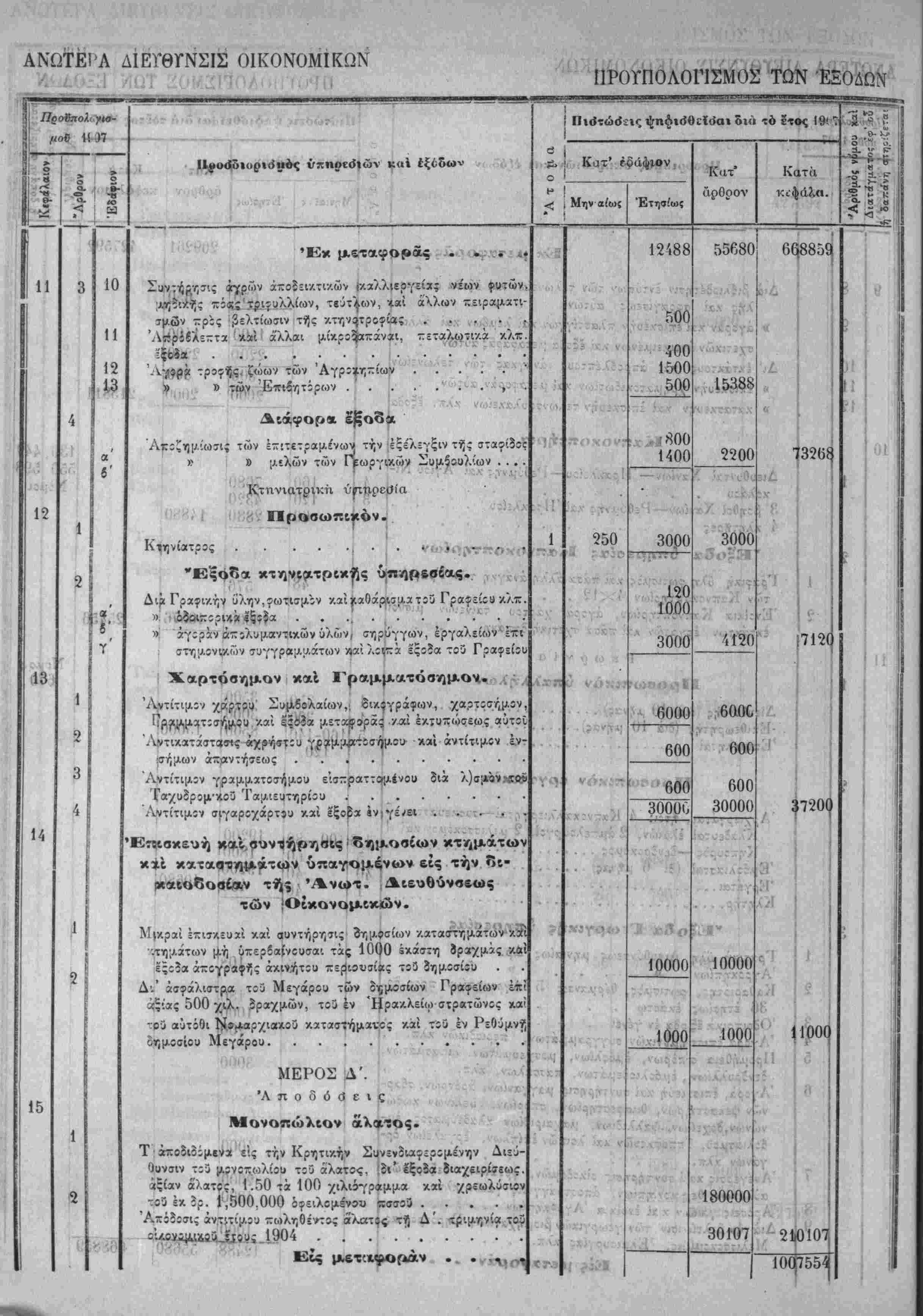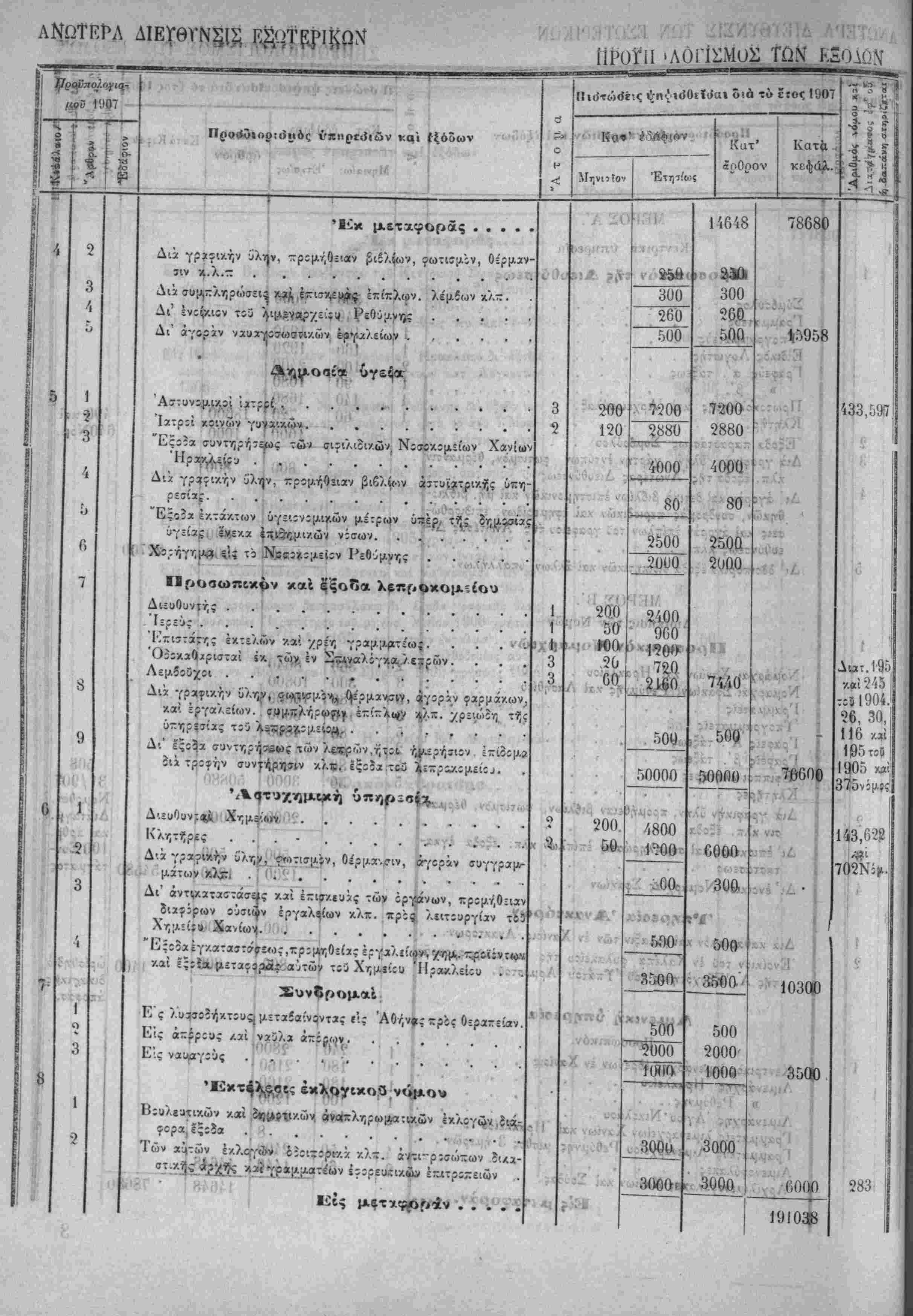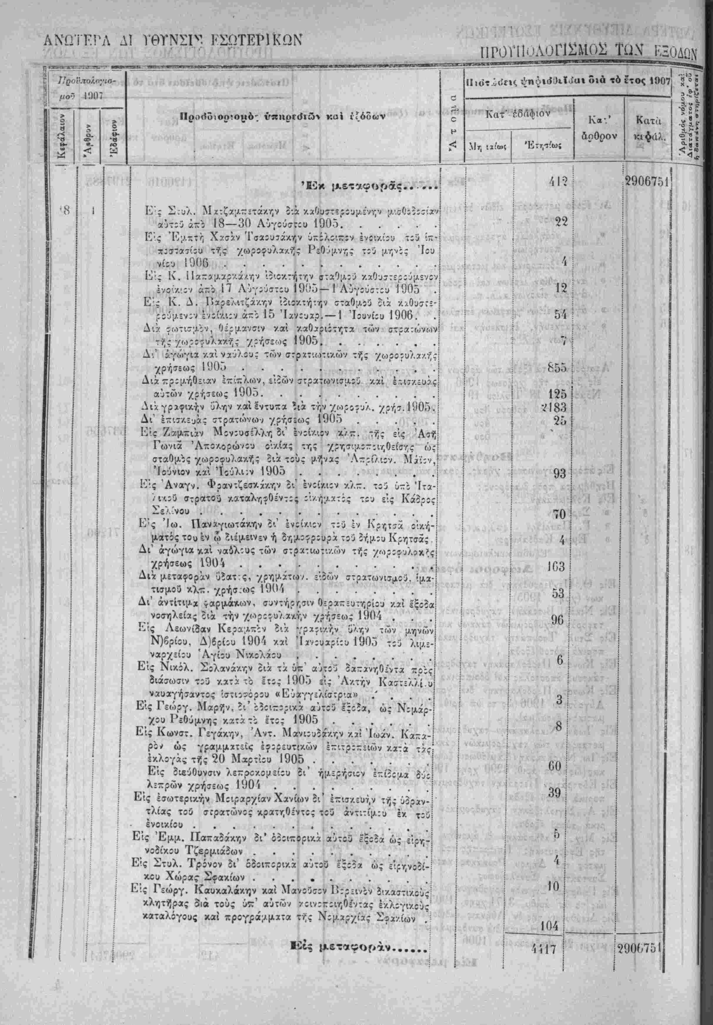 Τα, "ίί«Ιοδα της Κρητικης ΙΙολιτίίας όρίζοντχι διά την χρήσιν τοΰ ετους 1907 εις δραχμάς -έντε έΛατομμυρια