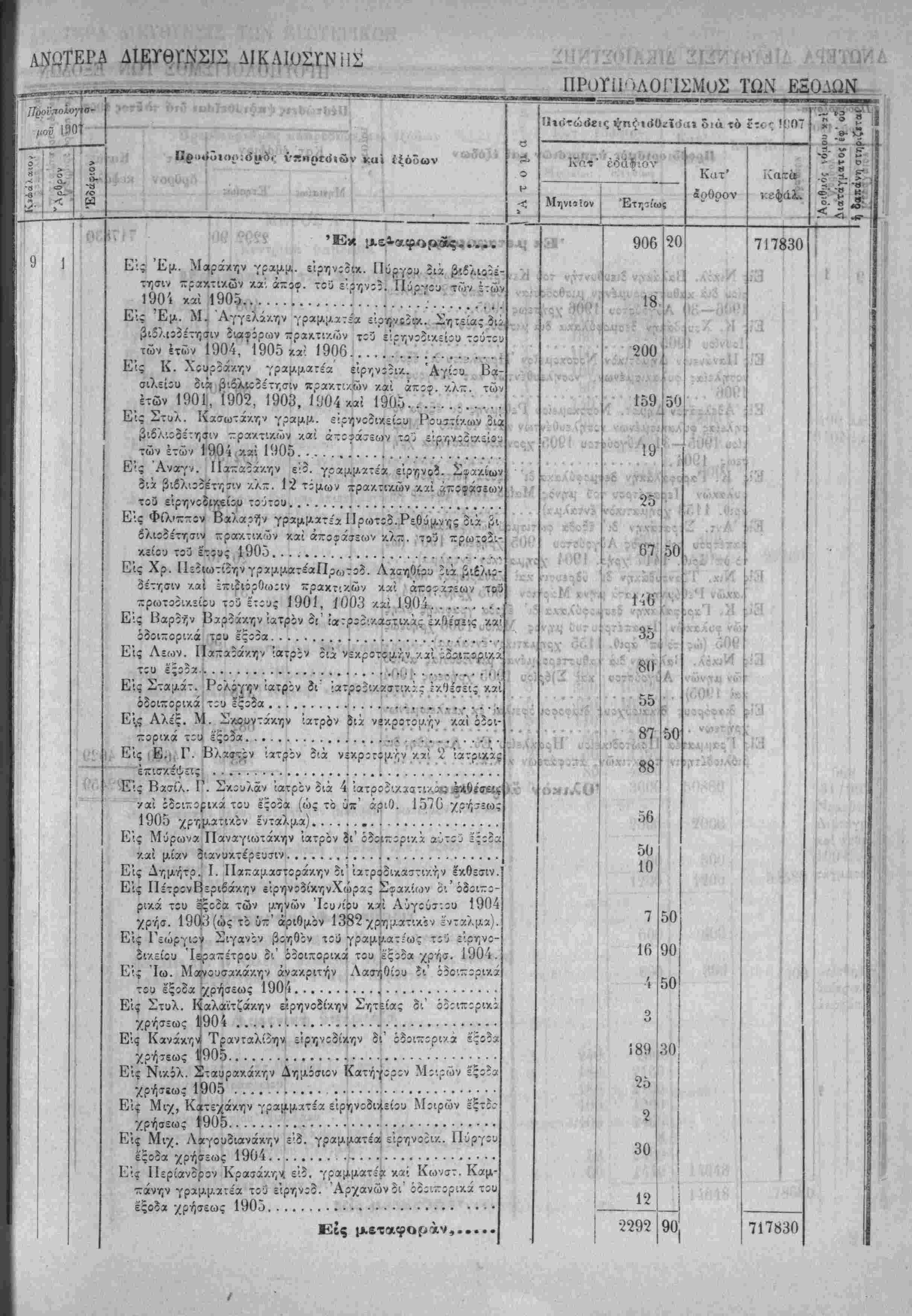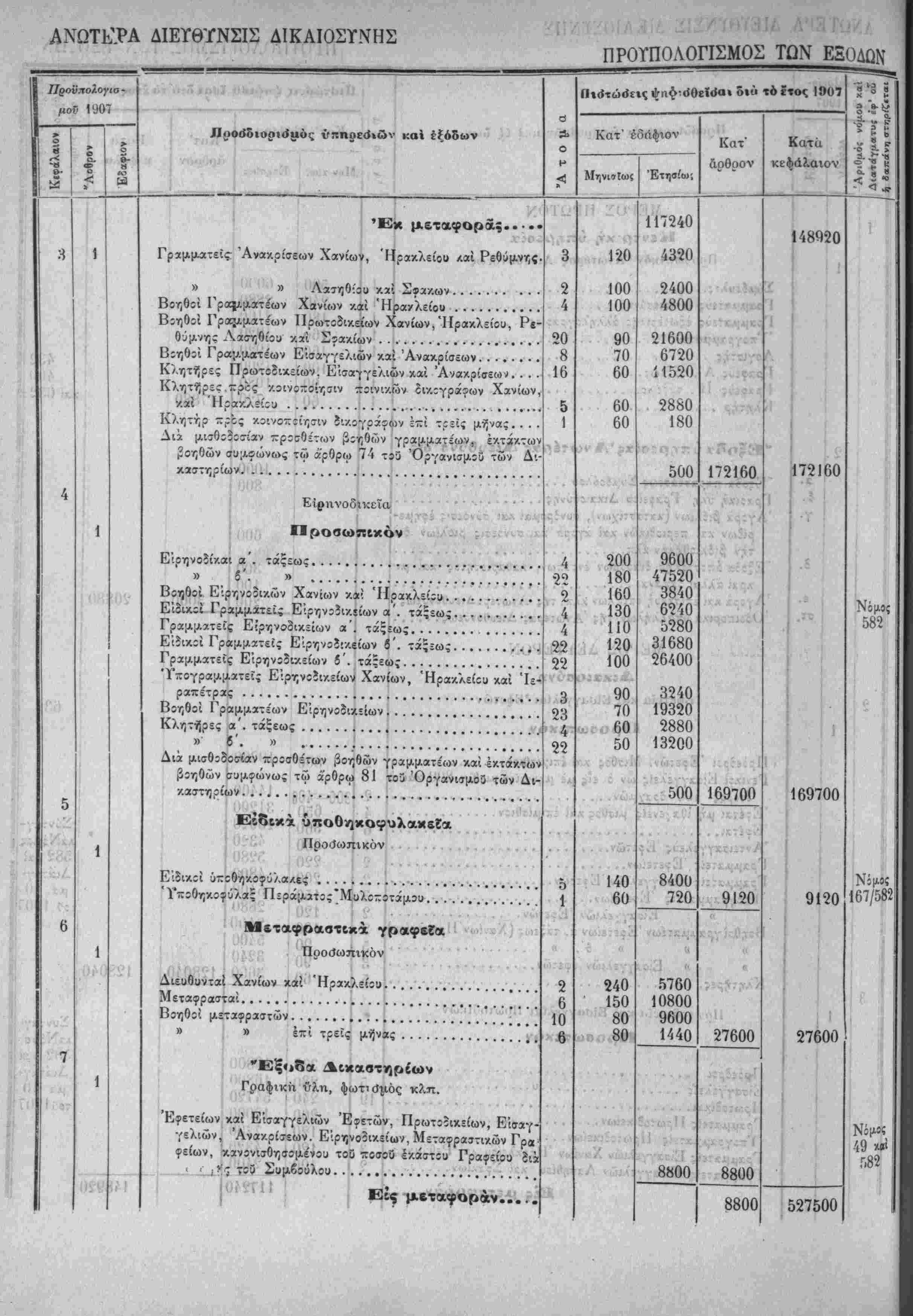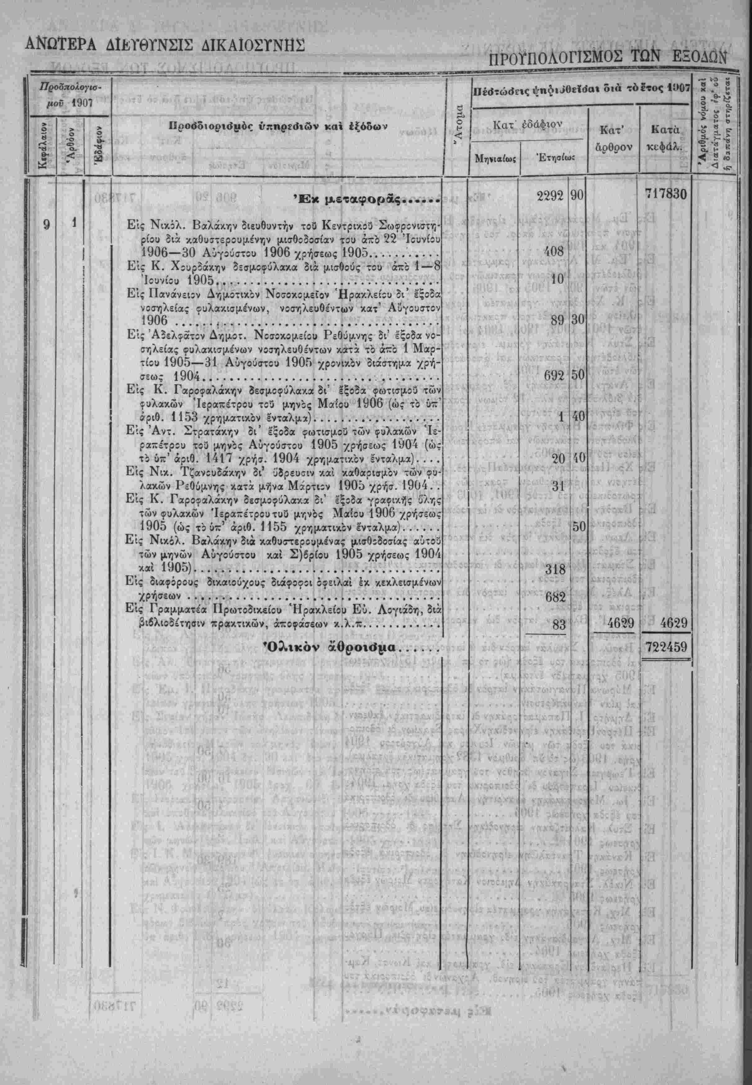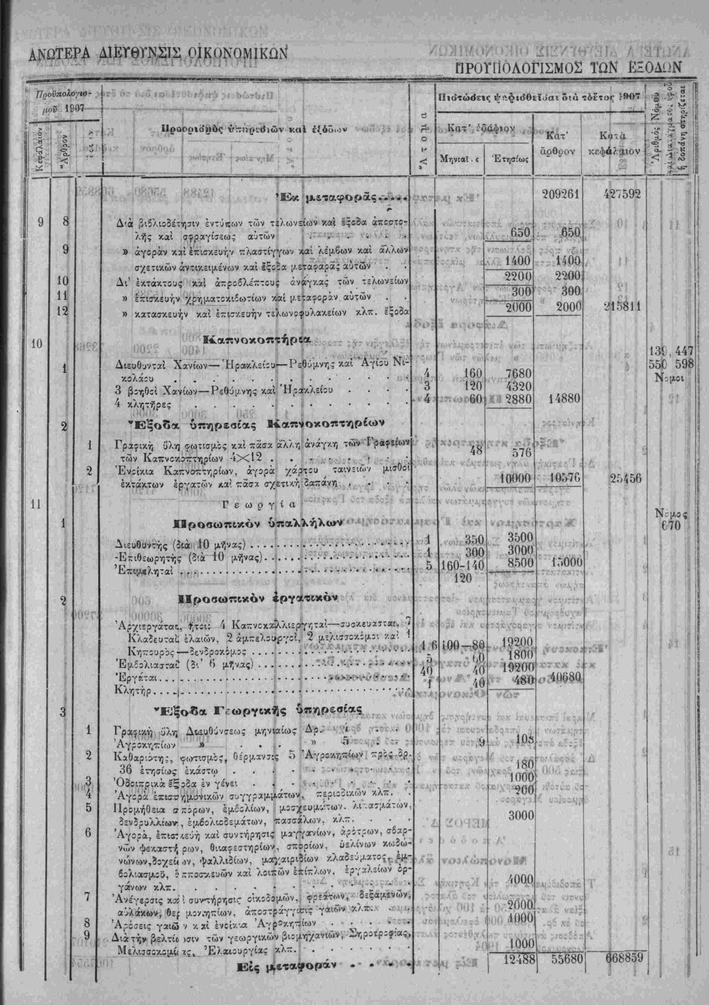 Τα, "ίί«Ιοδα της Κρητικης ΙΙολιτίίας όρίζοντχι διά την χρήσιν τοΰ ετους 1907 εις δραχμάς -έντε έΛατομμυρια