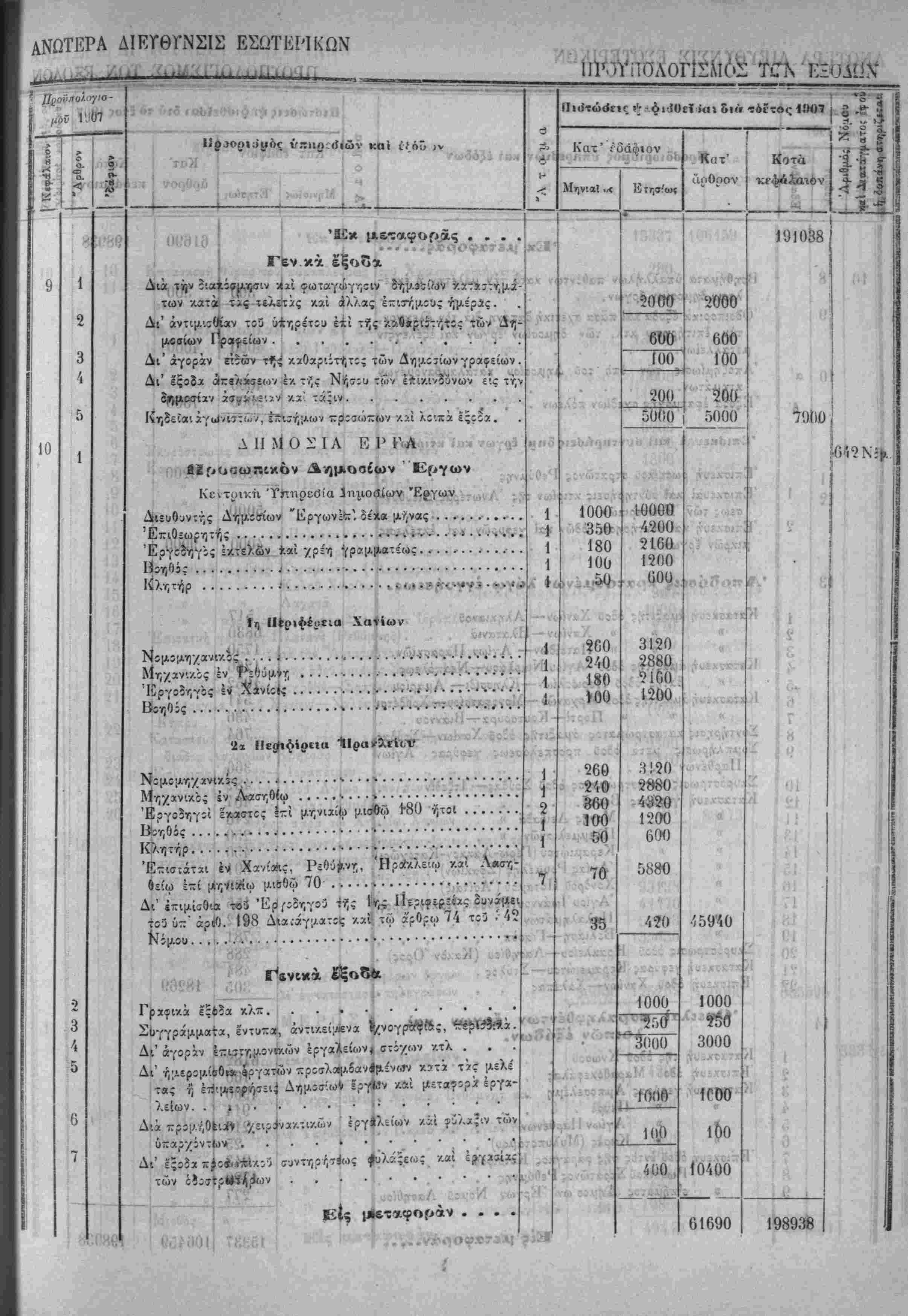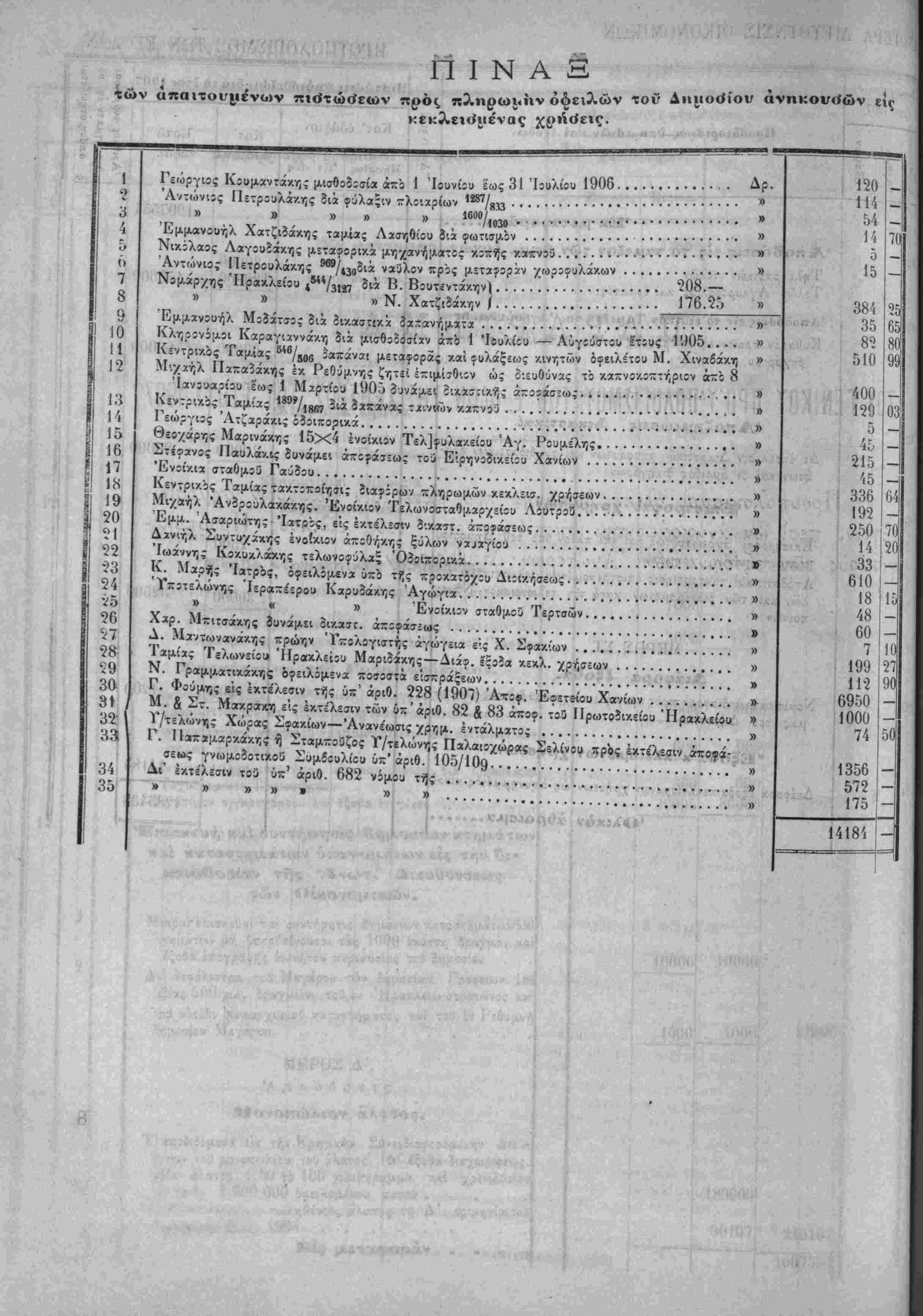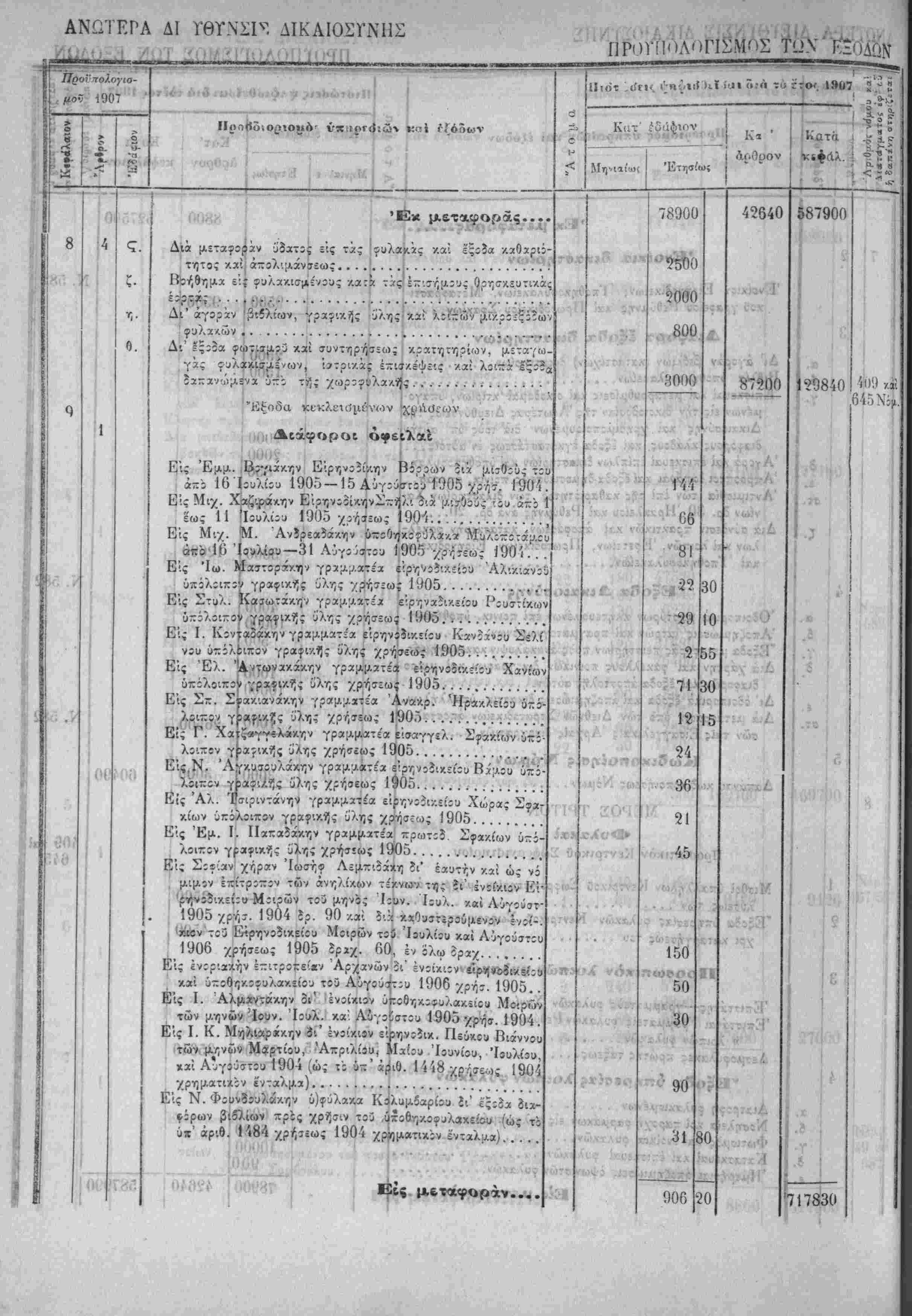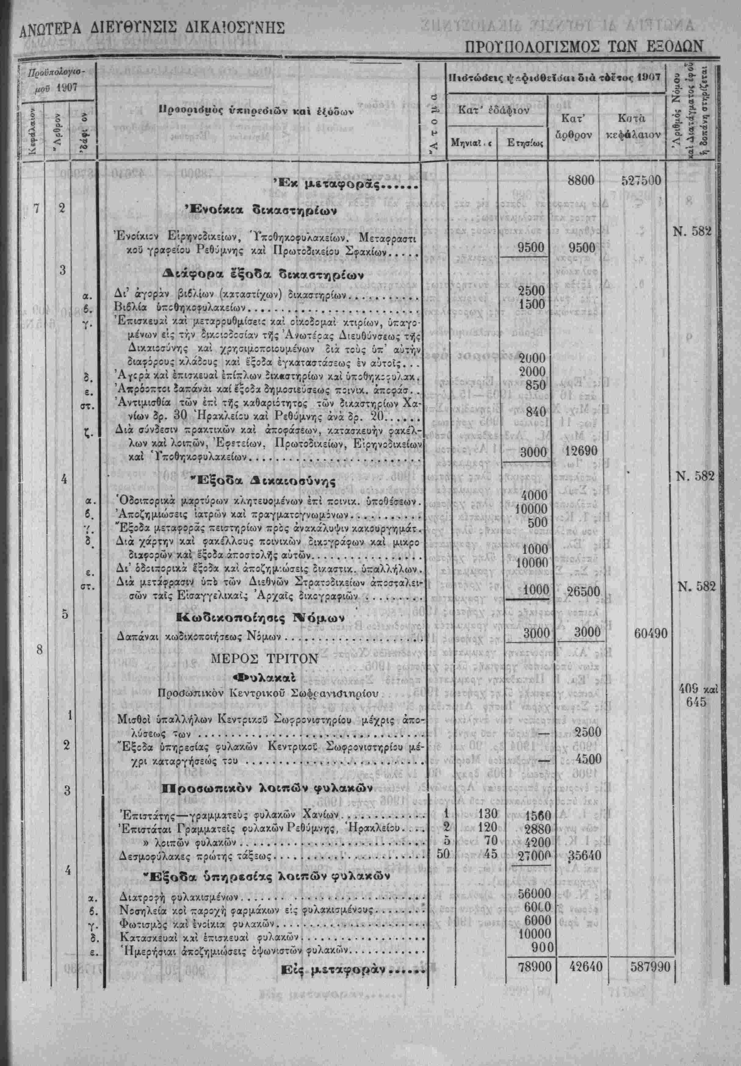 Τα, "ίί«Ιοδα της Κρητικης ΙΙολιτίίας όρίζοντχι διά την χρήσιν τοΰ ετους 1907 εις δραχμάς -έντε έΛατομμυρια