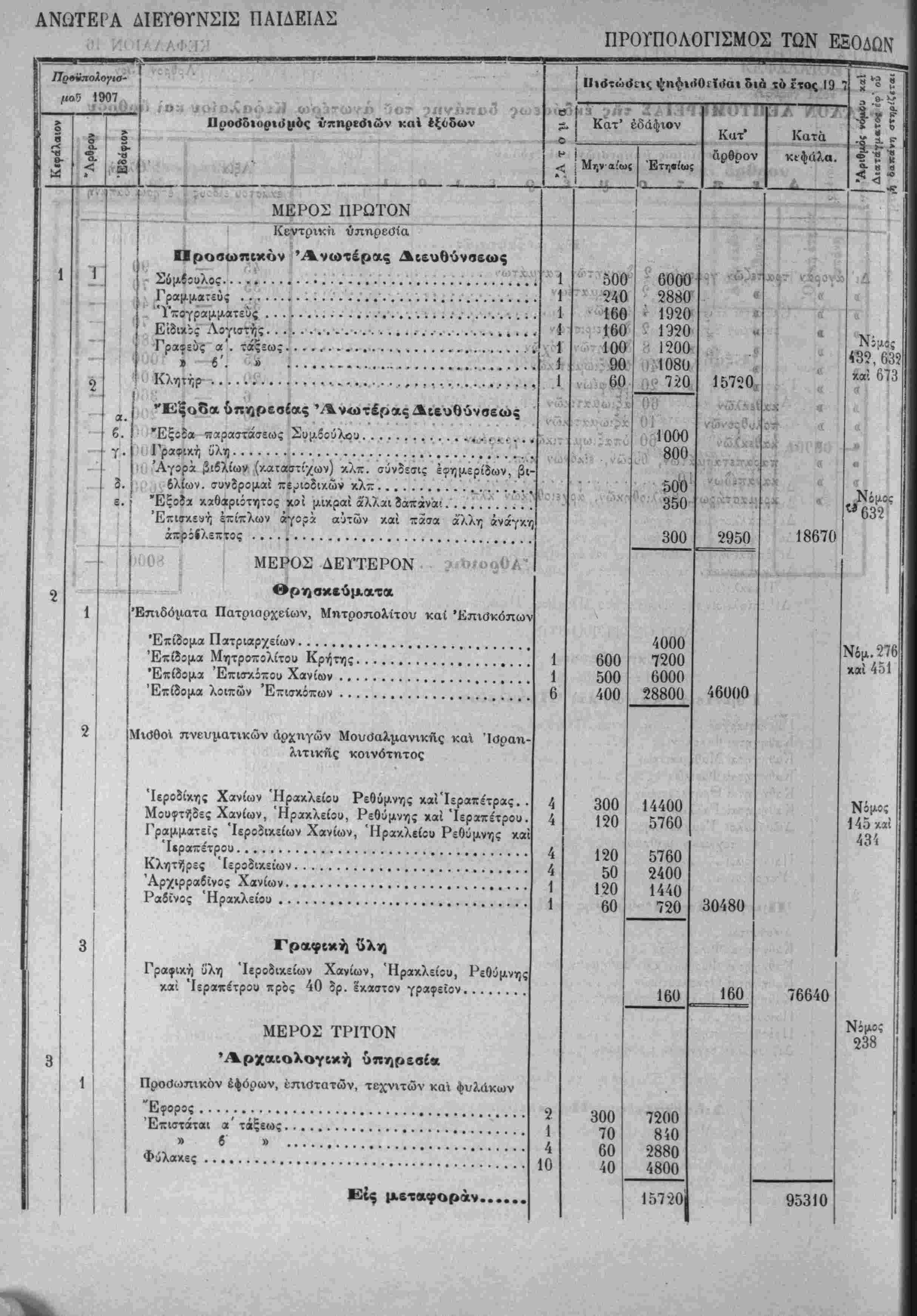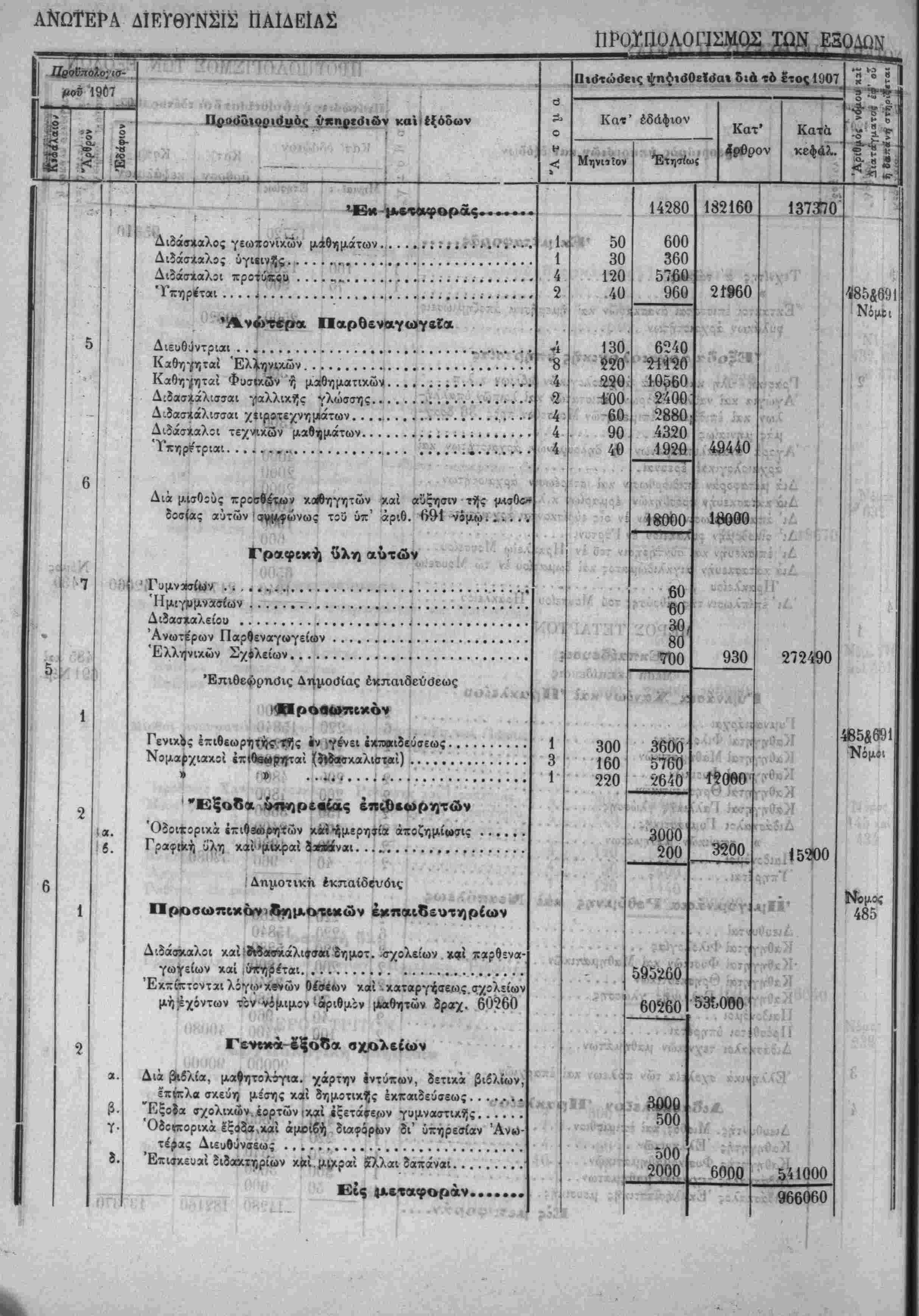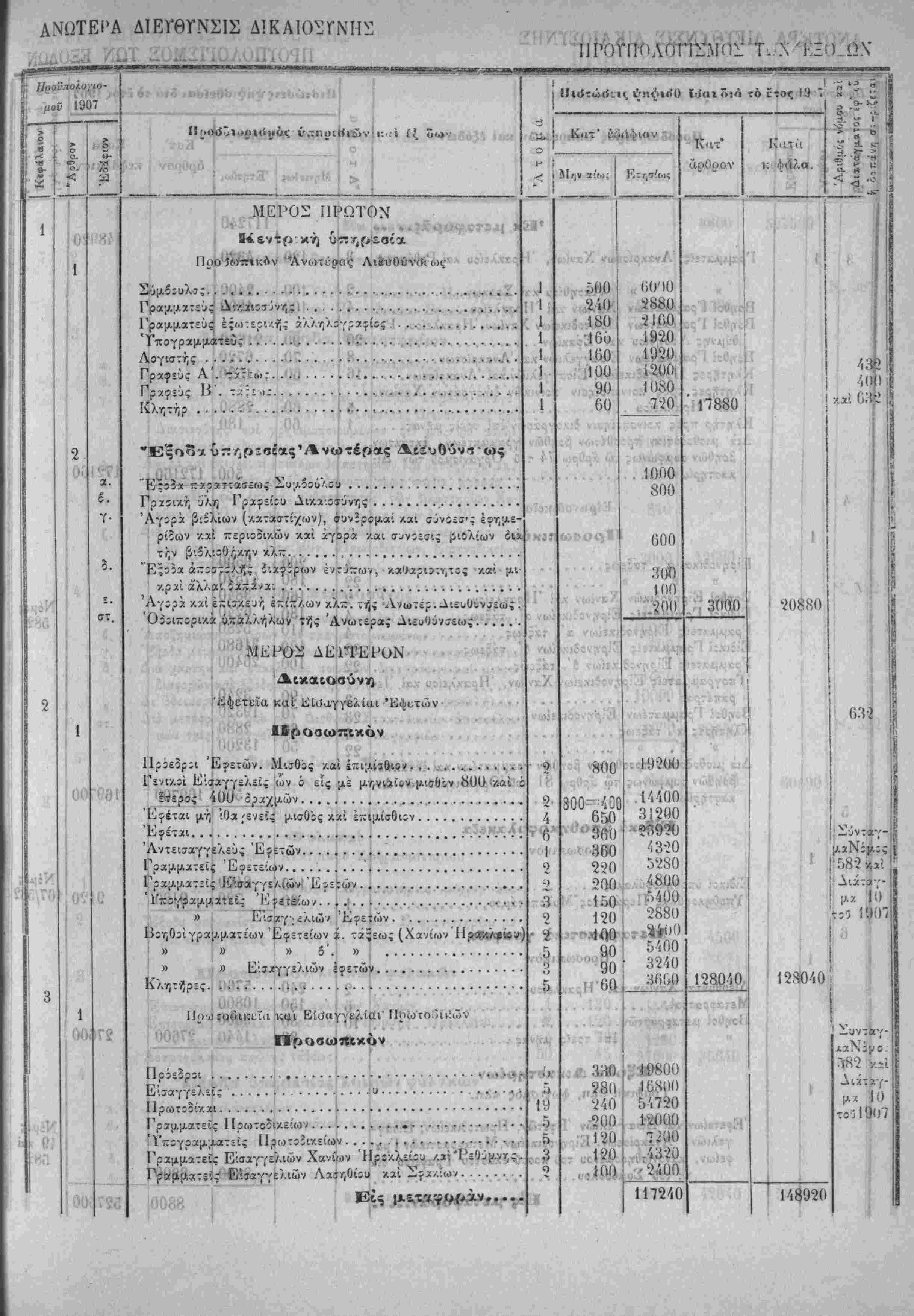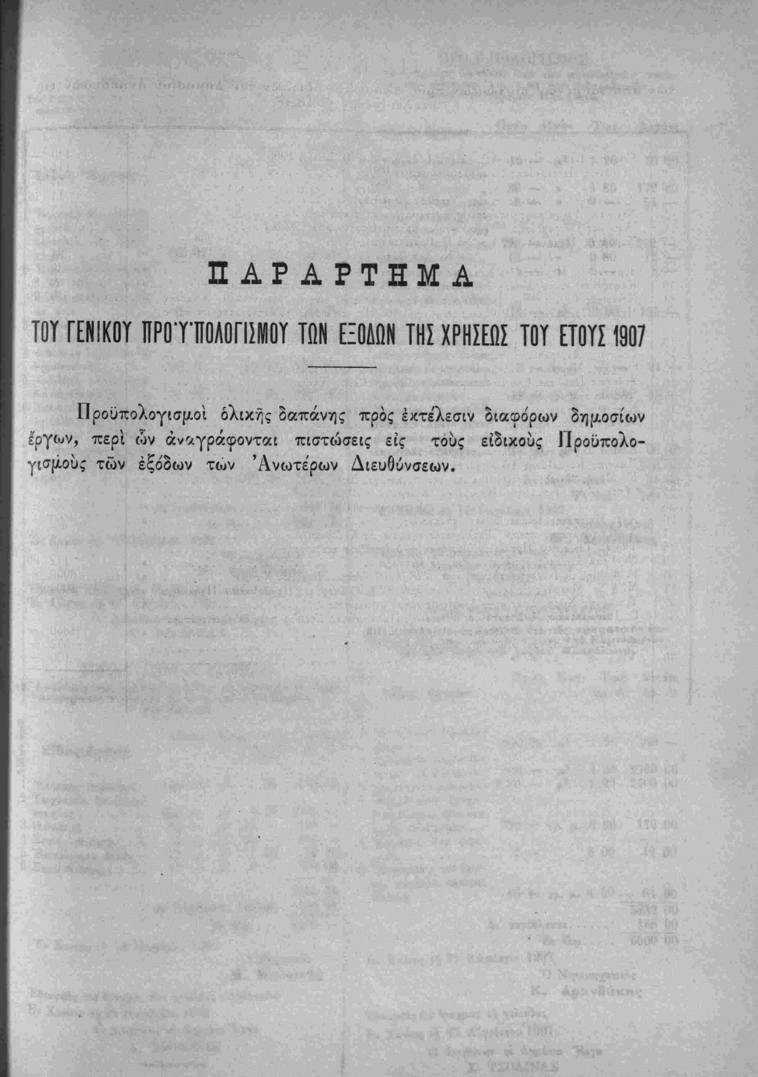 γων τοίς έν παραρτήματι τοϋ Γενίκοΰ Προϋπολογισμϊϋ δημοσιευο-