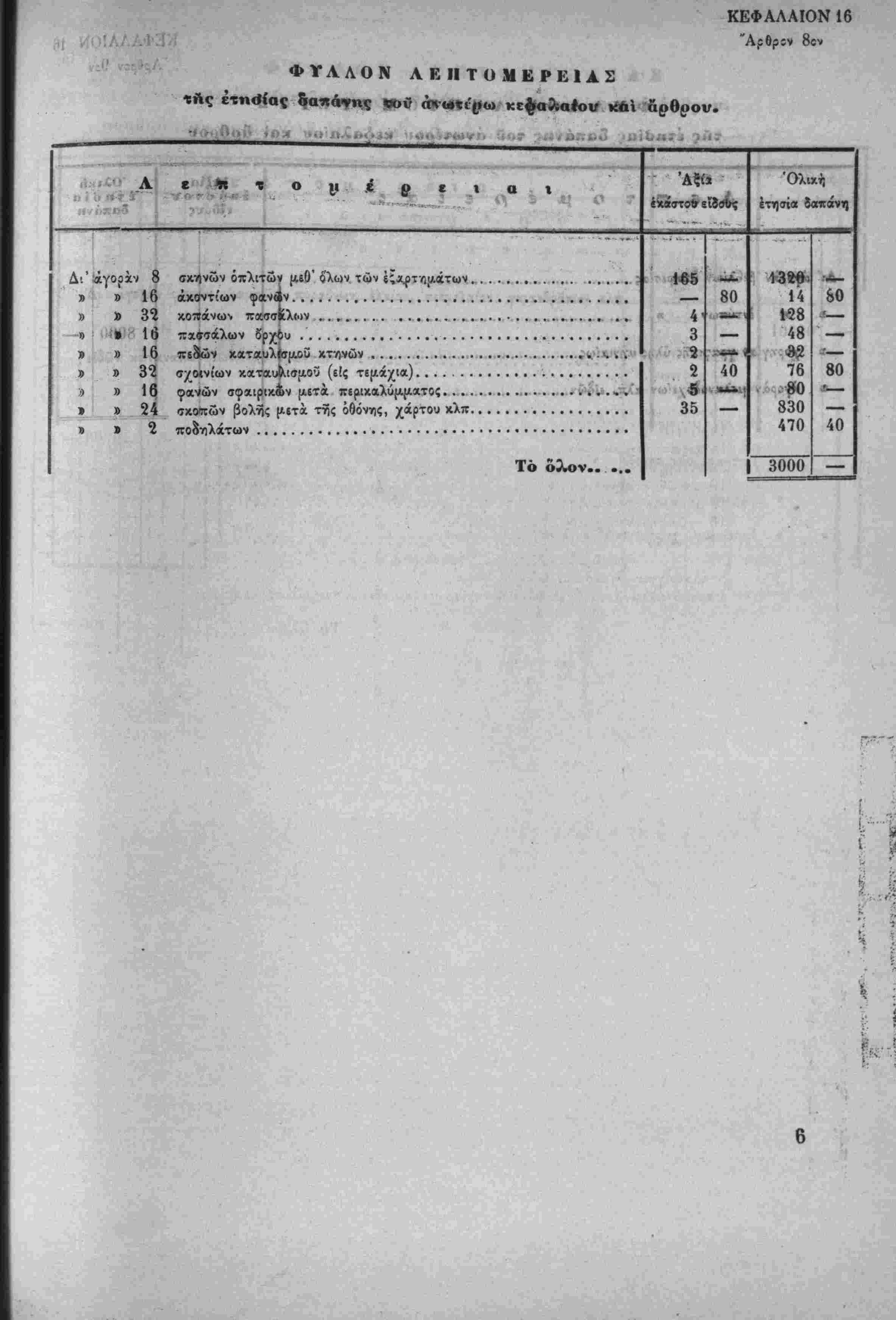 5) Είς τον προϋπολογισμόν ϊ:ά την επισκευήν τής άπ'ο Έξω-