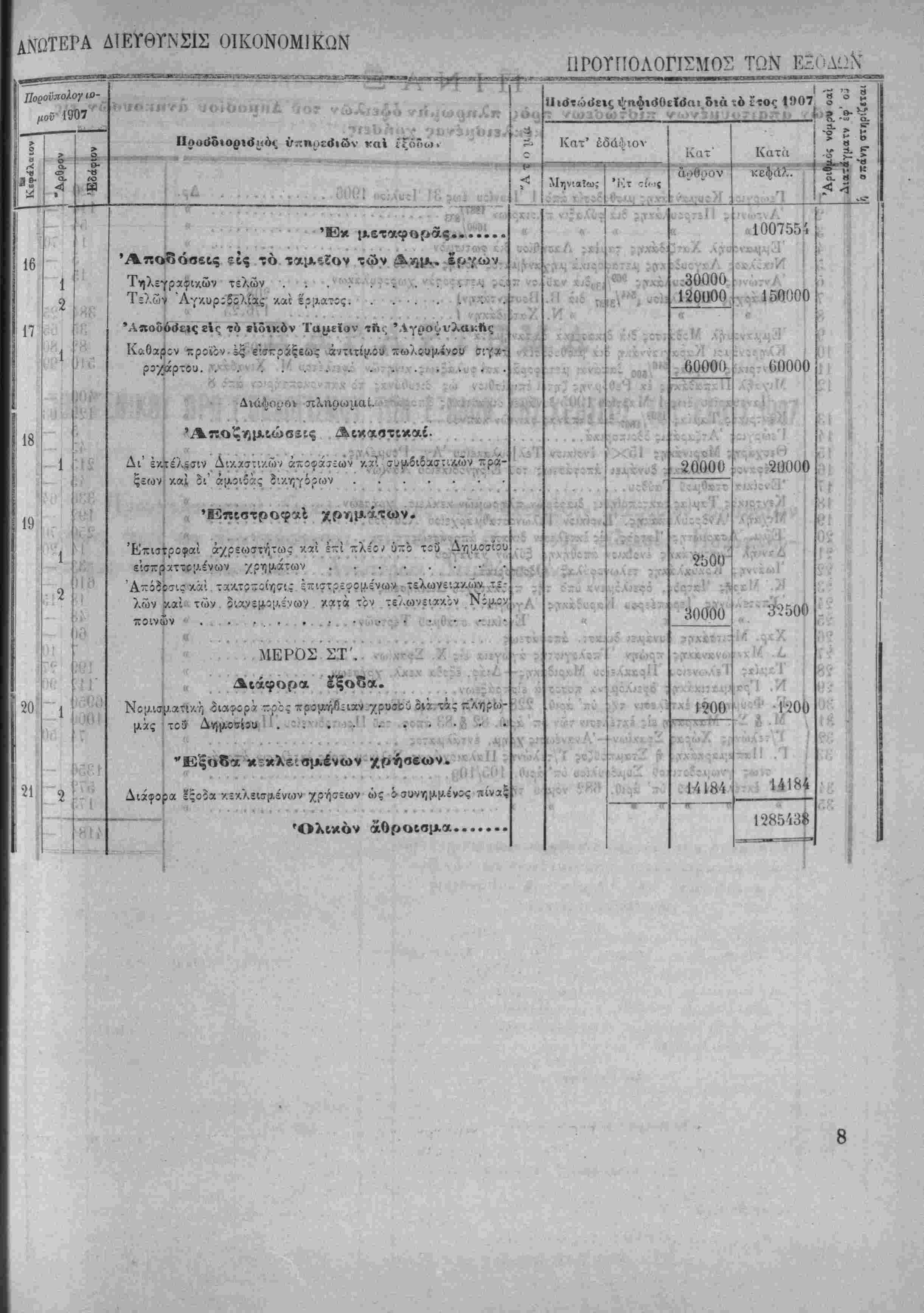 Ό τϊΐς Ανωτέρας Διευθύνσεως των Οίκονθ[Λΐκ.ώ«.ε»<4>Λ.ίΐ'^;'.................. * 1,285,438