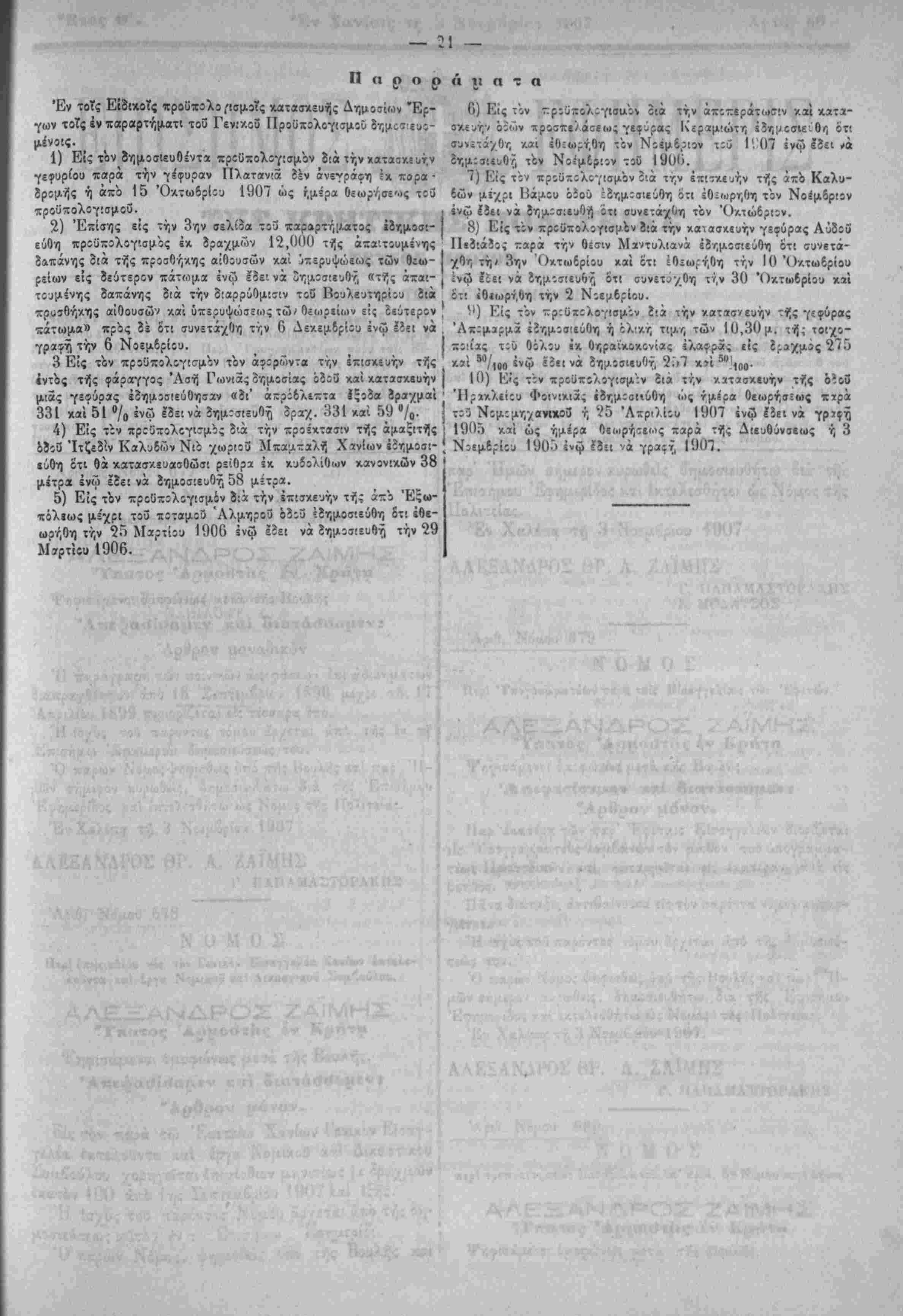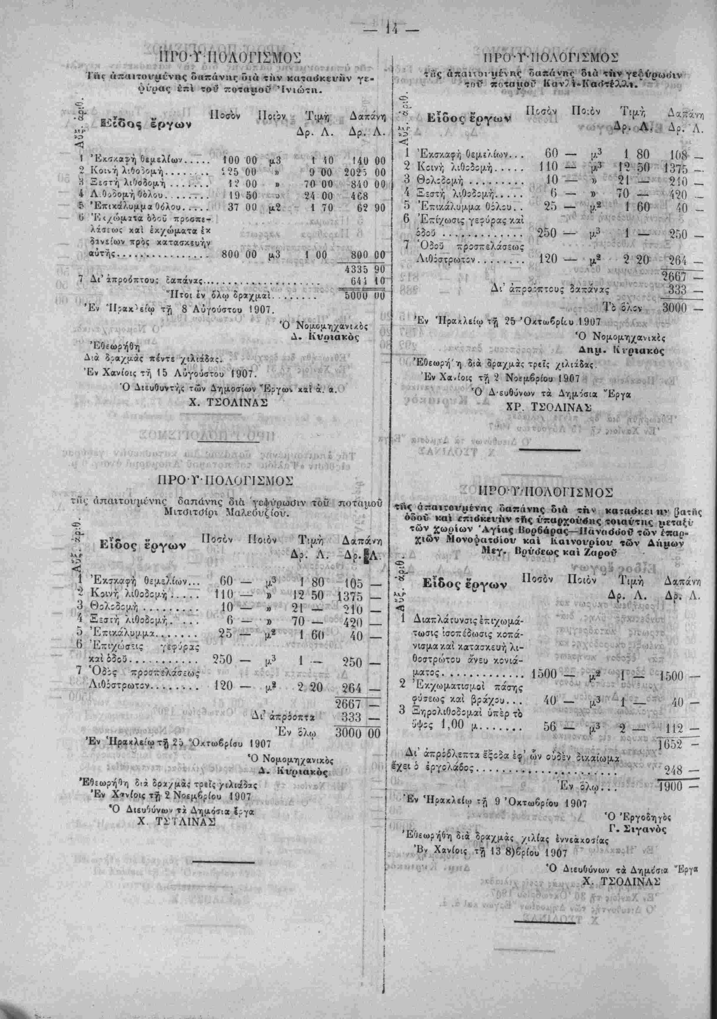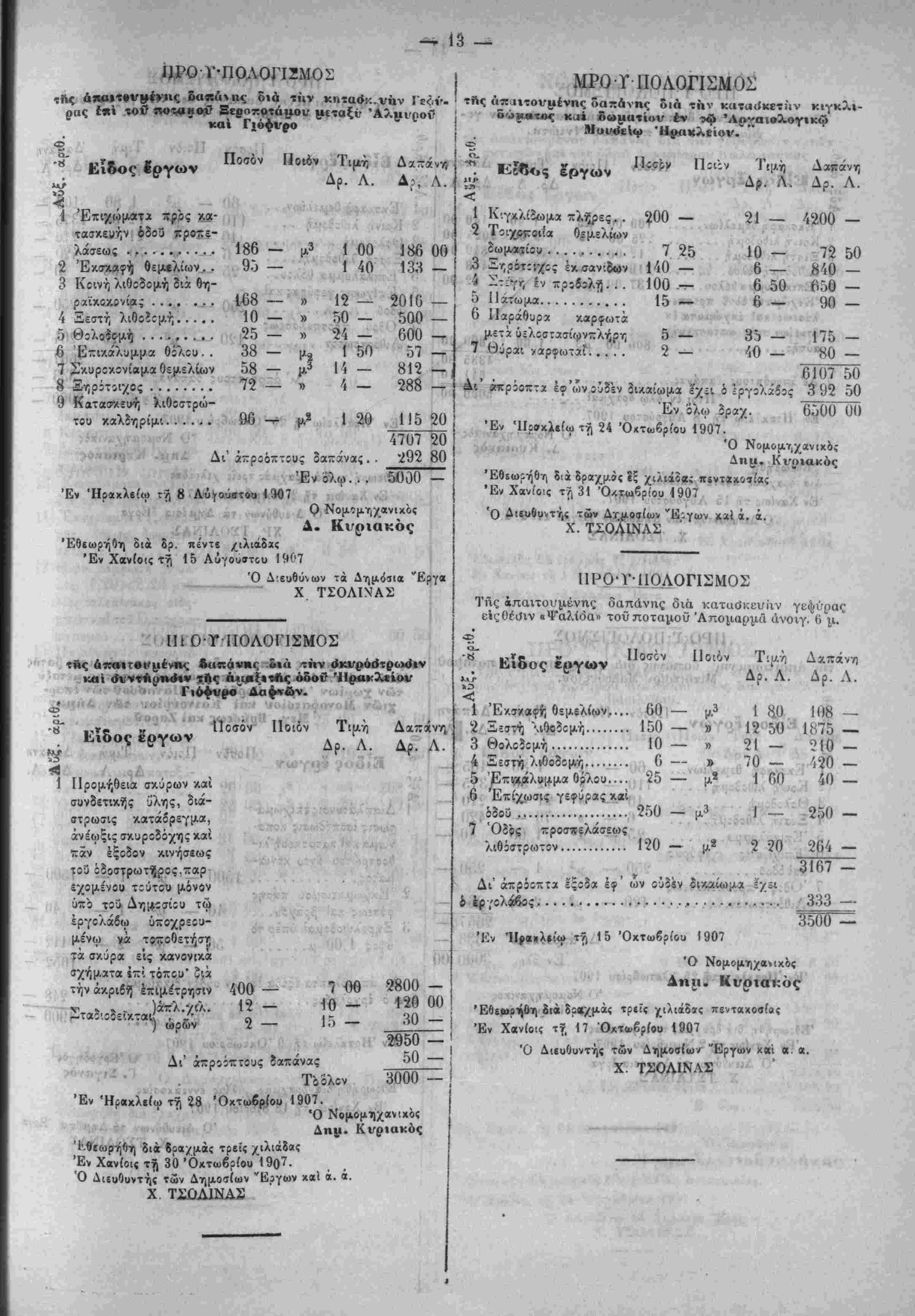 συ<;-ά·/0η /.αι ίϋ;(()?τ,Οη τϊν Νίέμδ,^ιον τ:ΰ 1','()" ϊνω Ιδει ι»» ΟΥ,μ^ίίυθΓ, τόν ΝοίμΙριςν τοϋ 1900. 7) Κΐς τ'ον προϋπολογισμόν ϊιά την έπι-ν.ευήν τής άπό Καλυ- 6ών μίχρι Βάμου όϊοϋ :δημ:σιεύ9η ότι έθίωρηθη τον Νοίμδρίον ίνφ έδει νά δημοσιευθή ότι συνετάχθη τον Όκτώδριον. 8} Είς τόν προϋπολογισμόν δία την κατασκευήν γεφΰρας Αύδίΰ Πεδιάδος -»ρά την θίσιν Μαντυλιανά εδημοσιεύθη ότι συνετά¬ χθη τή' 3ην Οκτωδρίου καί ότι ίθΐω^ήθη την 10 'Οκτωδρίου :νώ ίΐεΐ νά δημοσιευθή ότι συνετ^·/0η την 30 Όκτωβρίου καί 8τ; ΐθΐωρήθη την 2 Νοεμδρίου. *') Είς τόν ττριϋτολογισμον ίιά την κατβσνευήν τής γεφΰρας Άπςμϊρμα ΐ2ημ:σ:εύθη ή ίλικη τιμη των 10,30 μ. τή; τοιχο- -θ'ίας τ:ϋ Οόλ;υ ίκ Οηραικοκονίας ίλαφρβ; ιϊς ίί-ΐχμίς 275 κ^ί 50/ιβο *γώ ϊίίΐ νά ίημ.5σι«υθτ, 2.Ί7 κίί 5ϋ'ΐ()0· 10) Είς τ':ν προϋπολογισμ'ιν 8ιά την κατασκευήν τής ό?ο3 Ήρίκλ*ί:υ Φοινίκιας ΐίημ:αιιύθη ώς τμίρα Οε(·>ρήσ:ως Χϊρά