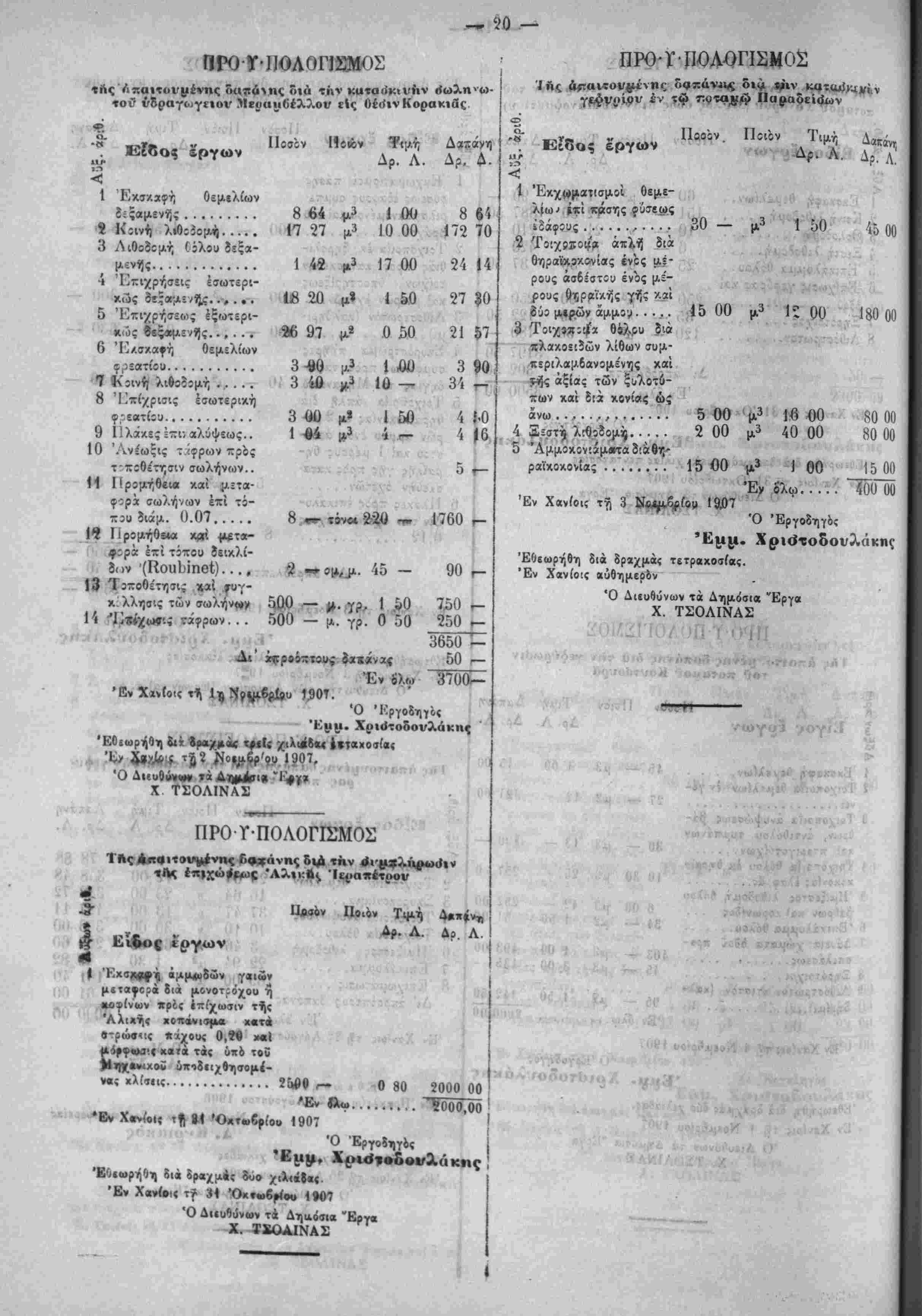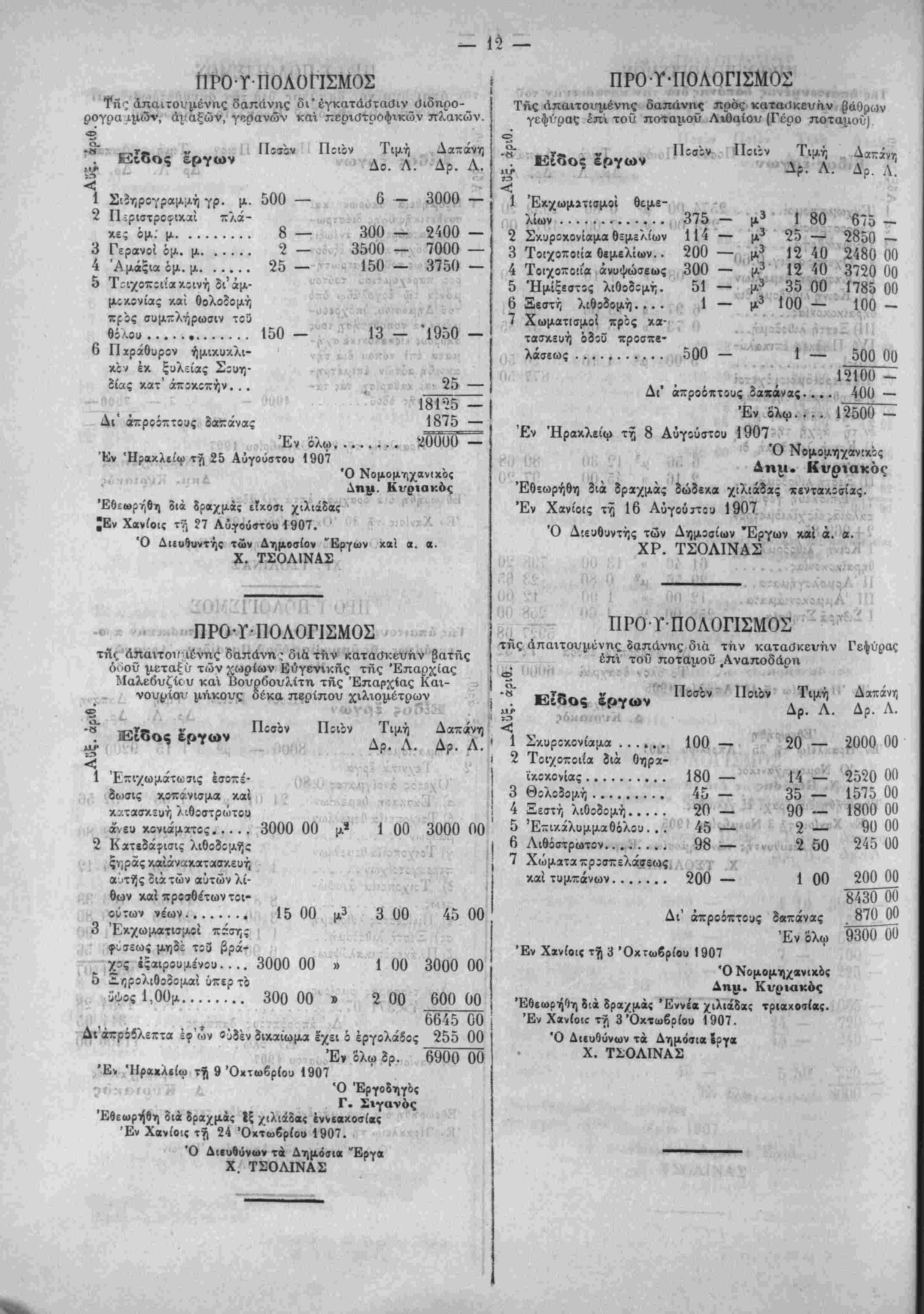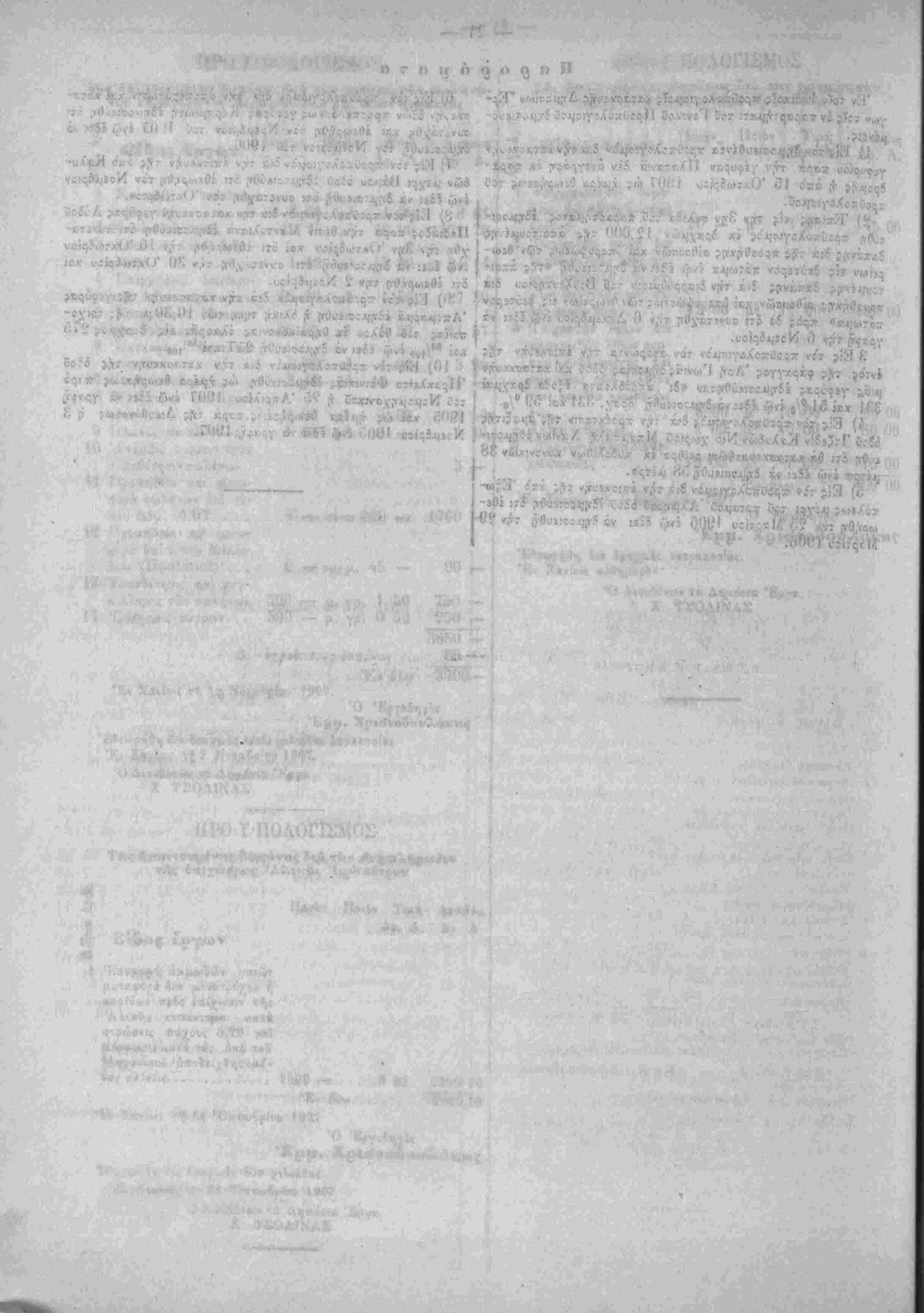 συ<;-ά·/0η /.αι ίϋ;(()?τ,Οη τϊν Νίέμδ,^ιον τ:ΰ 1','()" ϊνω Ιδει ι»» ΟΥ,μ^ίίυθΓ, τόν ΝοίμΙριςν τοϋ 1900. 7) Κΐς τ'ον προϋπολογισμόν ϊιά την έπι-ν.ευήν τής άπό Καλυ- 6ών μίχρι Βάμου όϊοϋ :δημ:σιεύ9η ότι έθίωρηθη τον Νοίμδρίον ίνφ έδει νά δημοσιευθή ότι συνετάχθη τον Όκτώδριον. 8} Είς τόν προϋπολογισμόν δία την κατασκευήν γεφΰρας Αύδίΰ Πεδιάδος -»ρά την θίσιν Μαντυλιανά εδημοσιεύθη ότι συνετά¬ χθη τή' 3ην Οκτωδρίου καί ότι ίθΐω^ήθη την 10 'Οκτωδρίου :νώ ίΐεΐ νά δημοσιευθή ότι συνετ^·/0η την 30 Όκτωβρίου καί 8τ; ΐθΐωρήθη την 2 Νοεμδρίου. *') Είς τόν ττριϋτολογισμον ίιά την κατβσνευήν τής γεφΰρας Άπςμϊρμα ΐ2ημ:σ:εύθη ή ίλικη τιμη των 10,30 μ. τή; τοιχο- -θ'ίας τ:ϋ Οόλ;υ ίκ Οηραικοκονίας ίλαφρβ; ιϊς ίί-ΐχμίς 275 κ^ί 50/ιβο *γώ ϊίίΐ νά ίημ.5σι«υθτ, 2.Ί7 κίί 5ϋ'ΐ()0· 10) Είς τ':ν προϋπολογισμ'ιν 8ιά την κατασκευήν τής ό?ο3 Ήρίκλ*ί:υ Φοινίκιας ΐίημ:αιιύθη ώς τμίρα Οε(·>ρήσ:ως Χϊρά