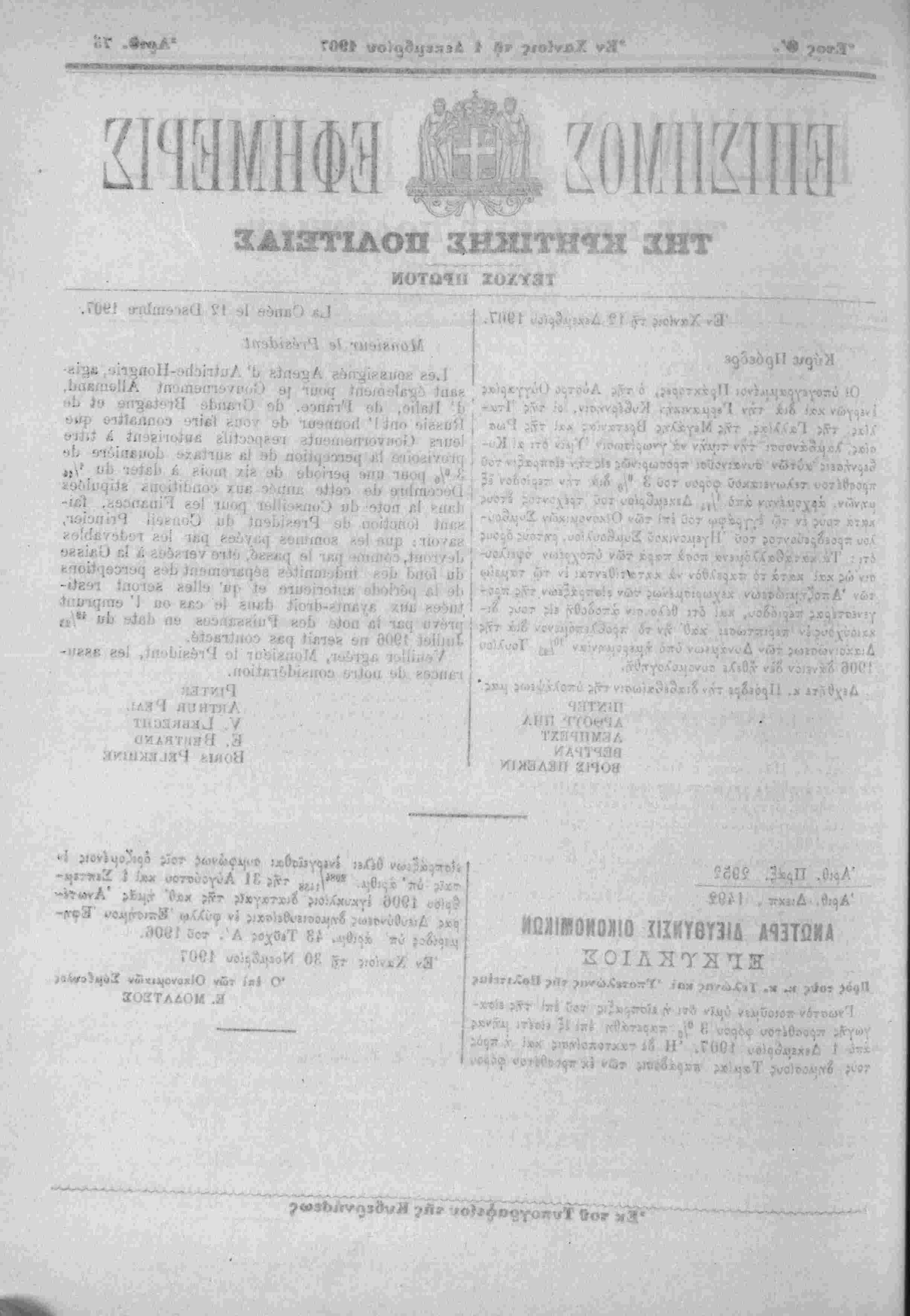 Έν Χανίοις τί) 12 Δεκεμβριού 1907.