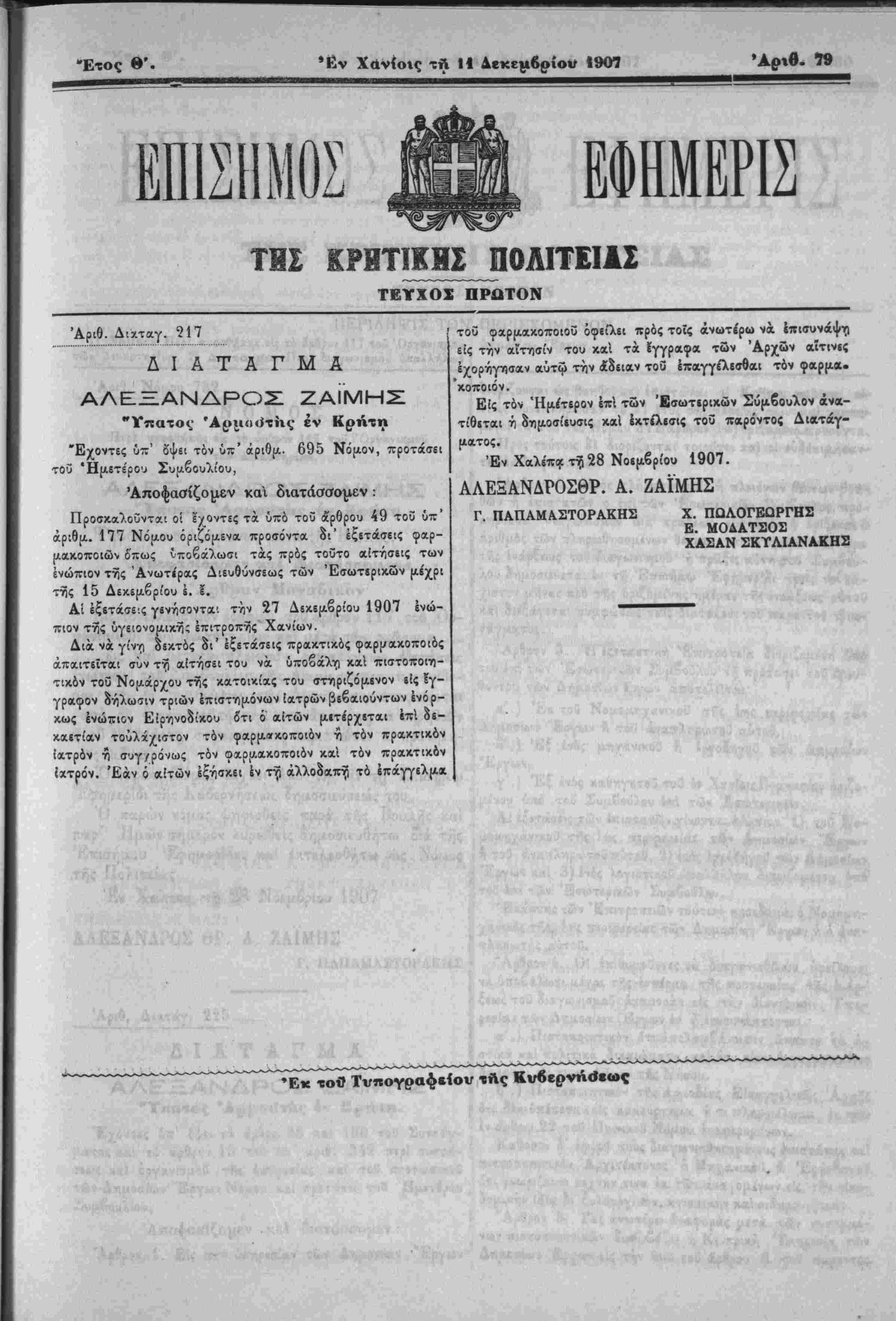 πιον της ύγειονομικίϊς έπιτροπης Χανίων.