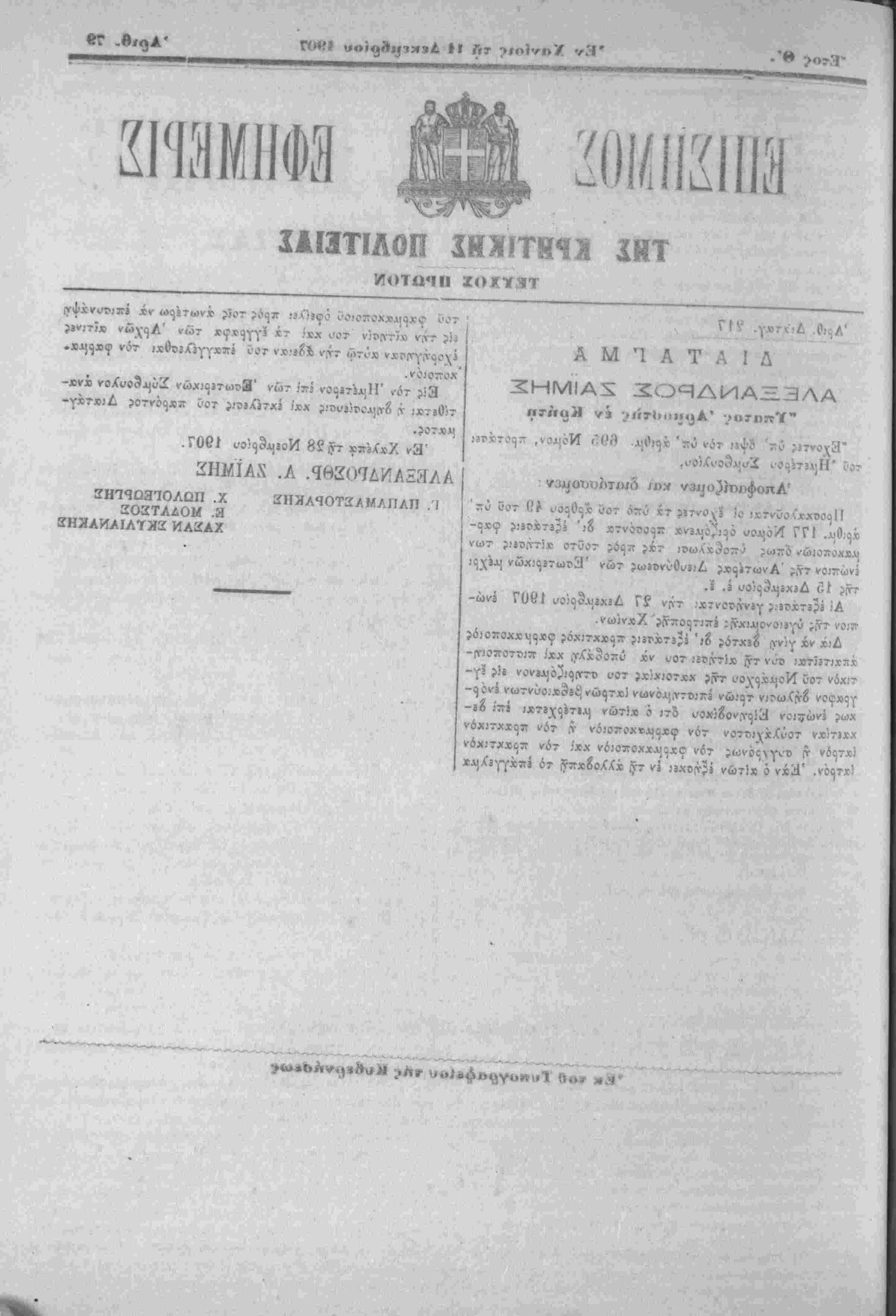 "Αποφασίζομεν καΐ διατάσσομεν :