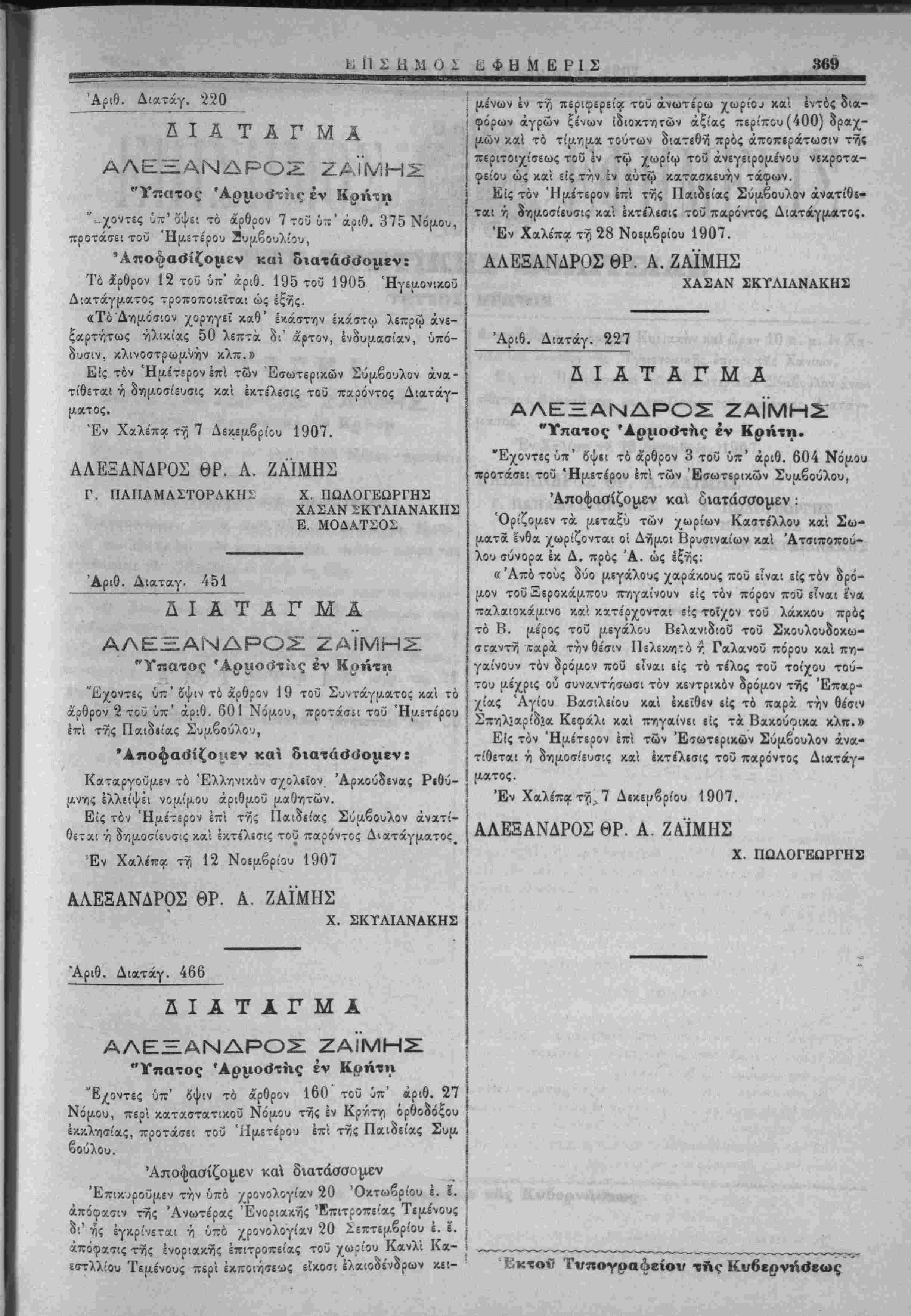 Έν Χαλε'πα τη 28 Νοεμβριού 1907.
