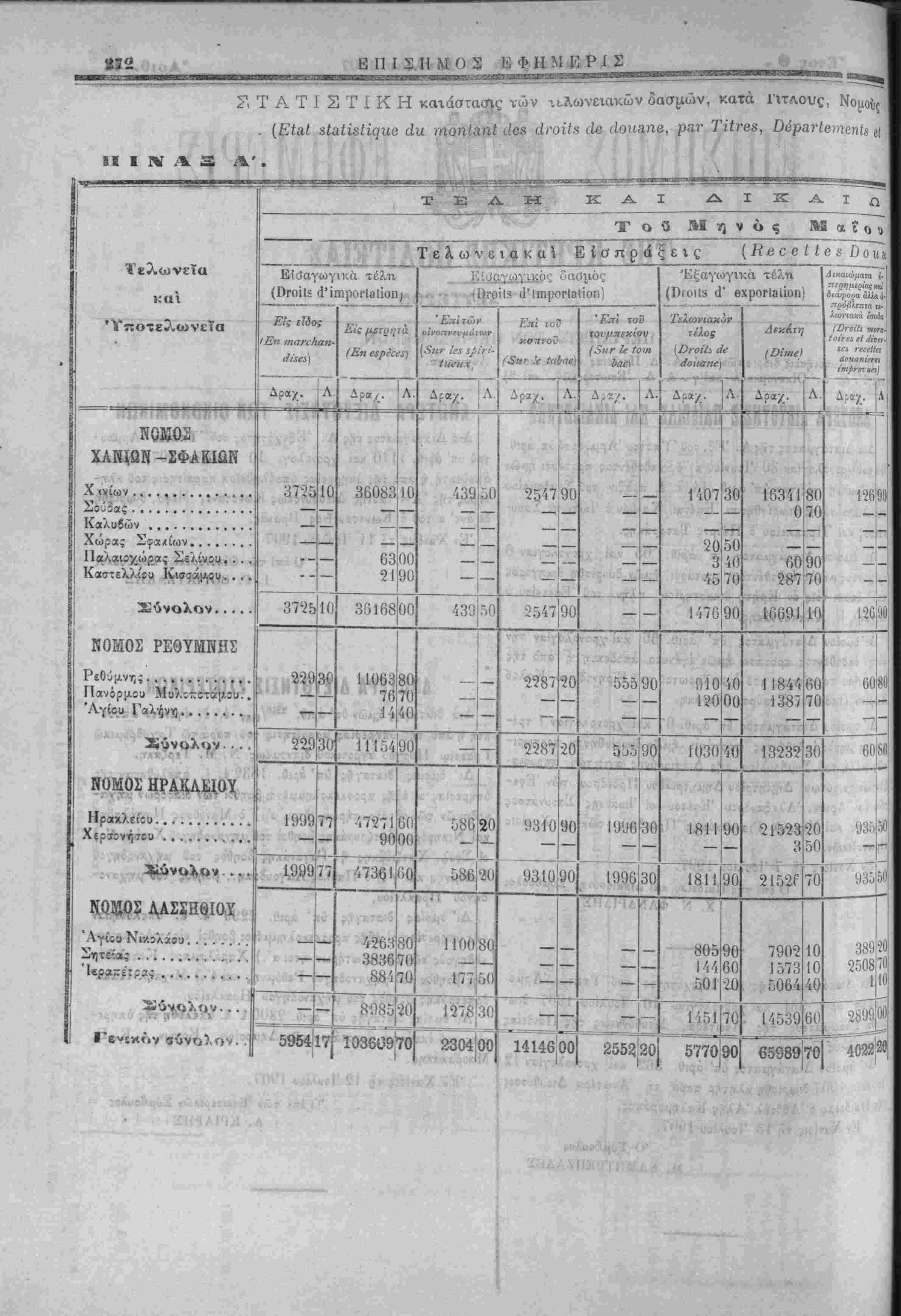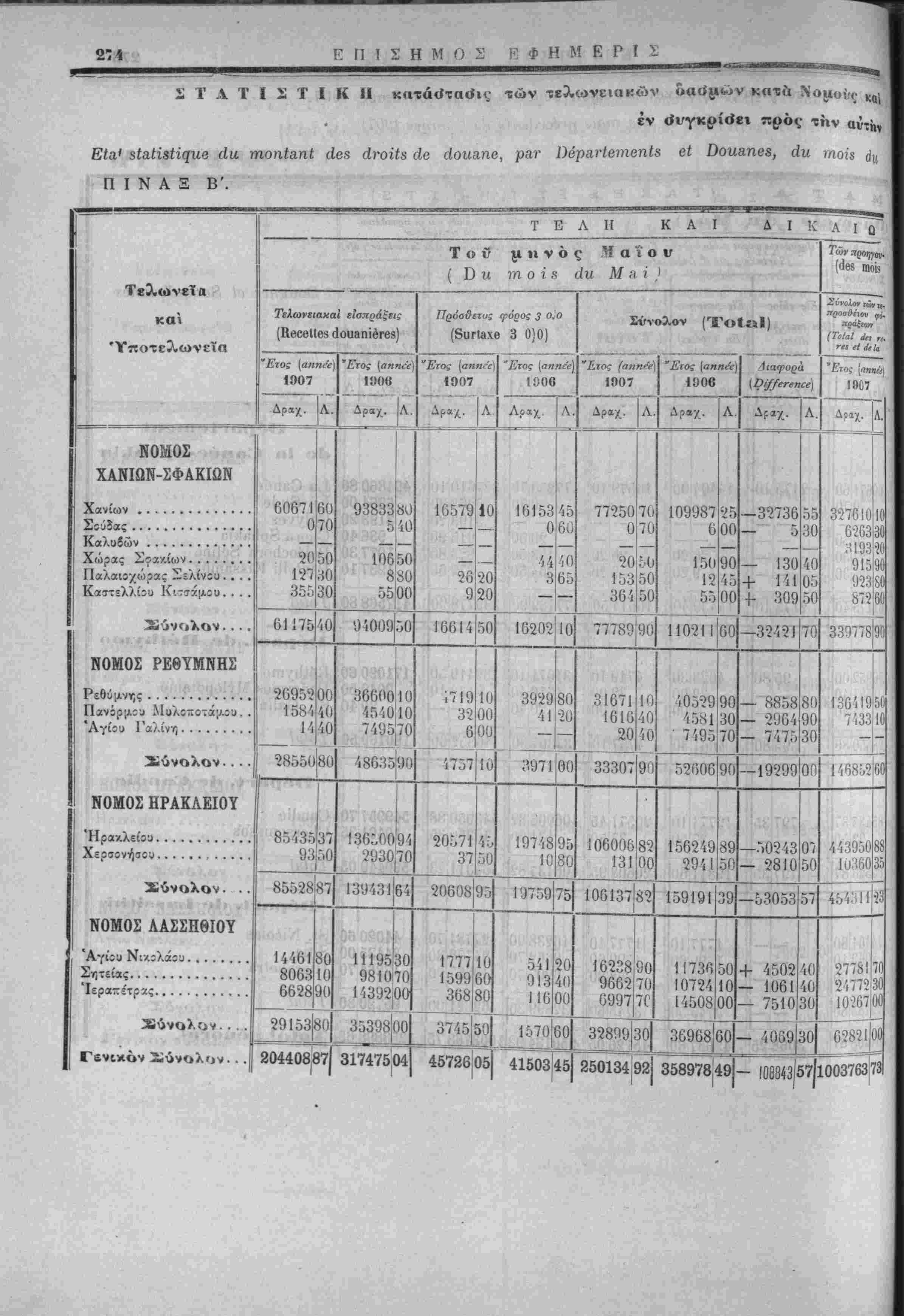 Σ Τ Λ ΤΙ Σ ΤΙ Κ Η κατάστασις ιω*· ι ιΛωνειακών δασμών, κατά ΓιτΛους, Νομούς